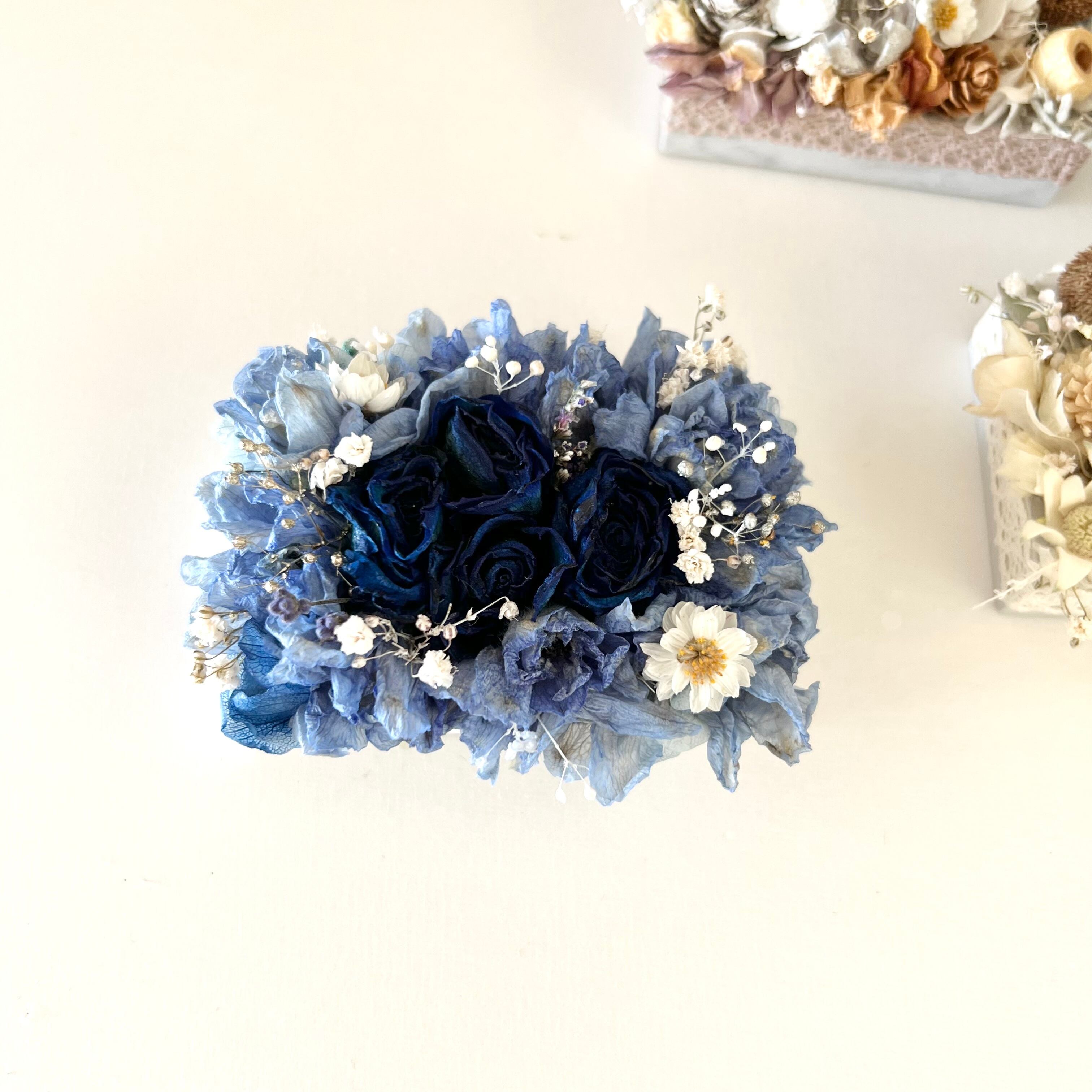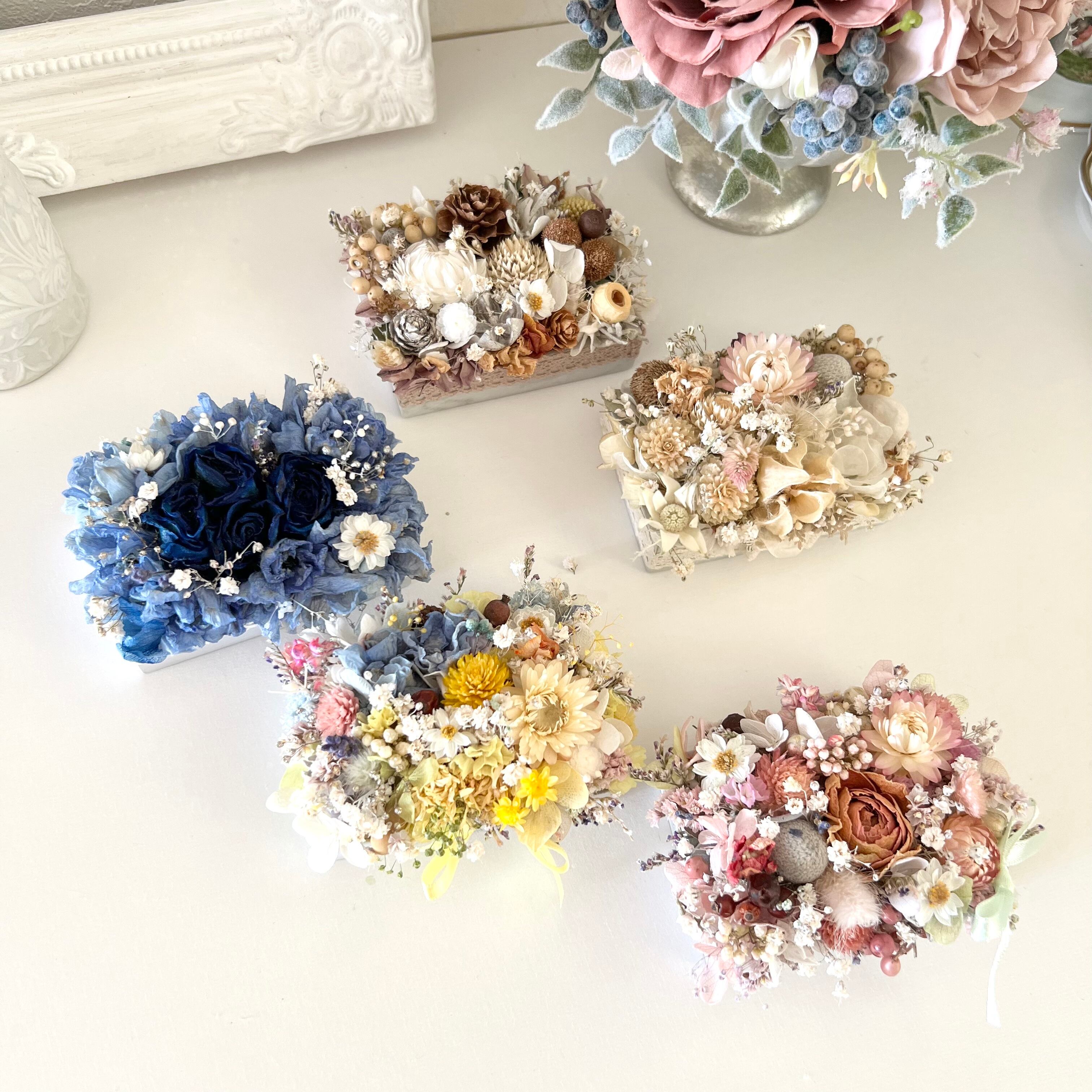 ブルー ミニアレンジメント ドライフラワー 誕アロマストーン 生日プレゼント 引っ越し祝い 記念日 ギフト