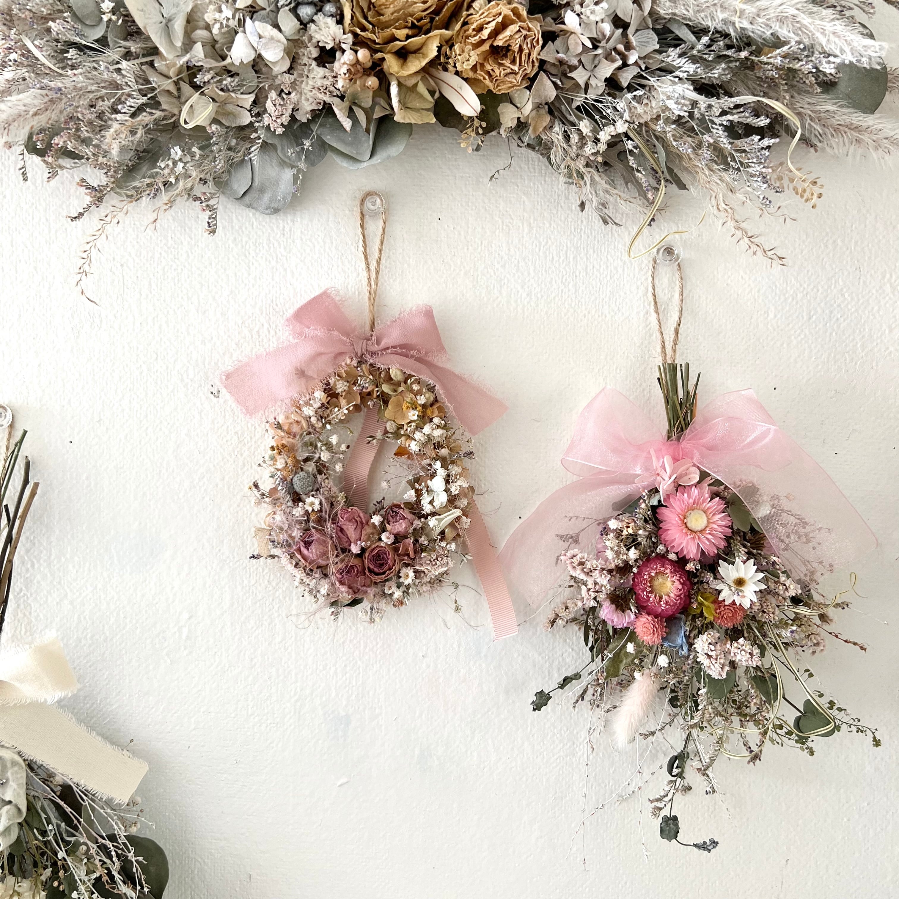 こちらのミニリースシリーズは、その時々あるお花を合わせてお作りしているリースですので再販の予定 オーダーはお受けできません。ご了承ください。