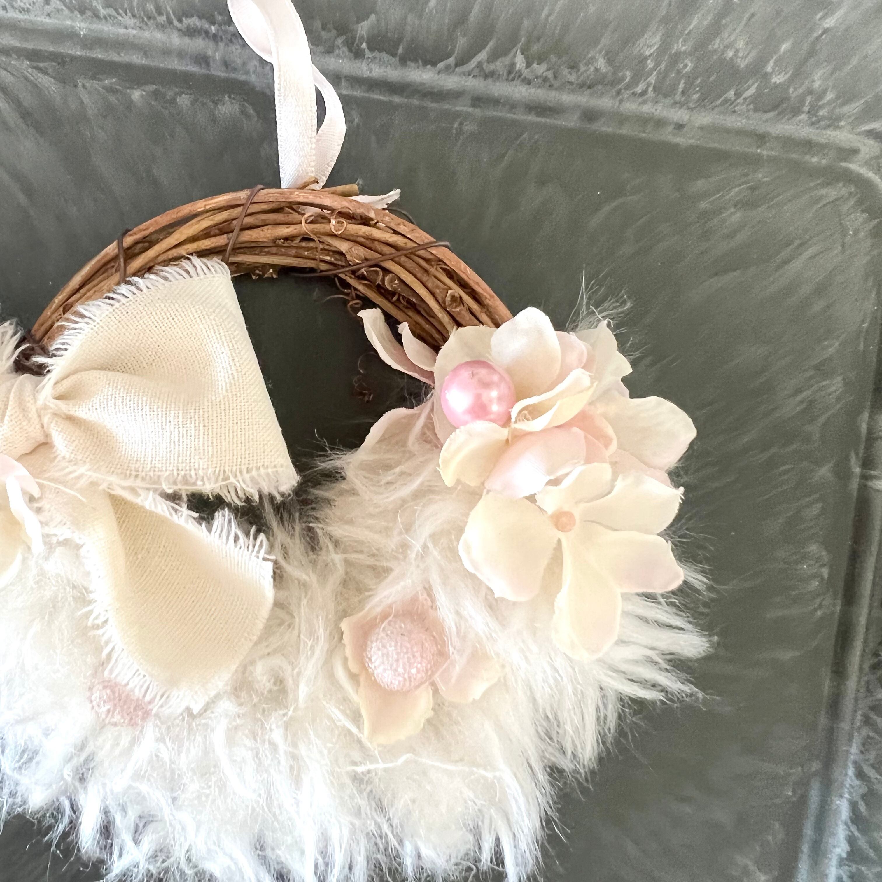 ふわふわナチュラルホワイトとピンクのミニリースです。