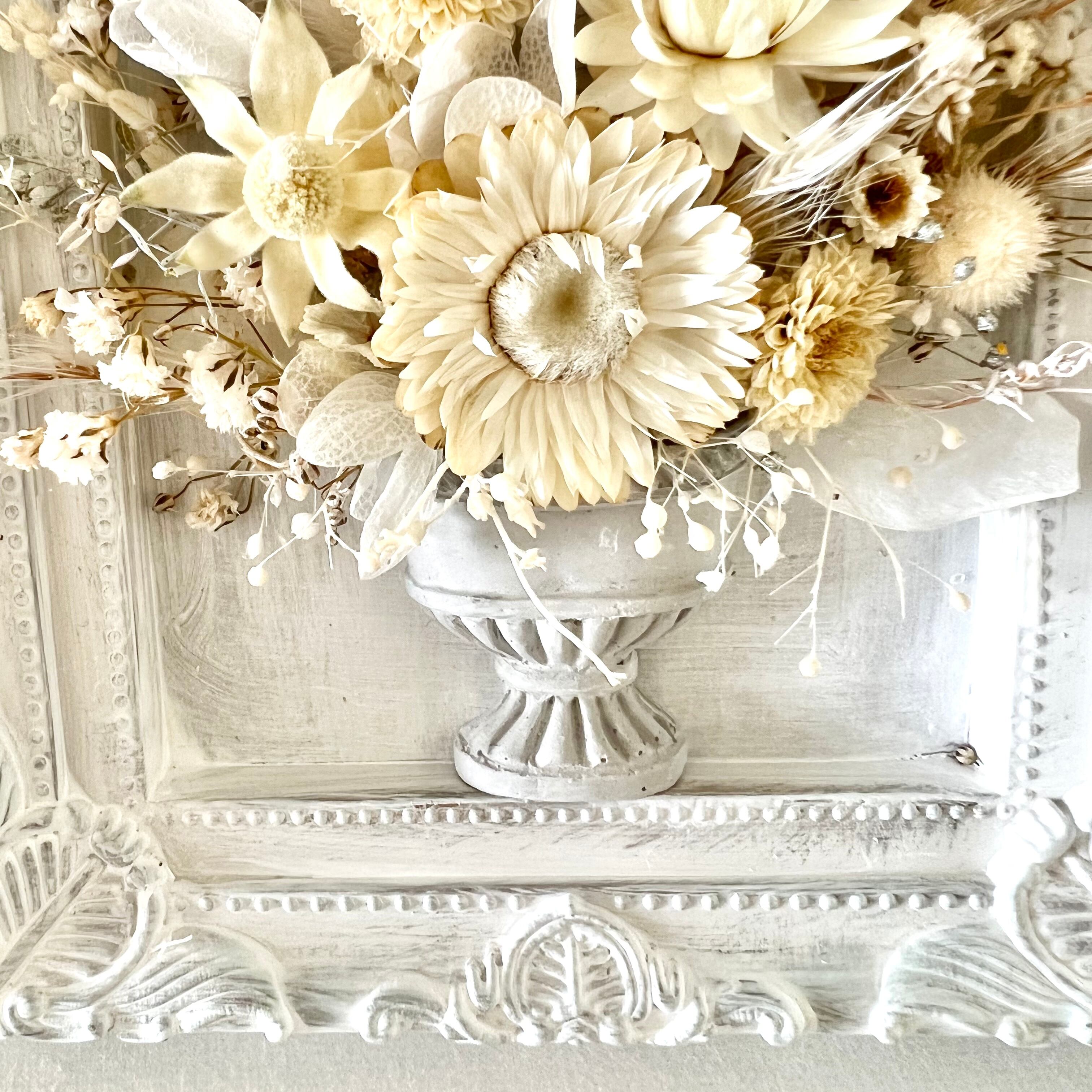 ホワイト アンティーク調フレームに小さなお花をアレンジしました。