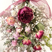 ・花材 ユーカリ ローズ ヘリクリサム 千日紅 ブルニア コキア 紫陽花 ナズナ スターチス リーフ かすみ草 ブルーファンタジア ダスティミラー リボン等