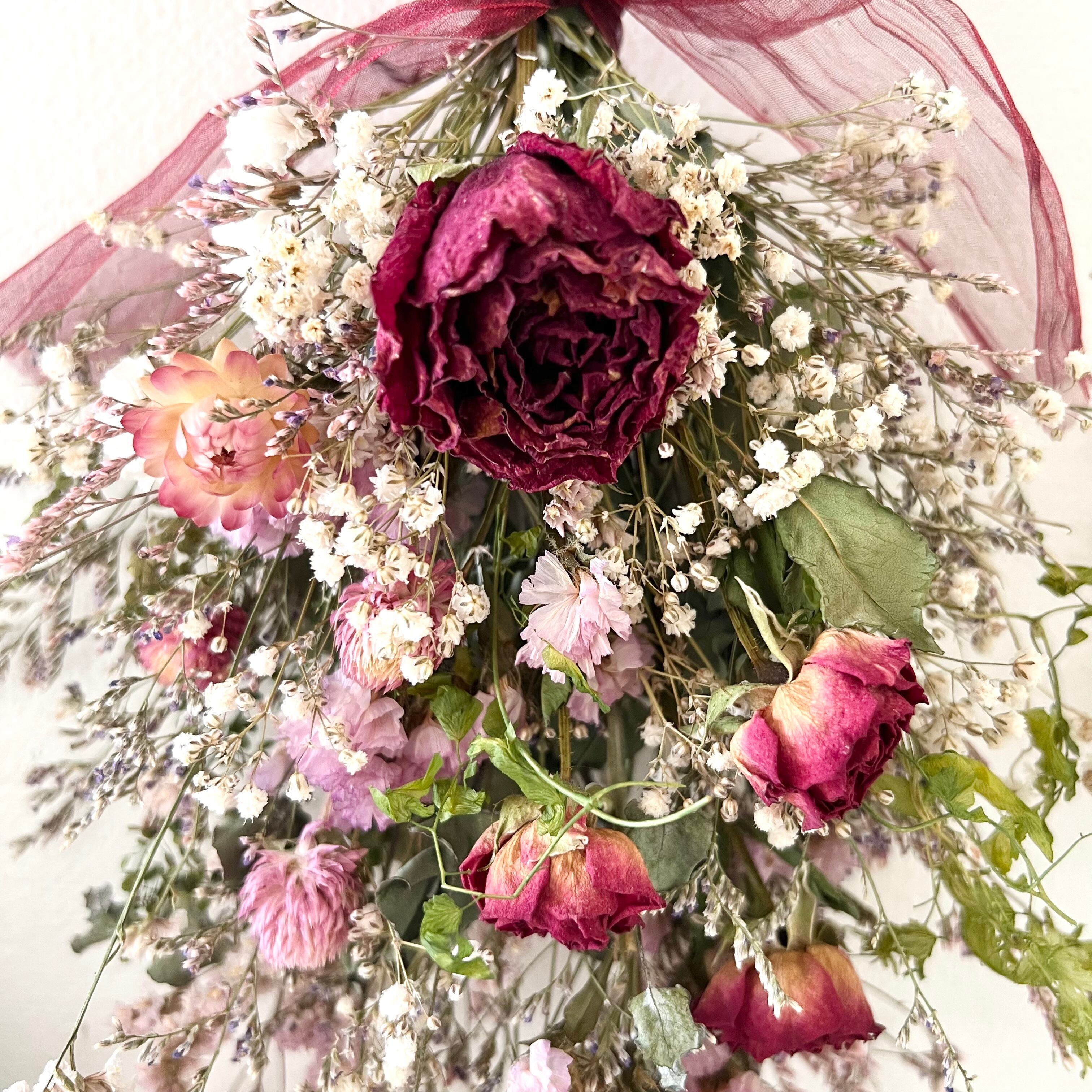 ピンク ローズと小花のスワッグ ドライフラワー 誕生日プレゼント 引っ越し祝い 記念日. ギフト