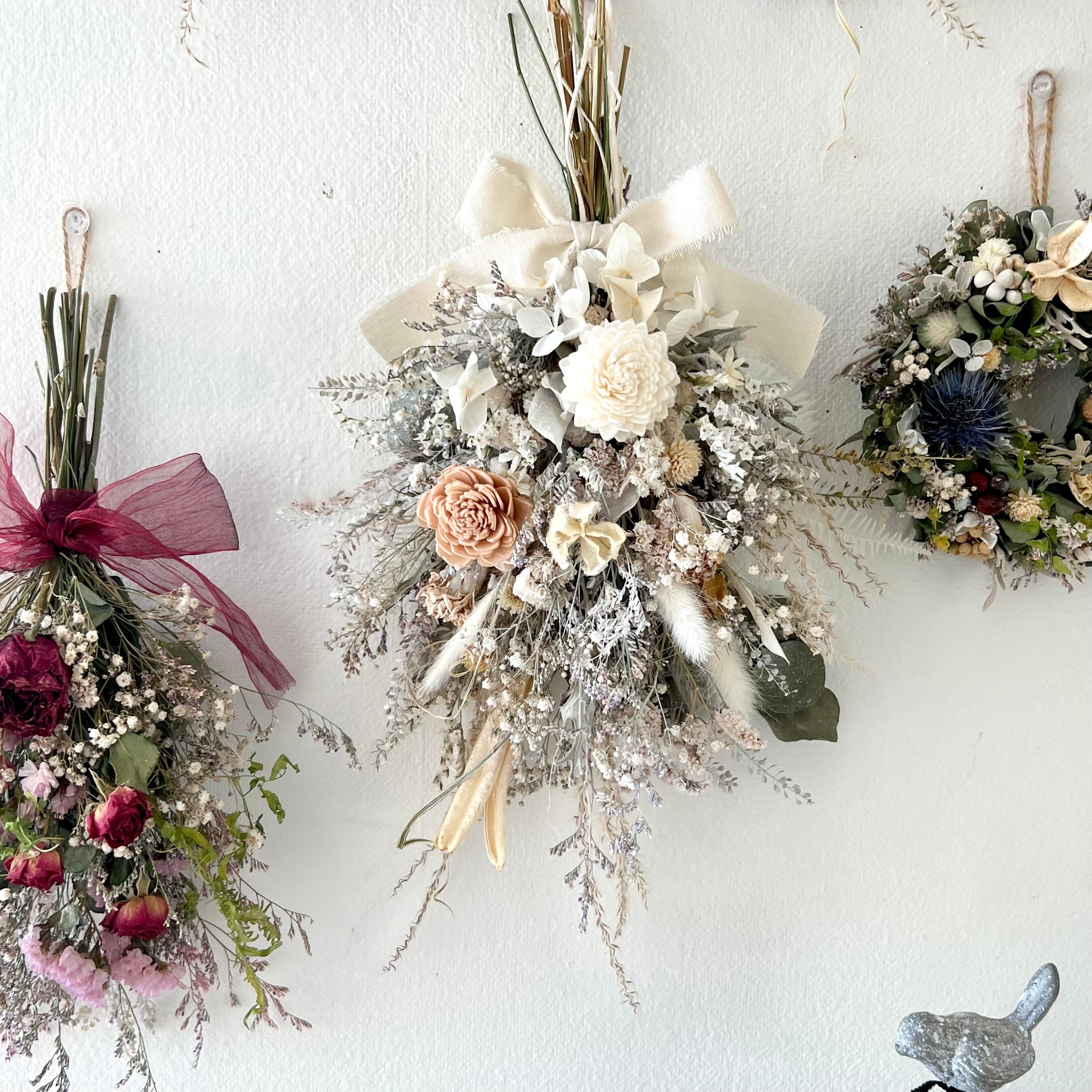ナチュラルカラー ソラローズと小花のスワッグ ドライフラワー 誕生日プレゼント 引っ越し祝い 記念日. ギフト