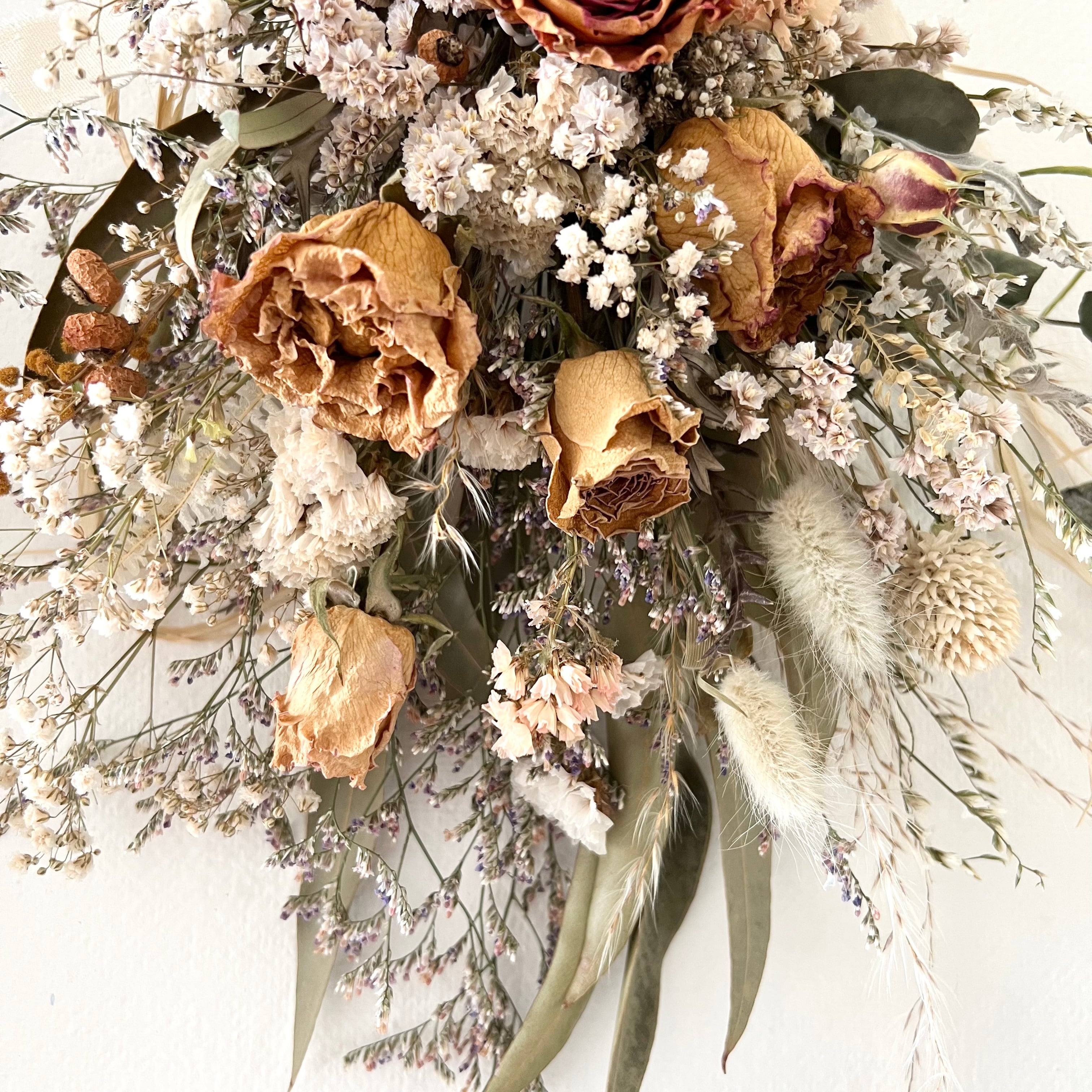 アンティークカラー ローズと小花のスワッグ ドライフラワー 誕生日プレゼント 引っ越し祝い 記念日. ギフト