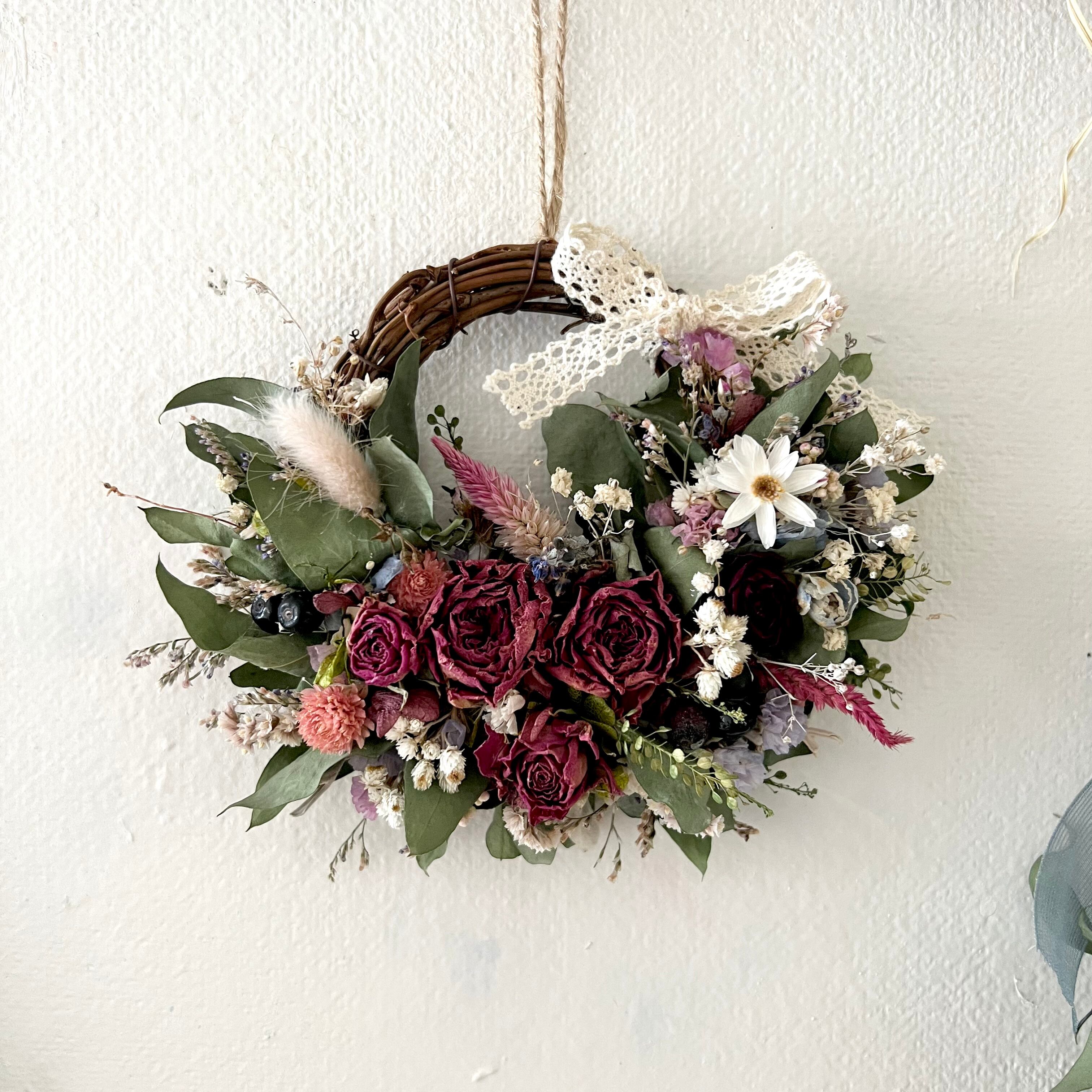 ローズと小花のミニリース ドライフラワー 誕生日プレゼント 引っ越し祝い 記念日 ギフト