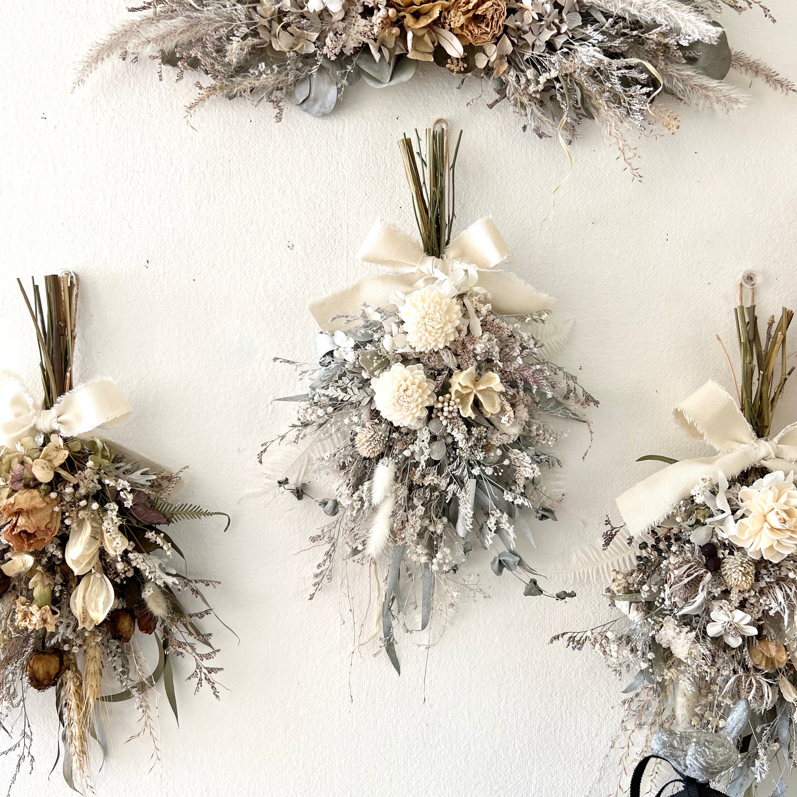 ナチュラルホワイト ソラダリアと小花のスワッグ ドライフラワー 誕生日プレゼント 引っ越し祝い 記念日. ギフト