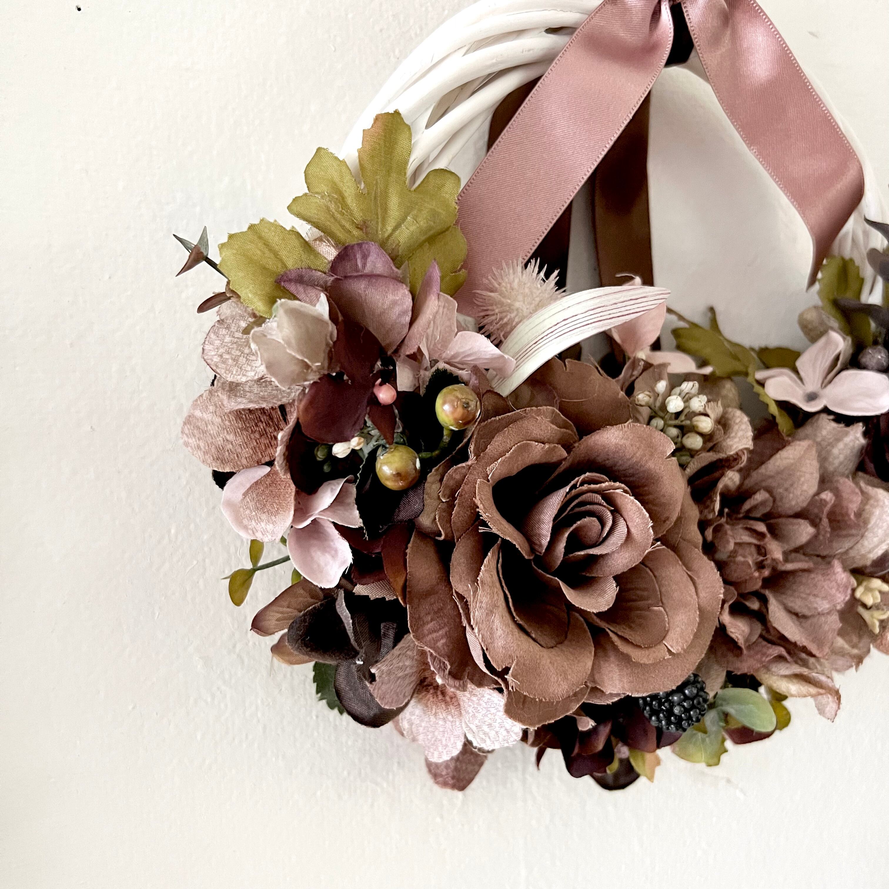 オータムカラー ローズと小花のリース アーティフィシャルフラワー 誕生日プレゼント 引っ越し祝い 記念日 ギフト