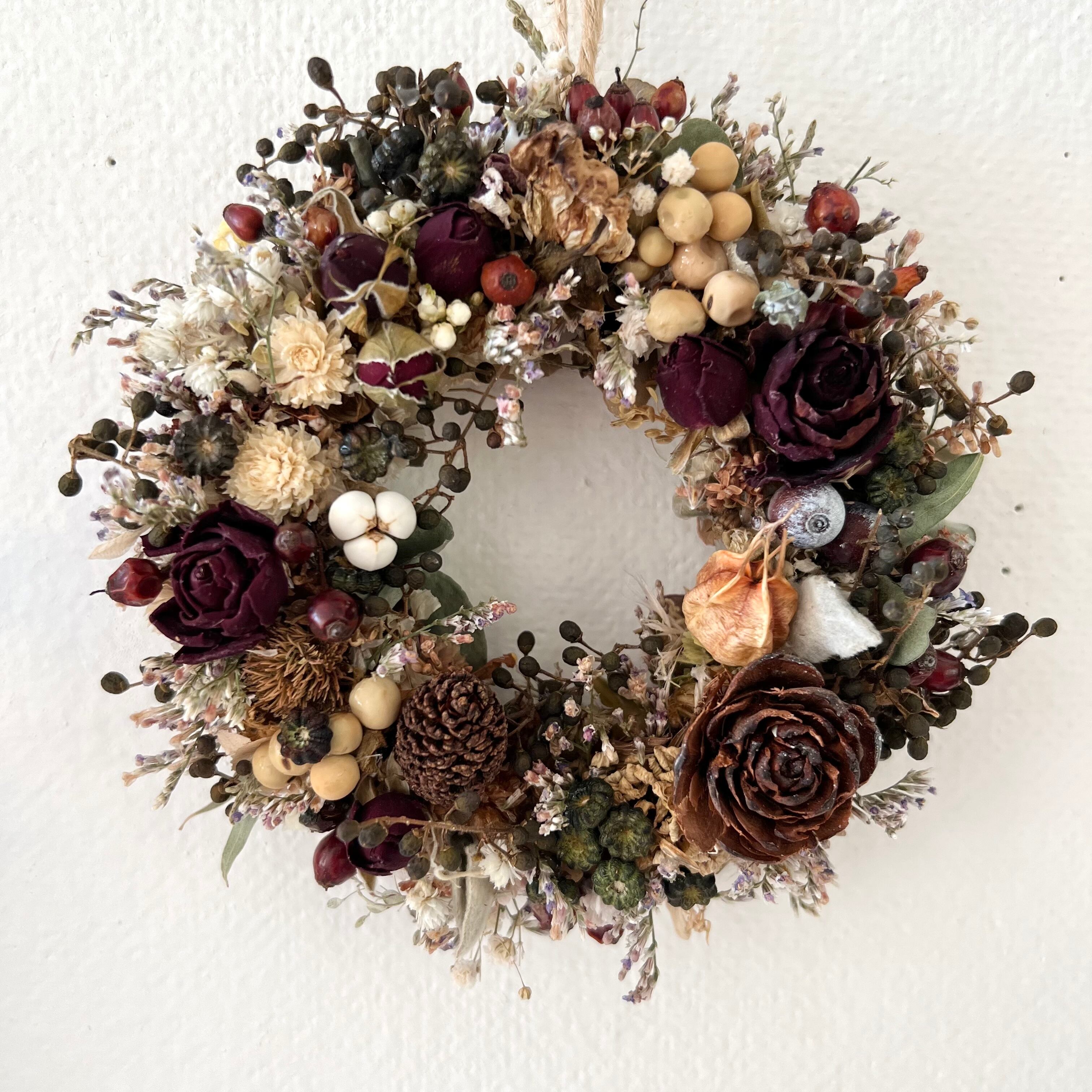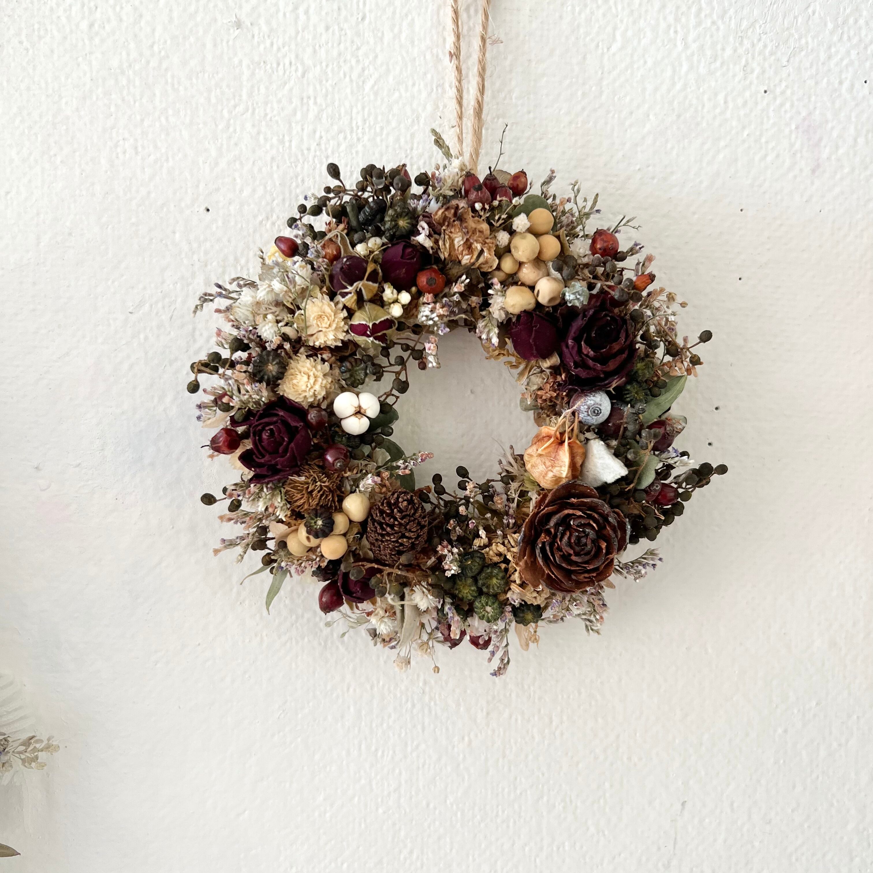ローズと木の実のミニリース ドライフラワー 誕生日プレゼント 引っ越し祝い 記念日 ギフト