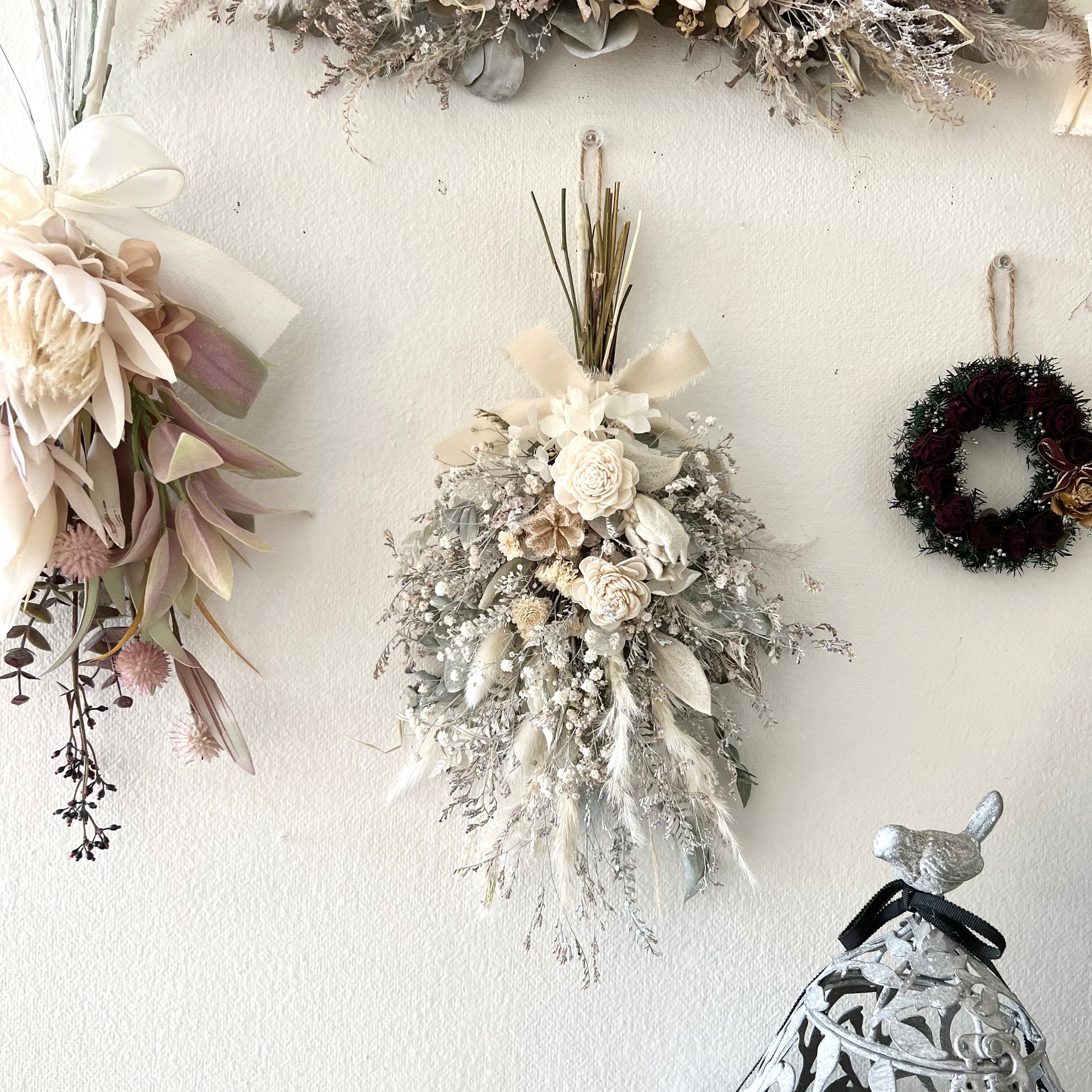 ソラローズと小花のスワッグ ナチュラルホワイト ドライフラワー    誕生日プレゼント 引っ越し祝い 記念日. ギフト