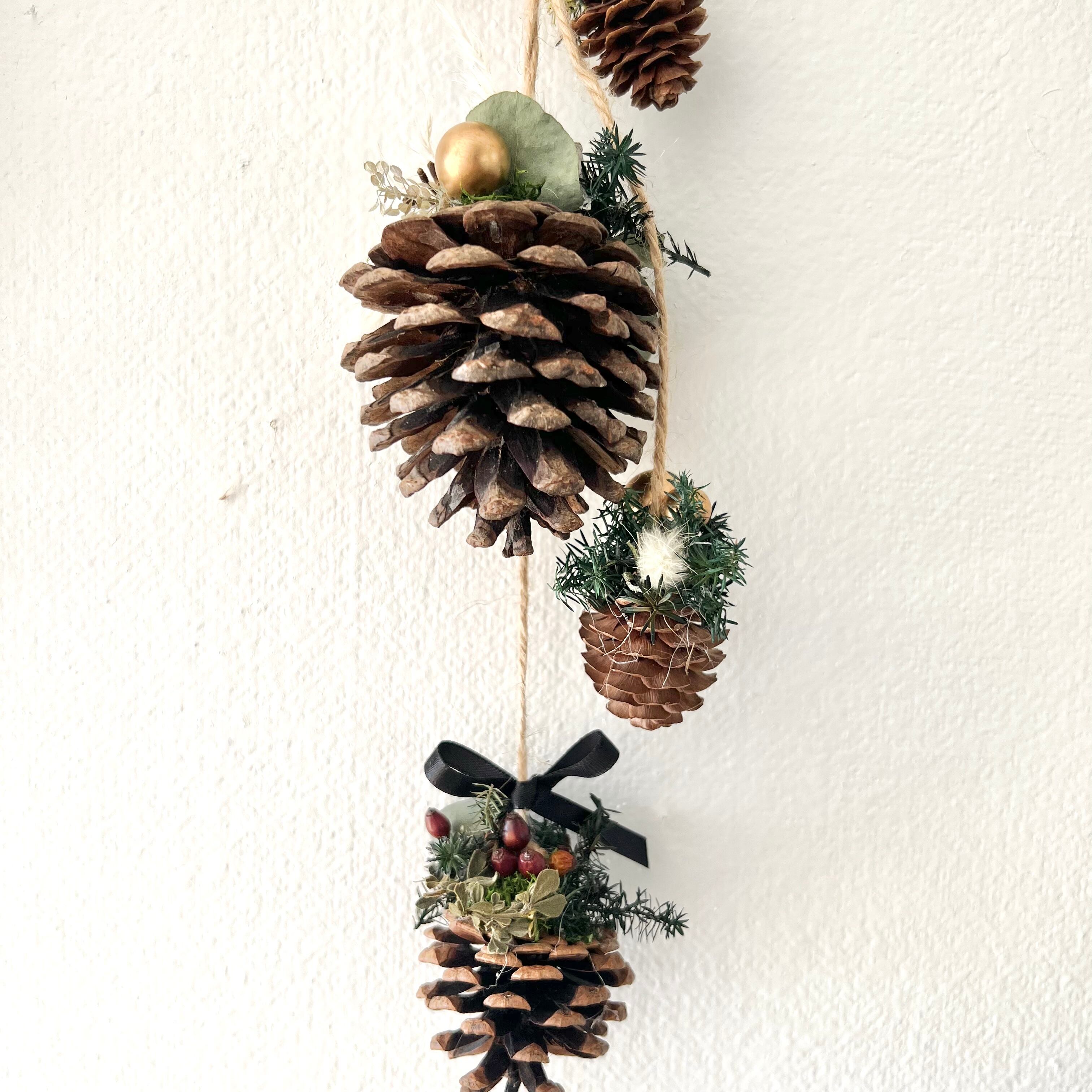 麻紐で繋いでいますので、配送時松ぼっくりの場所が変わってしまいます。