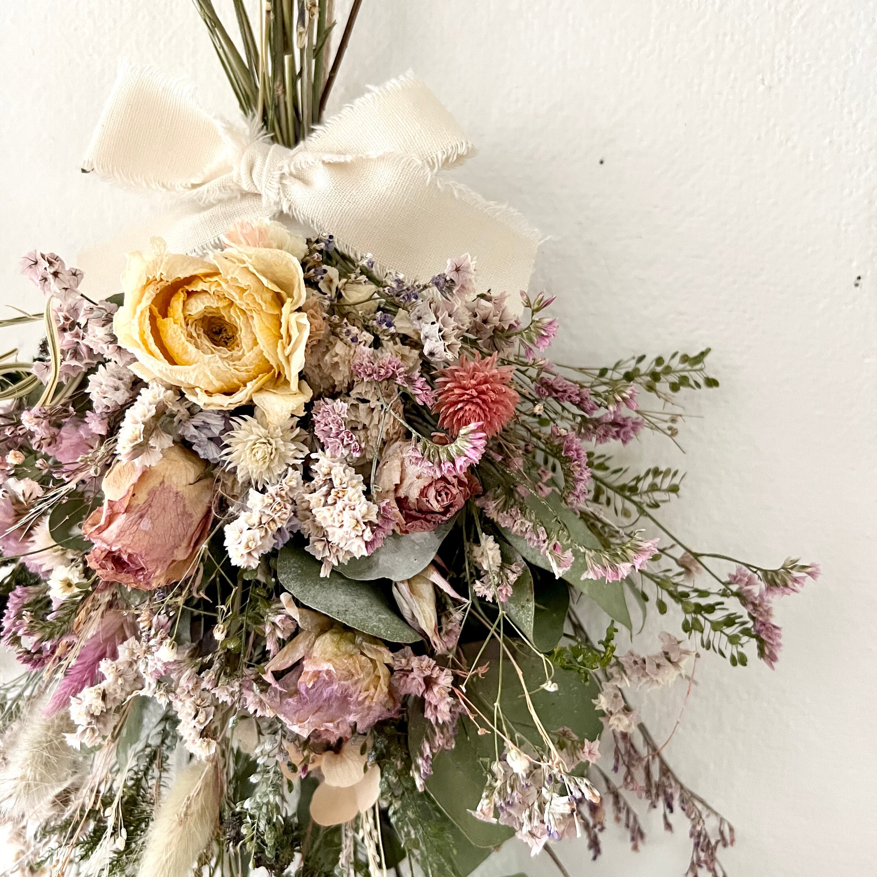 ラナンキュラス ローズと小花のスワッグ ドライフラワー 誕生日プレゼント 引っ越し祝い 記念日. ギフト