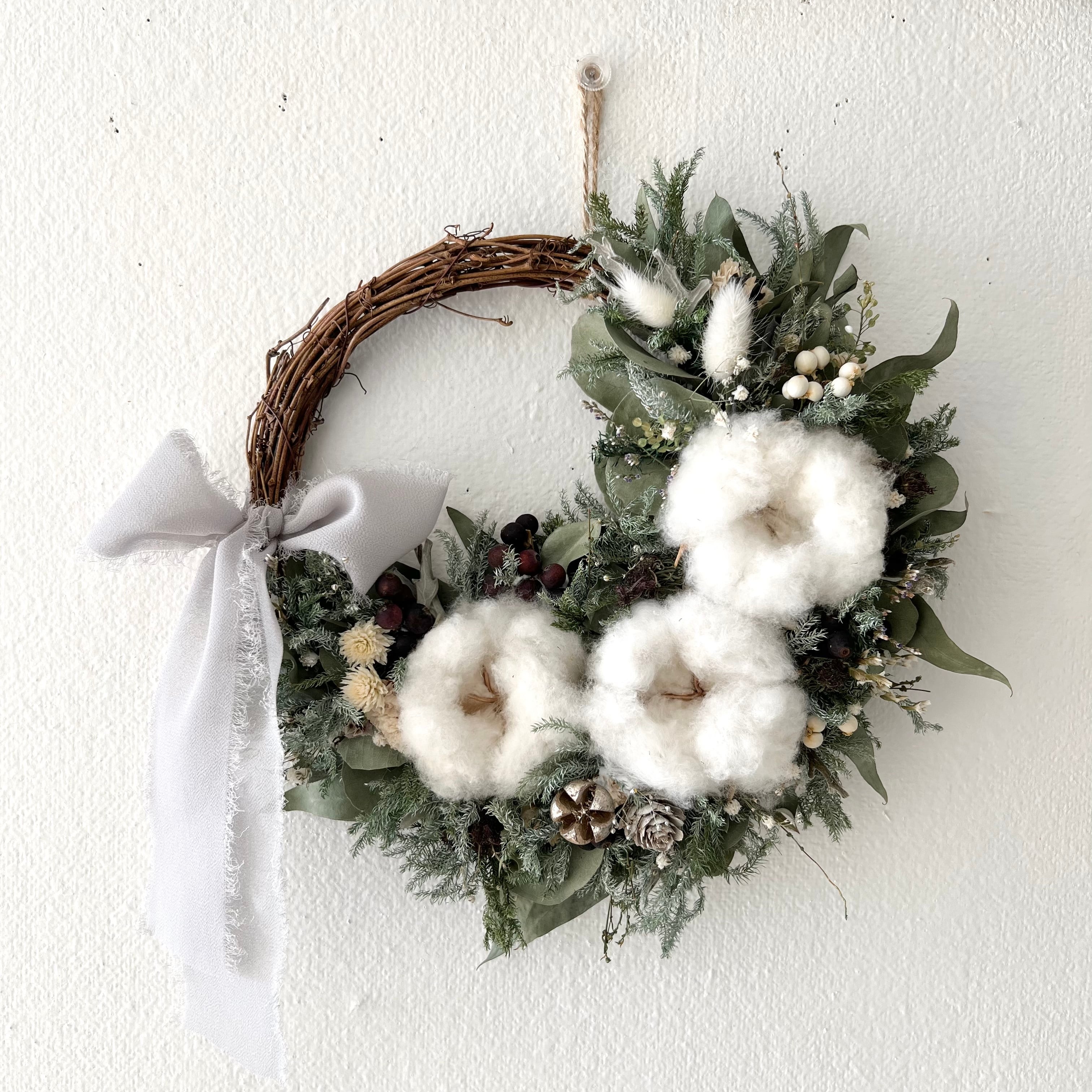 ユーカリ コットンフラワーのクリスマスリース ドライフラワー 誕生日プレゼント  引っ越し祝い 記念日 ギフト