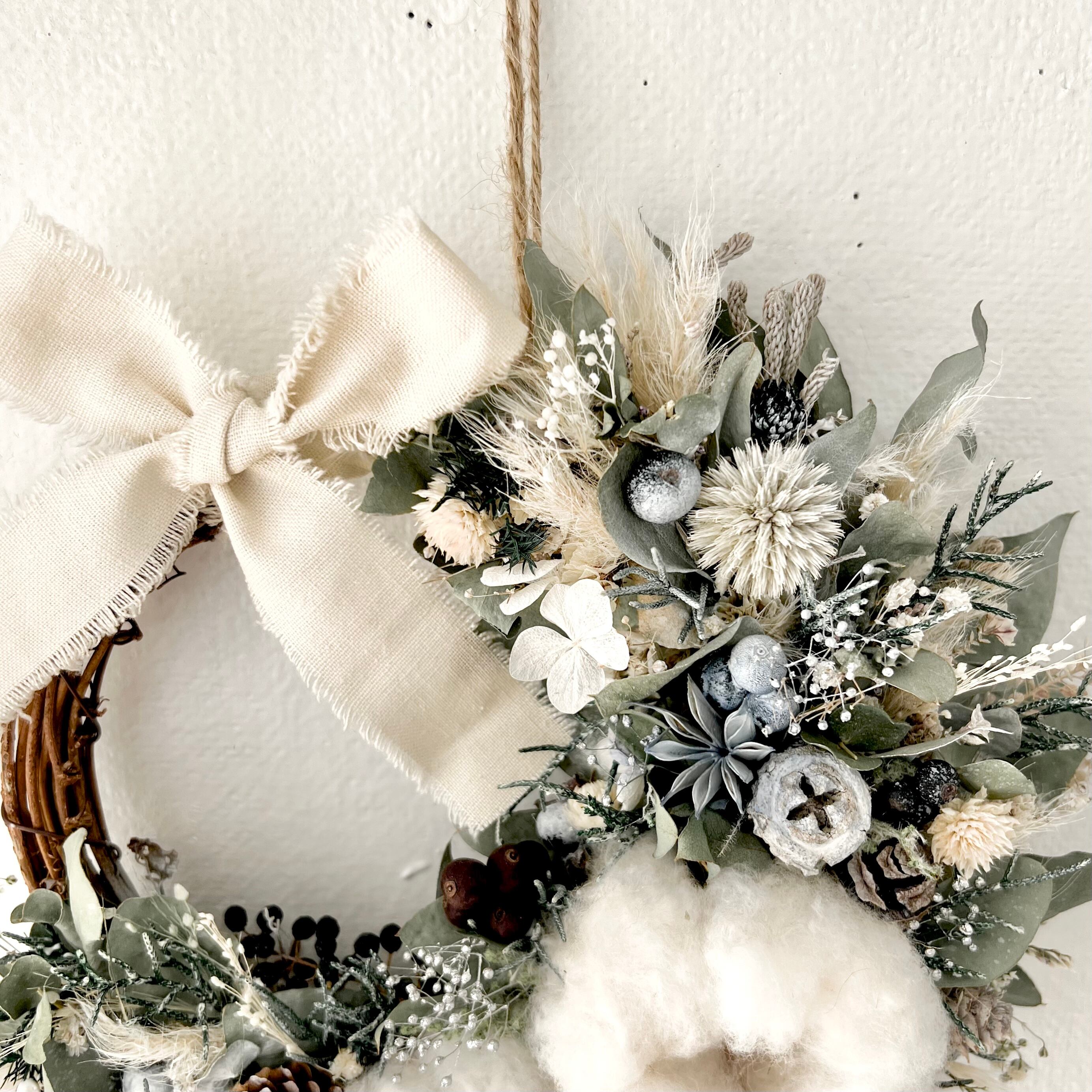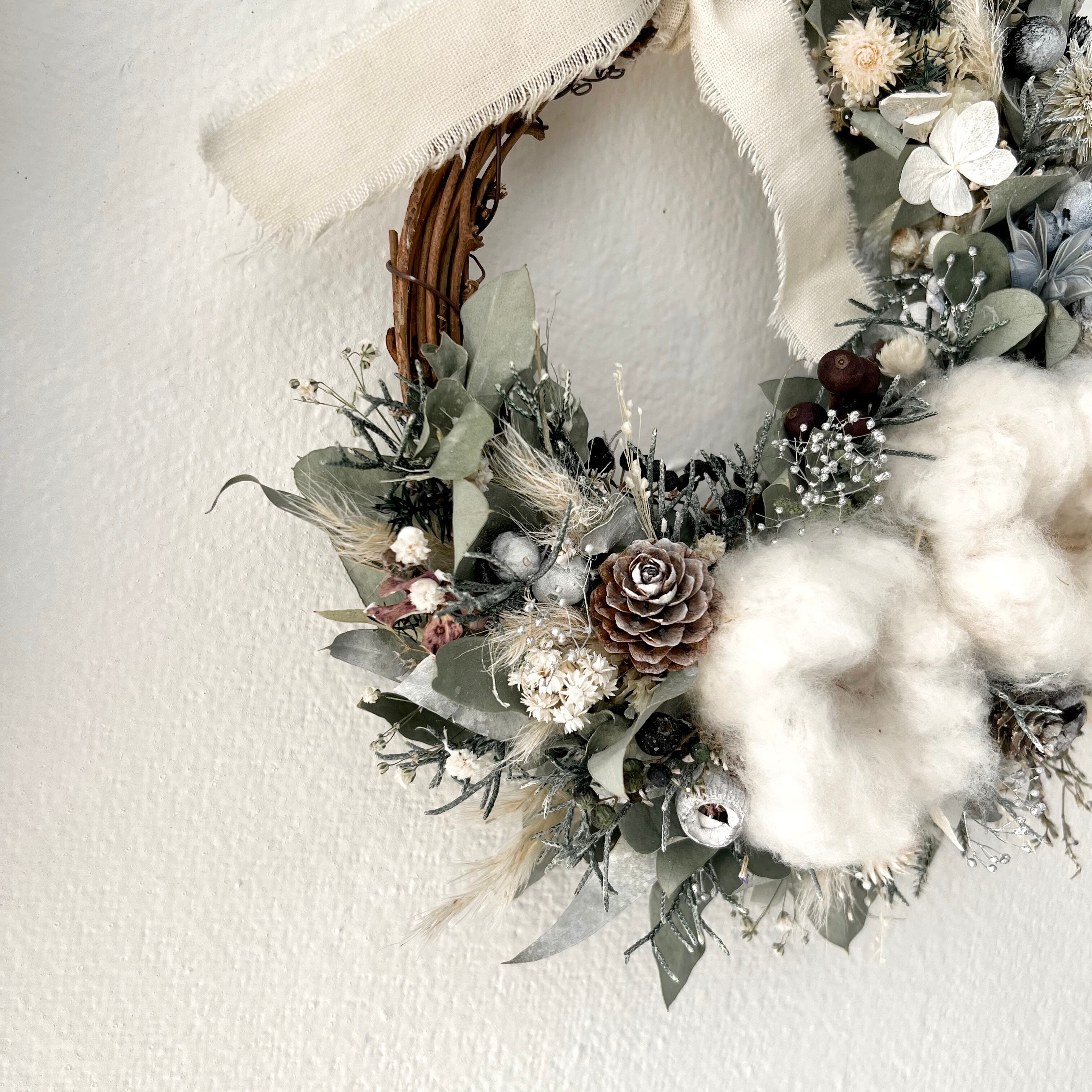 コットンフラワーと木の実のリース ドライフラワー 誕生日プレゼント 引っ越し祝い 記念日 ギフト