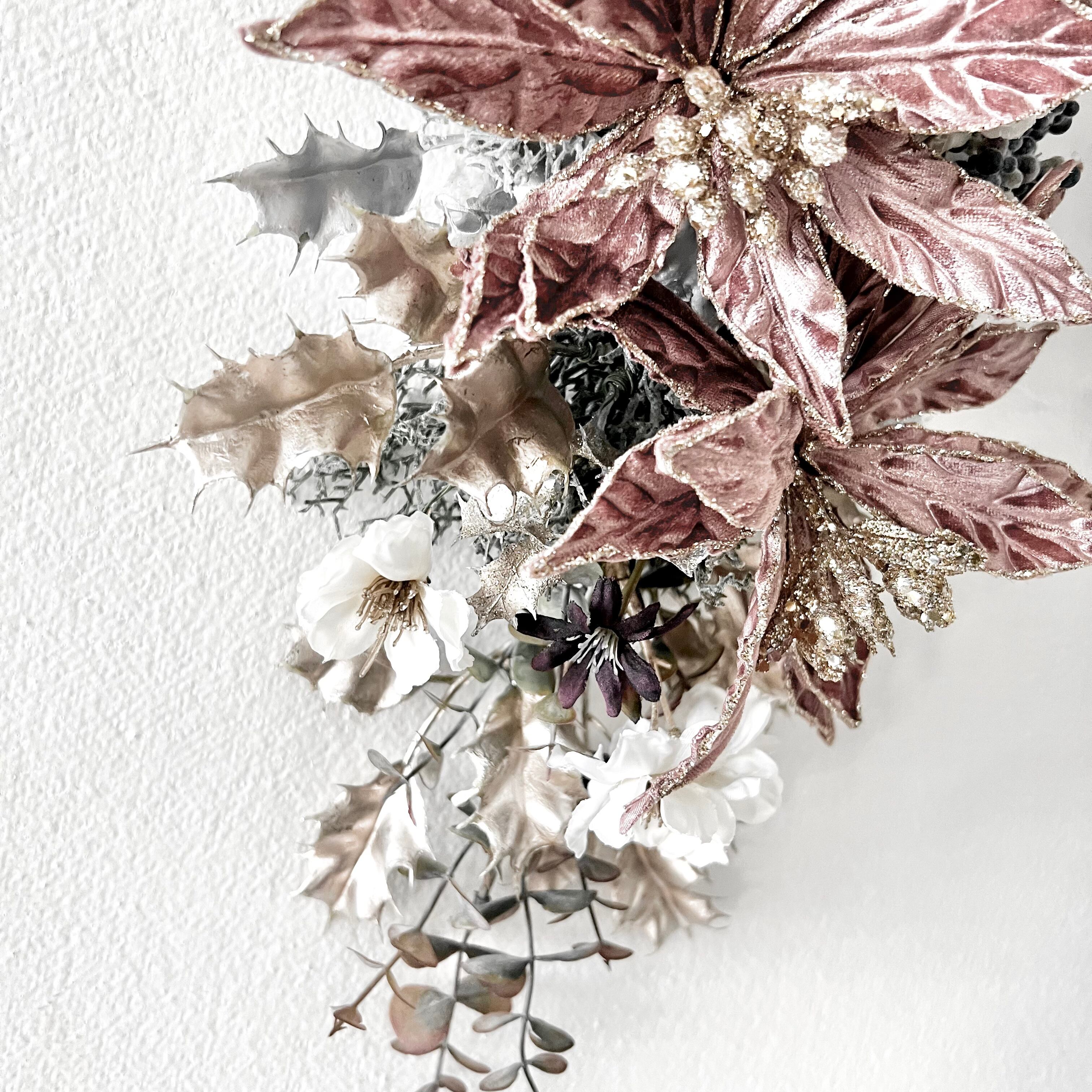 くすみピンク ベルベットポインセチアのロングスワッグです。