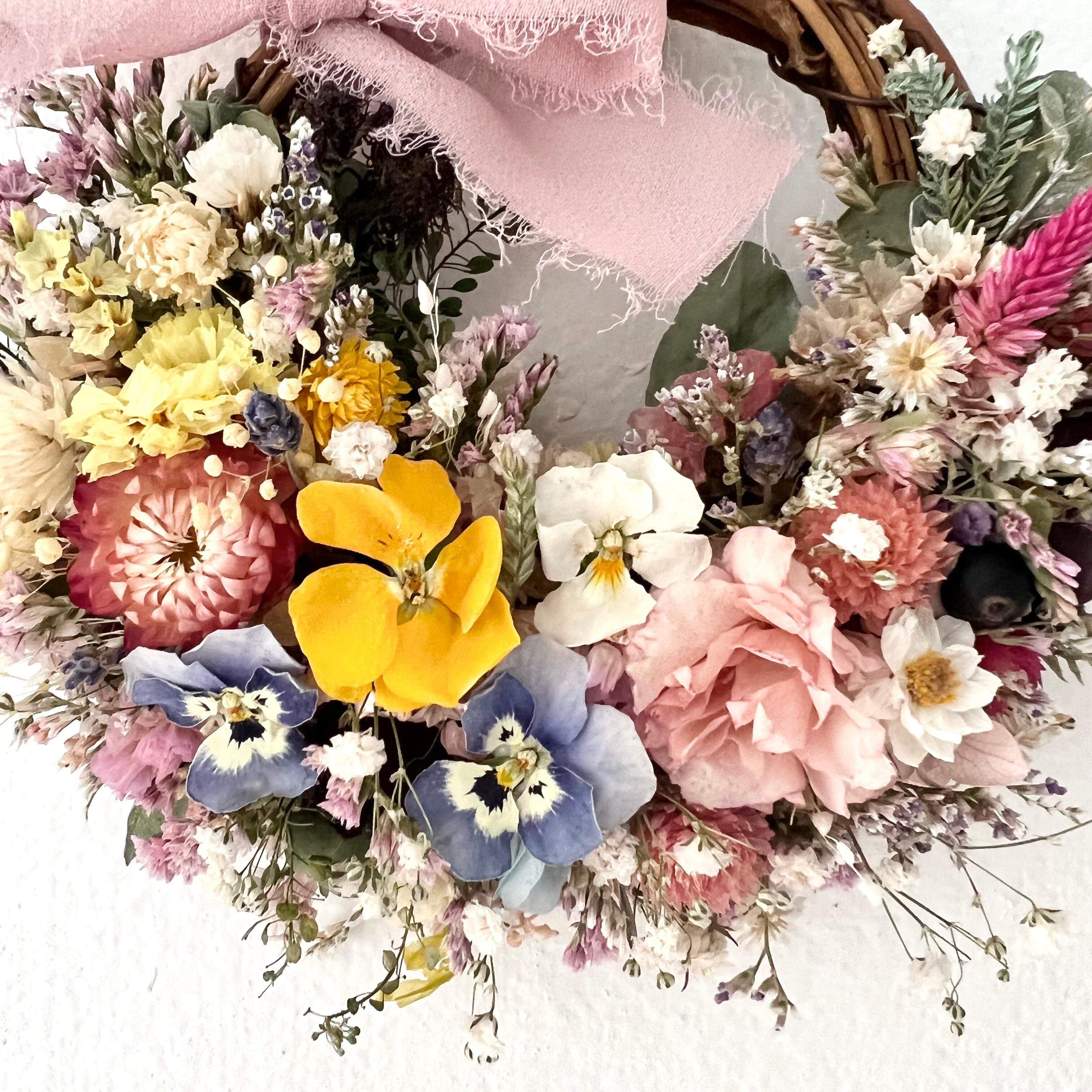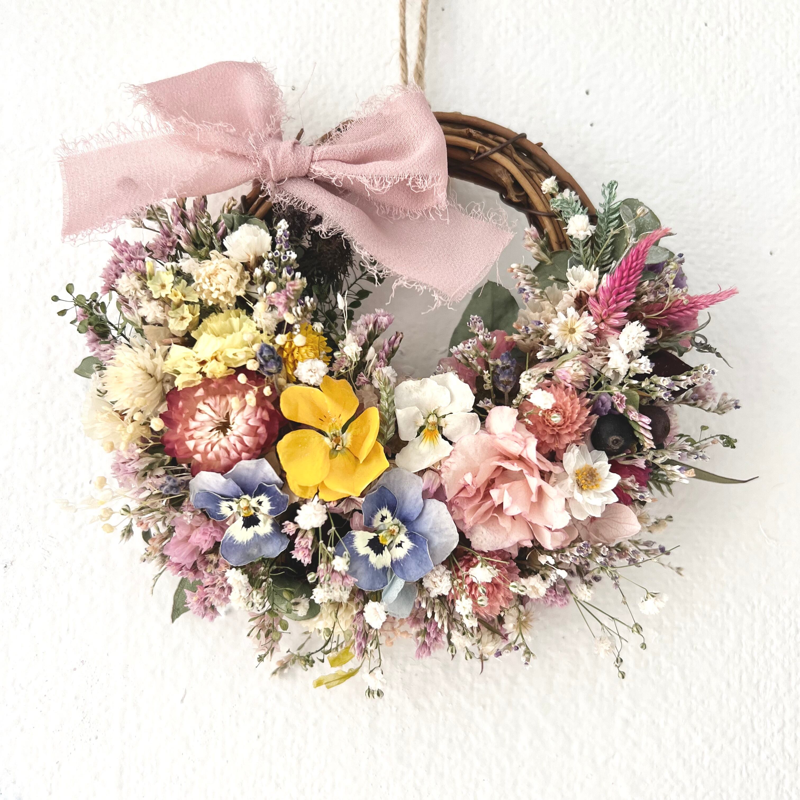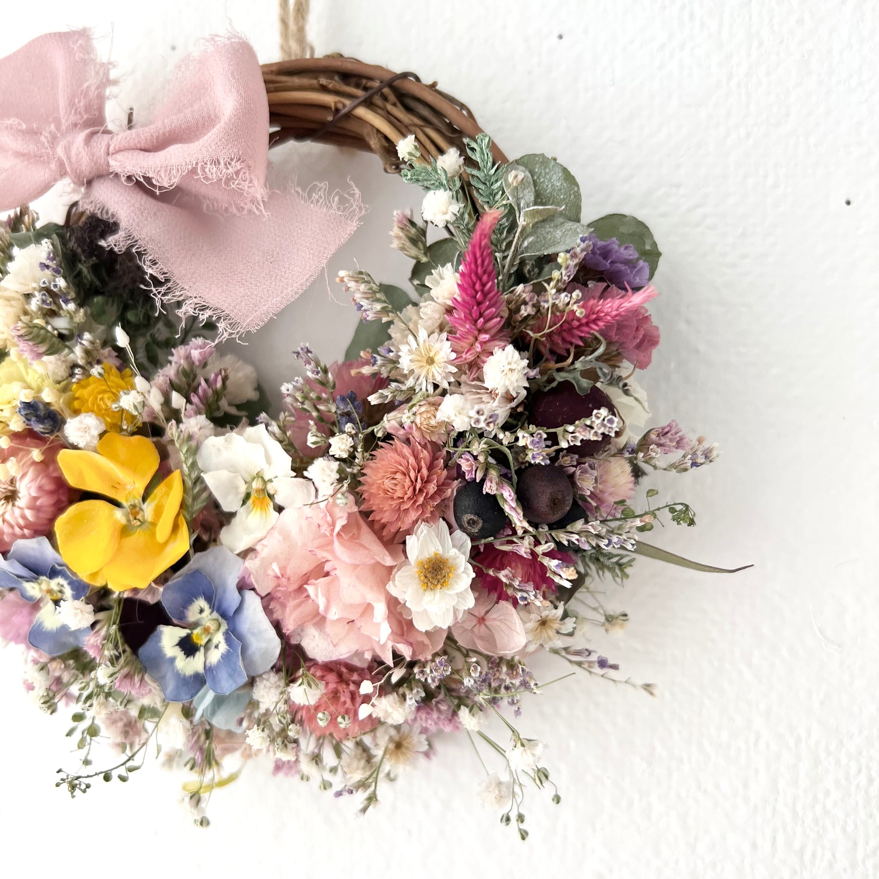 小花のミニリース ドライフラワー 誕生日プレゼント 引っ越し祝い 記念日 ギフト