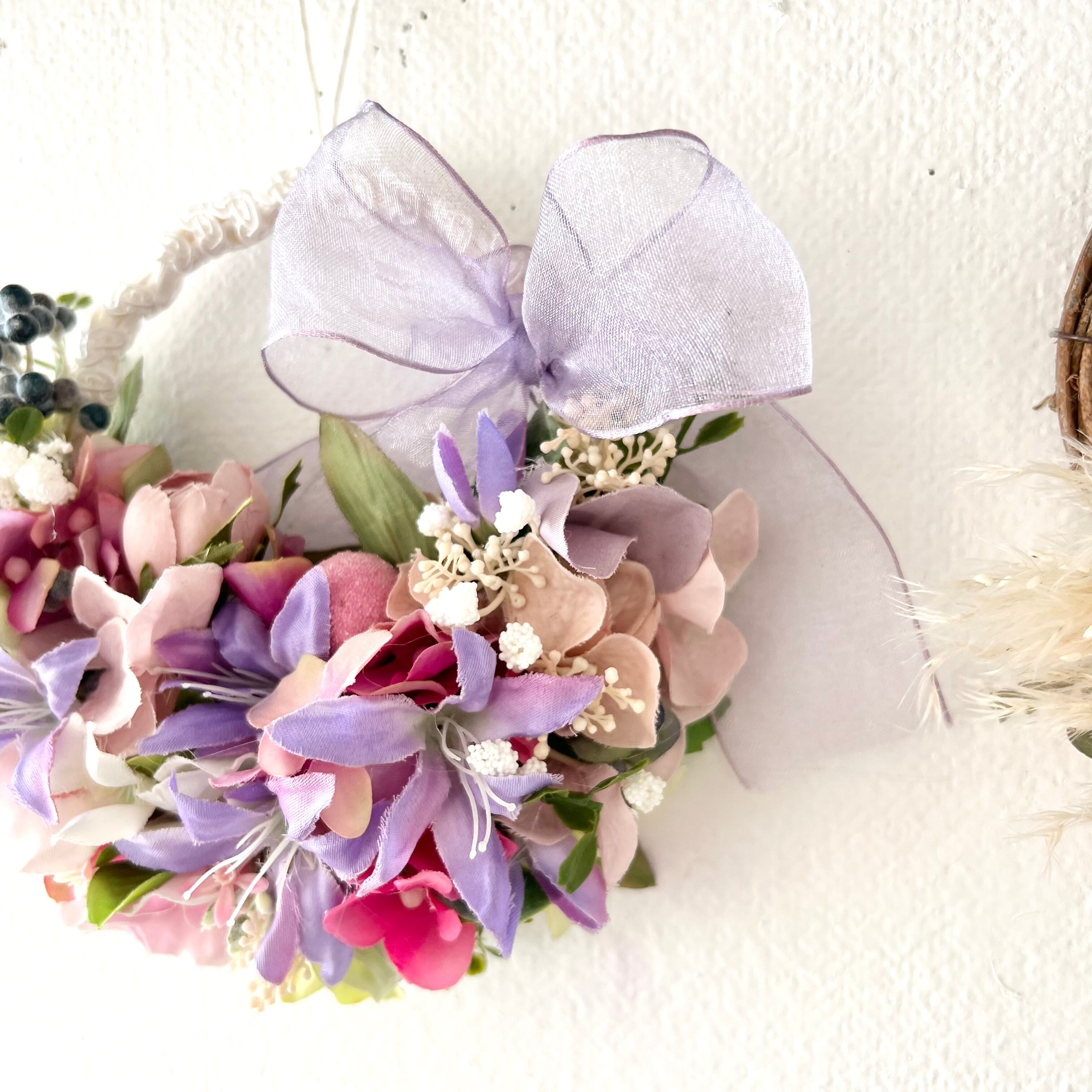 引っ越し祝い バレンタイン ホワイトデー クリスマスプレゼント 新築祝い ひな祭り 母の日 ホワイト 紫陽花 リース インテリアフラワー *