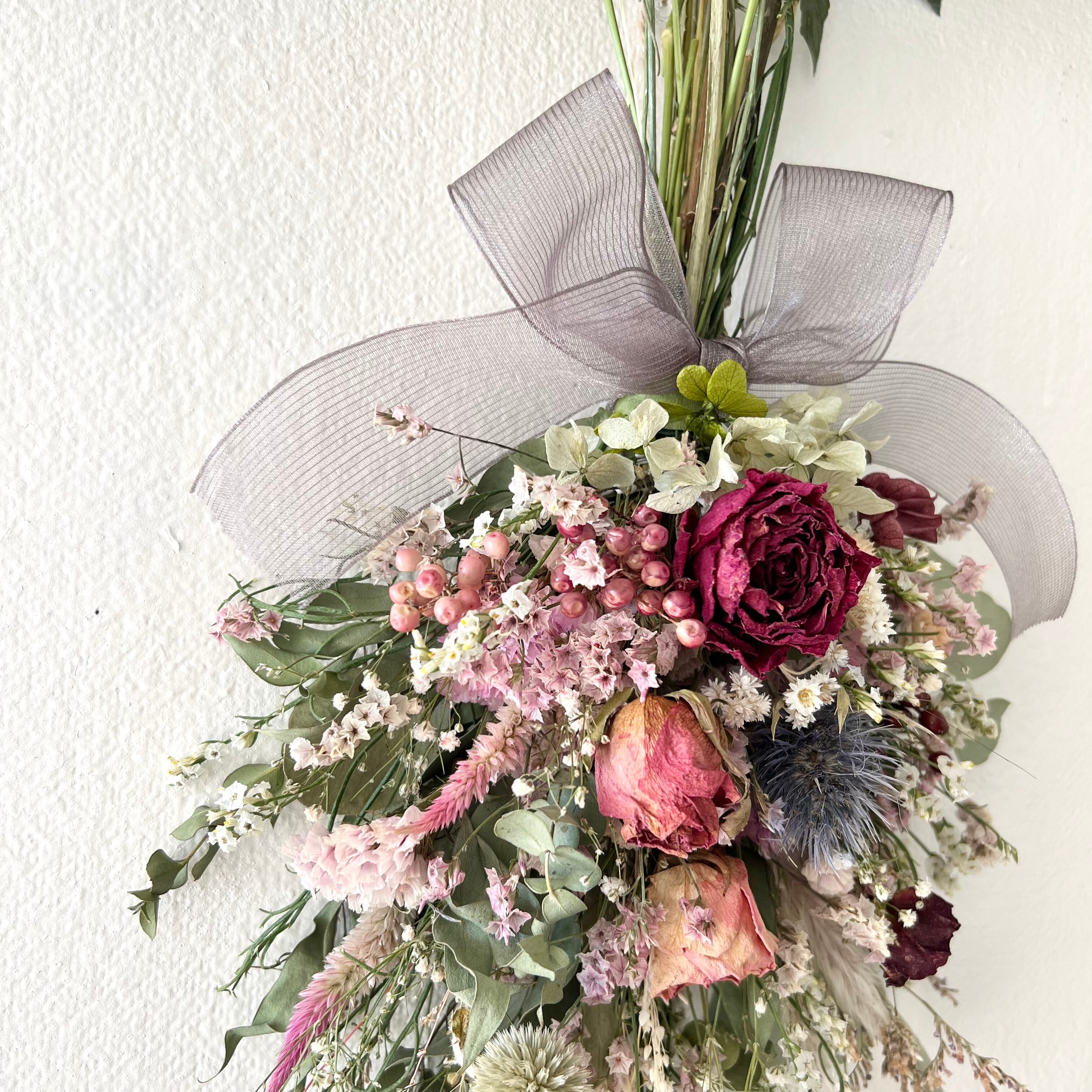 ローズと小花のスワッグ ドライフラワー 誕生日プレゼント 引っ越し祝い 記念日. ギフト