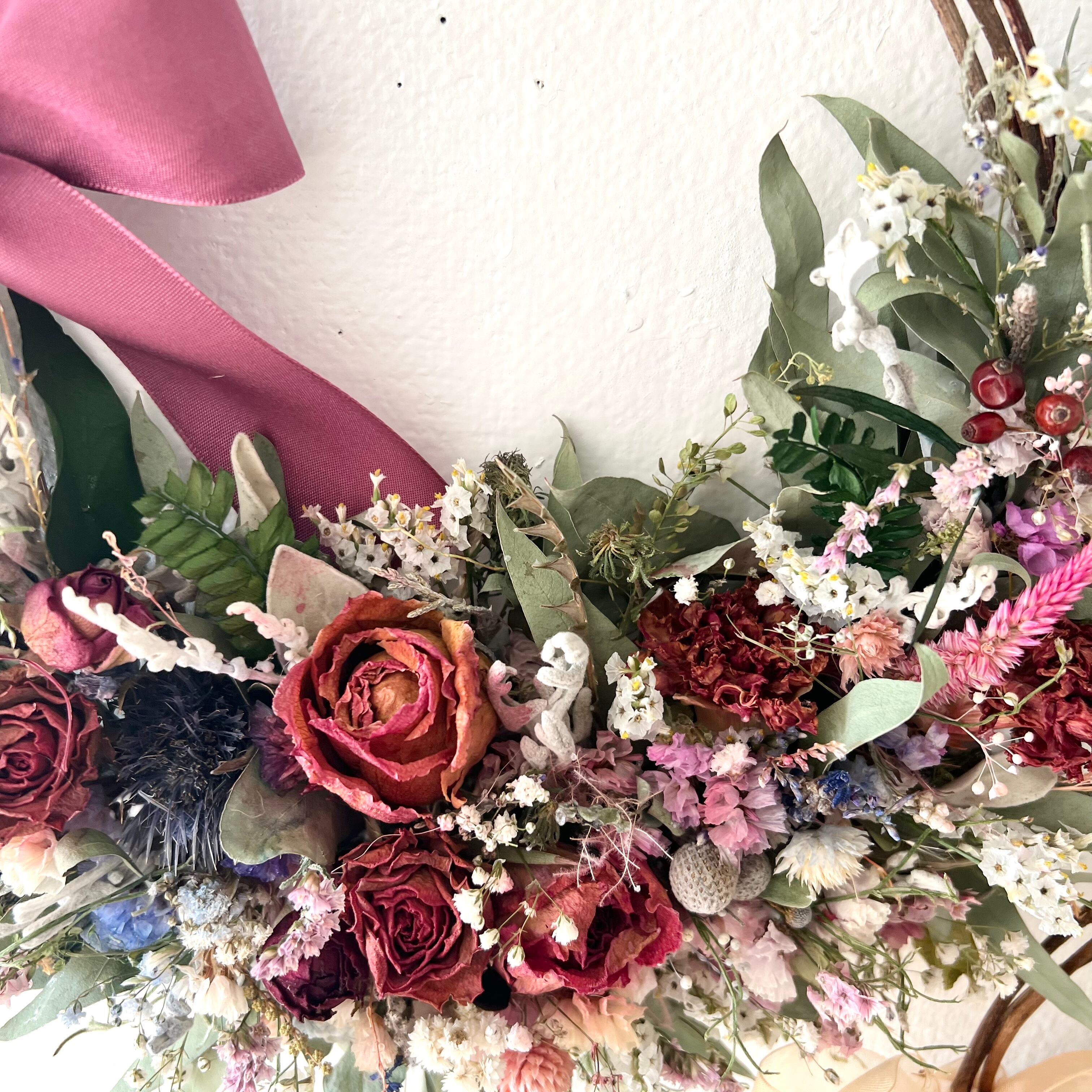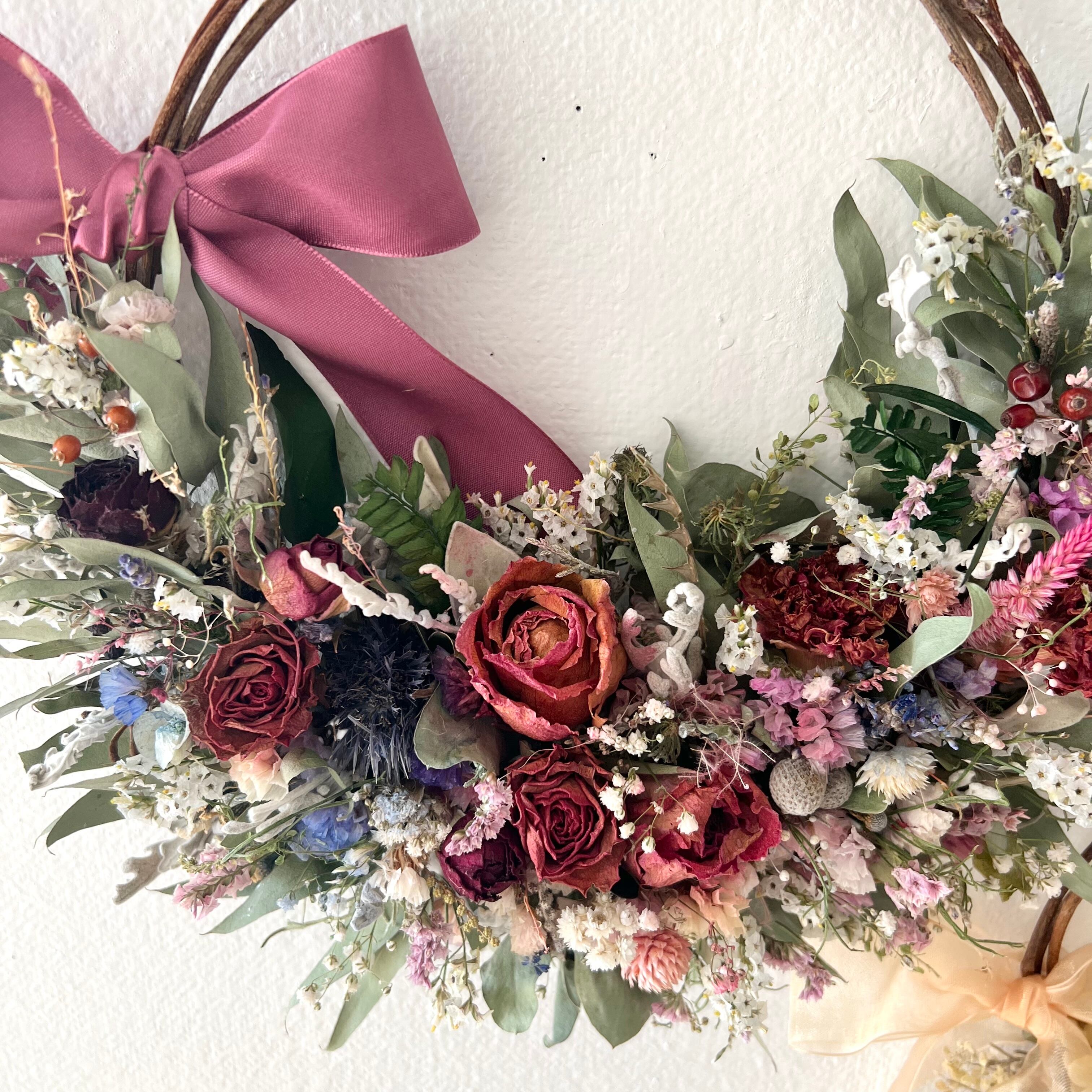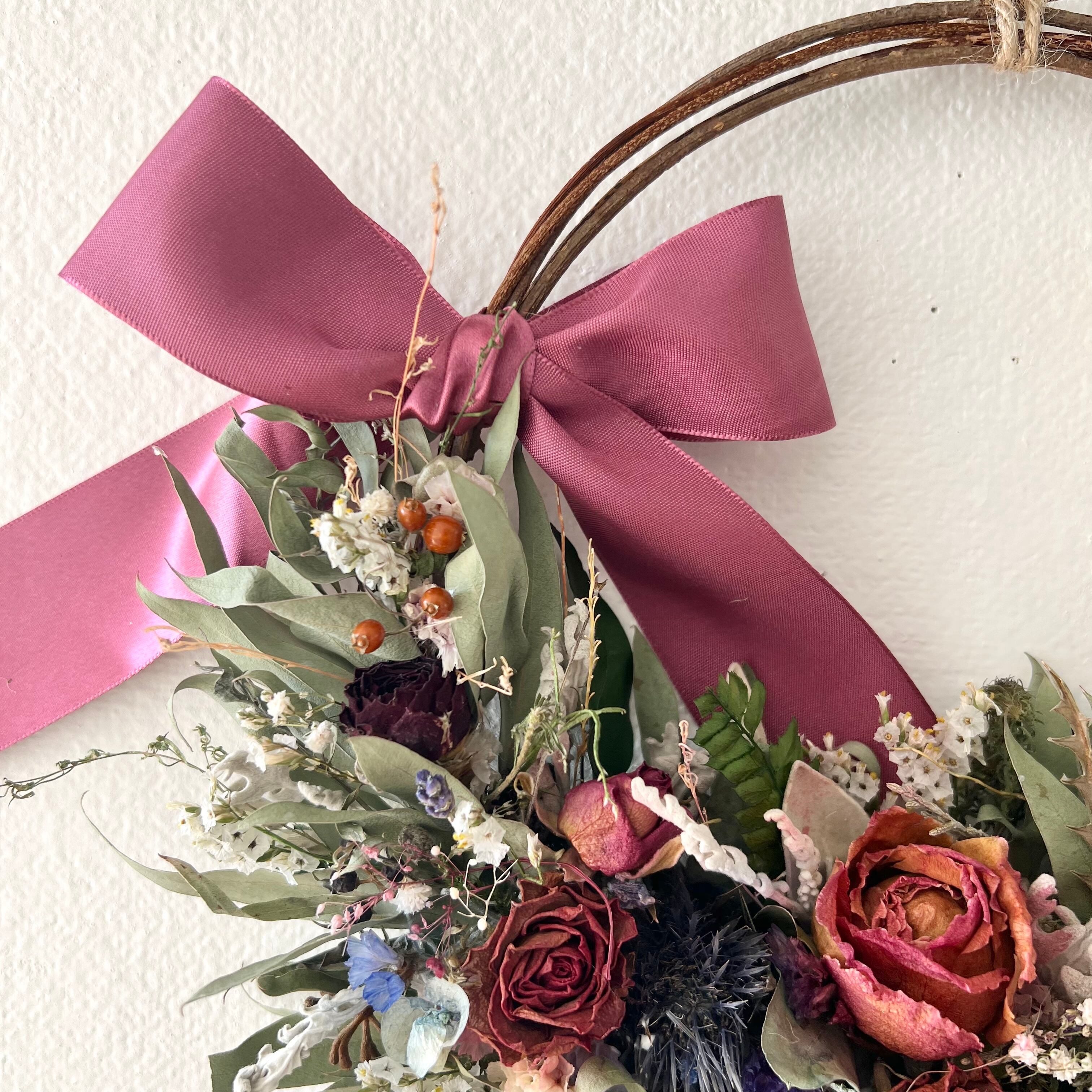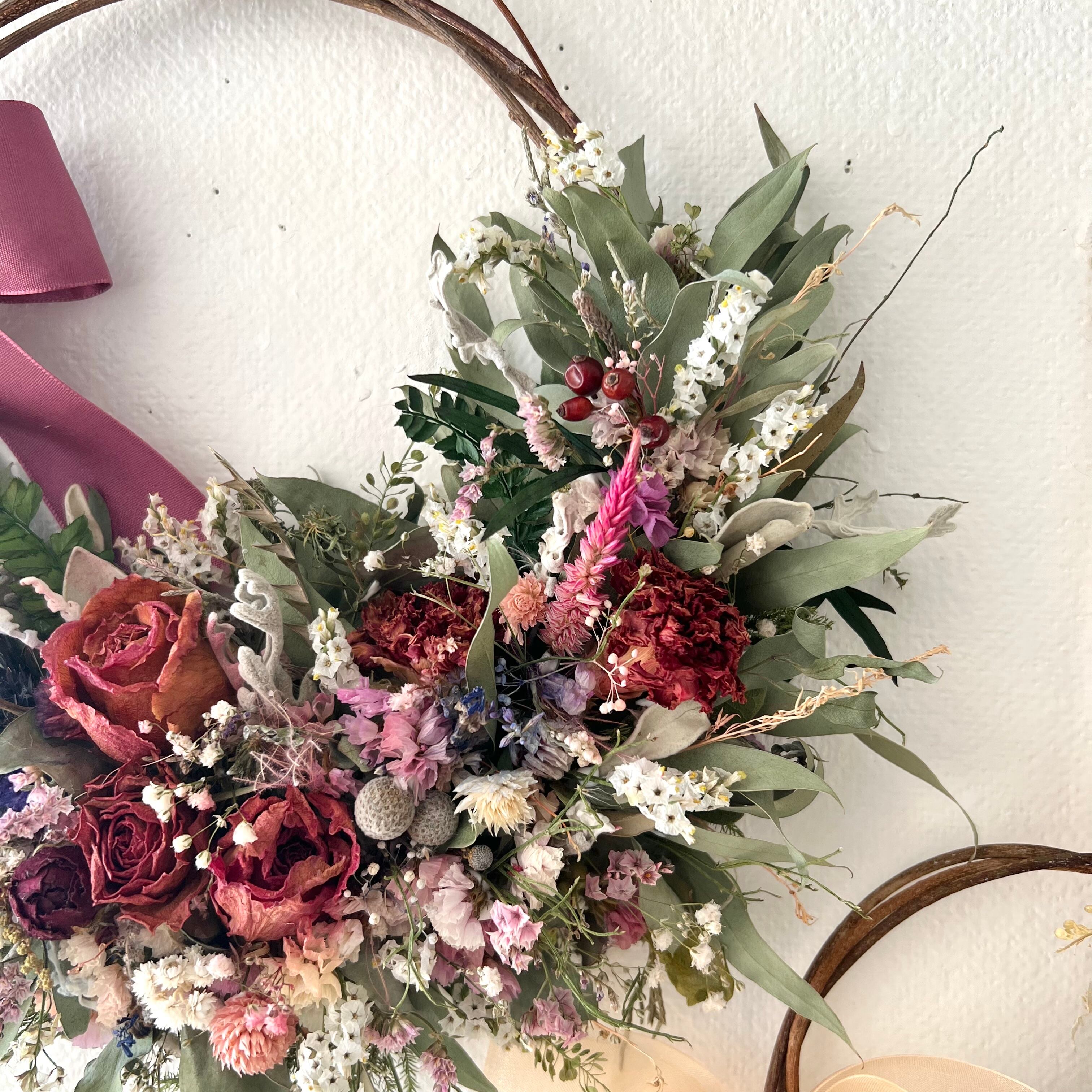 ローズと小花のリース ドライフラワー 誕生日プレゼント 引っ越し祝い 記念日 ギフト