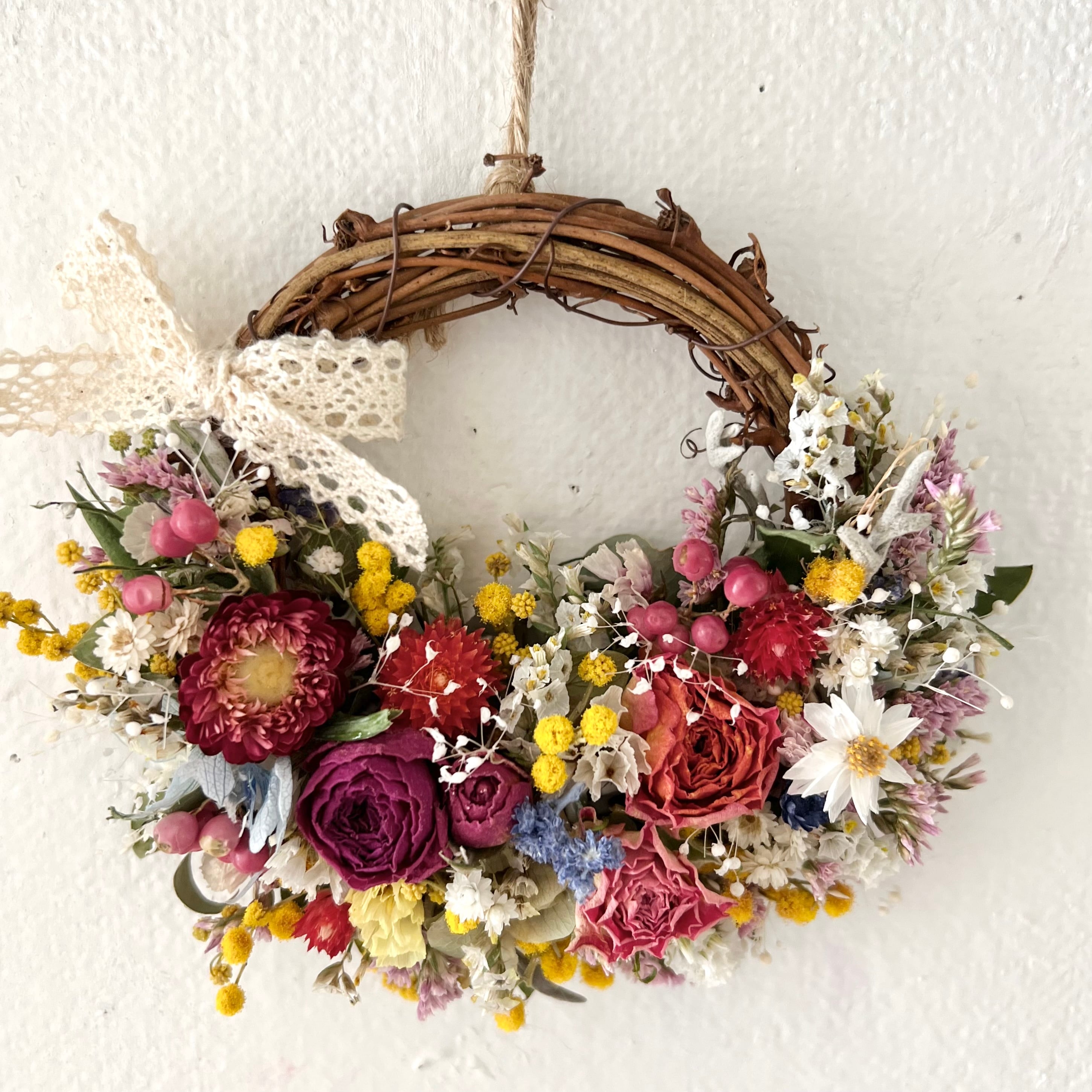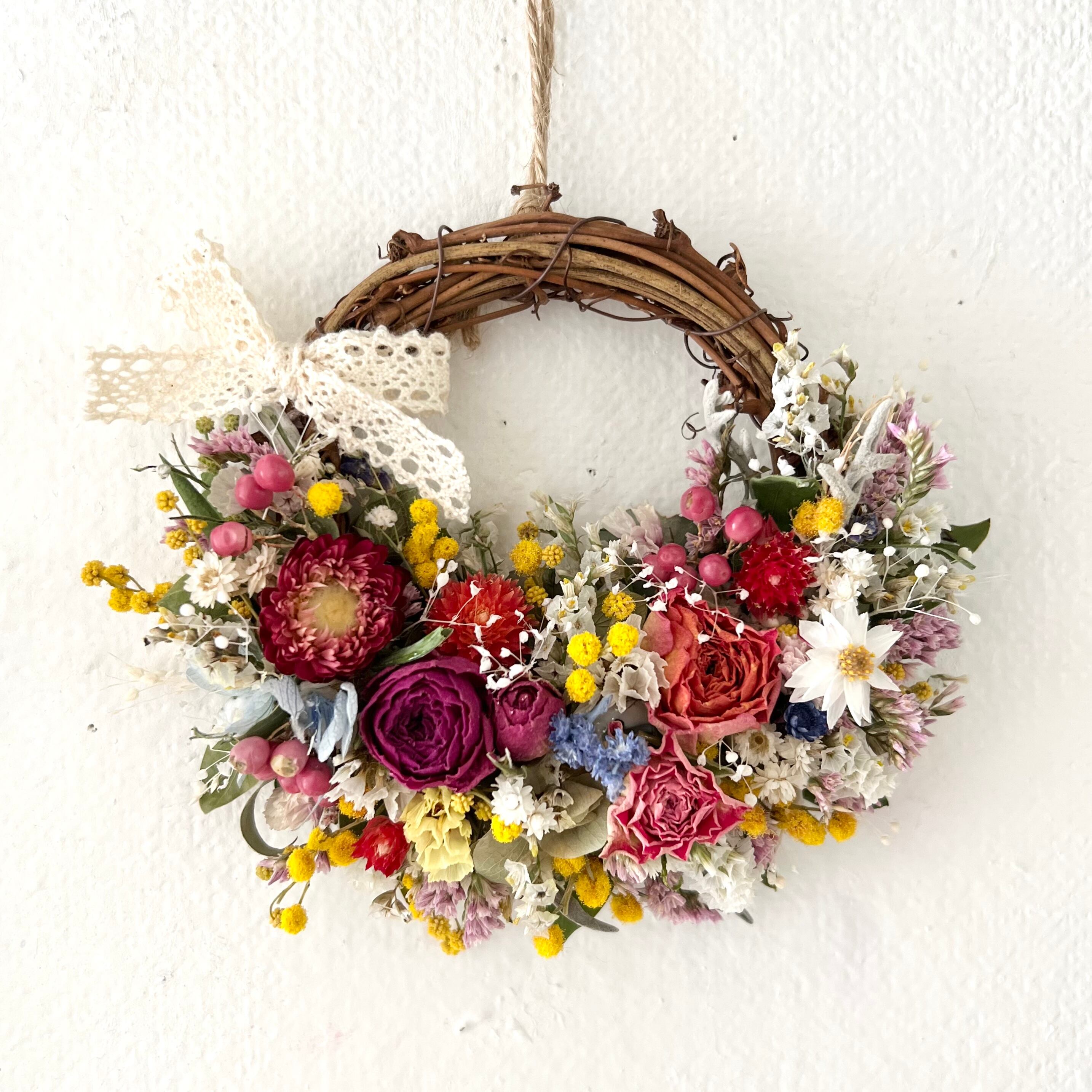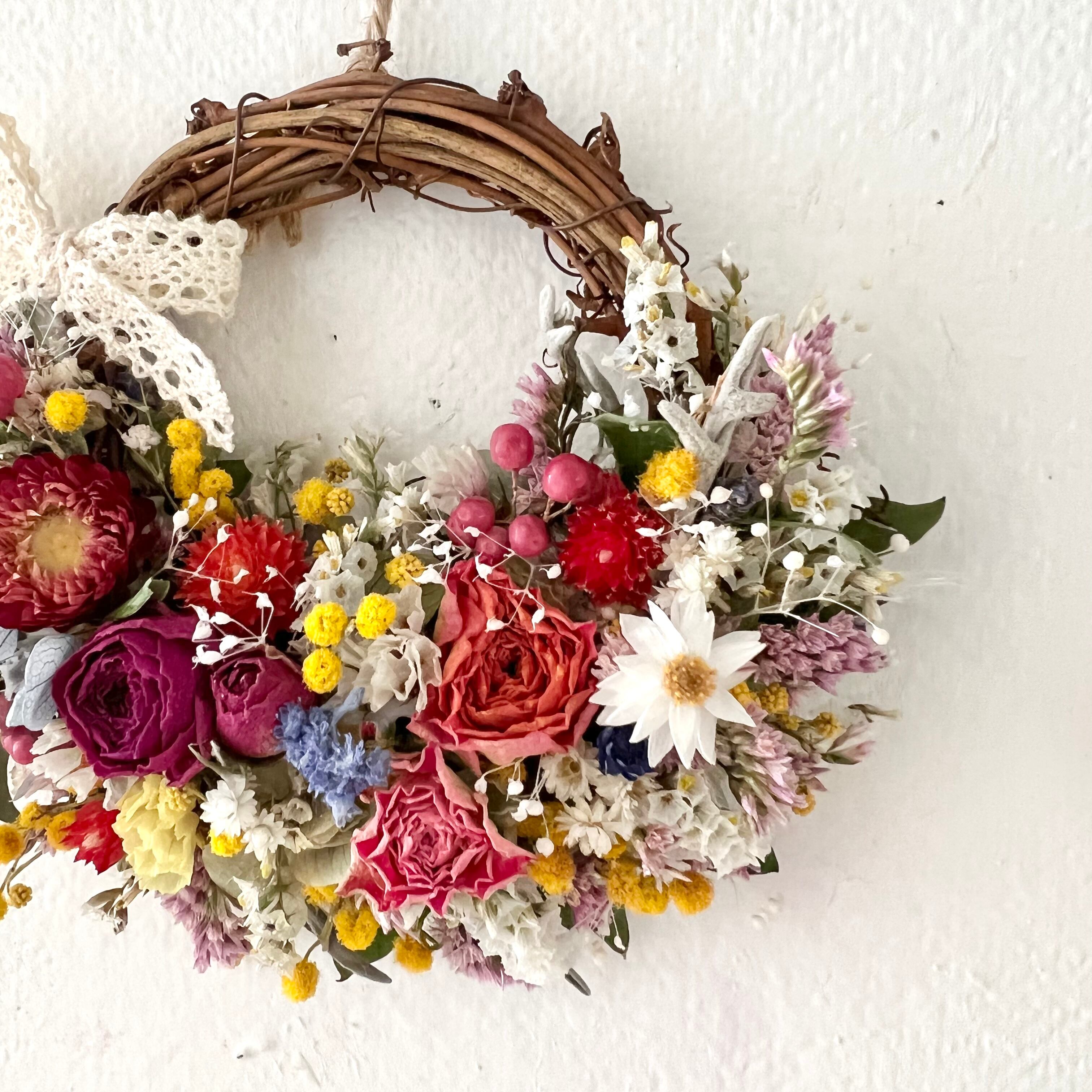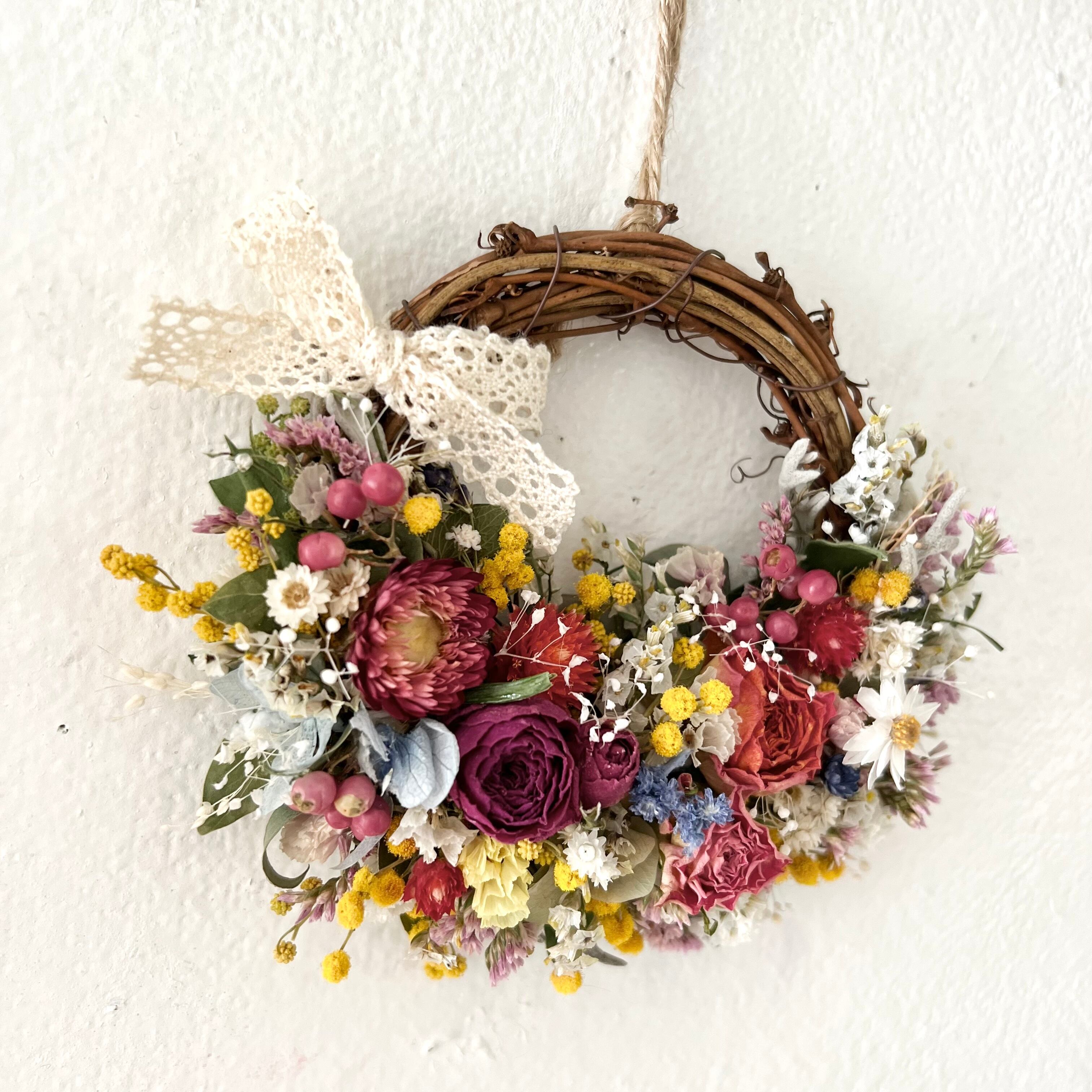 ミモザと小花の春リース ドライフラワー 誕生日プレゼント 引っ越し祝い 記念日 ギフト