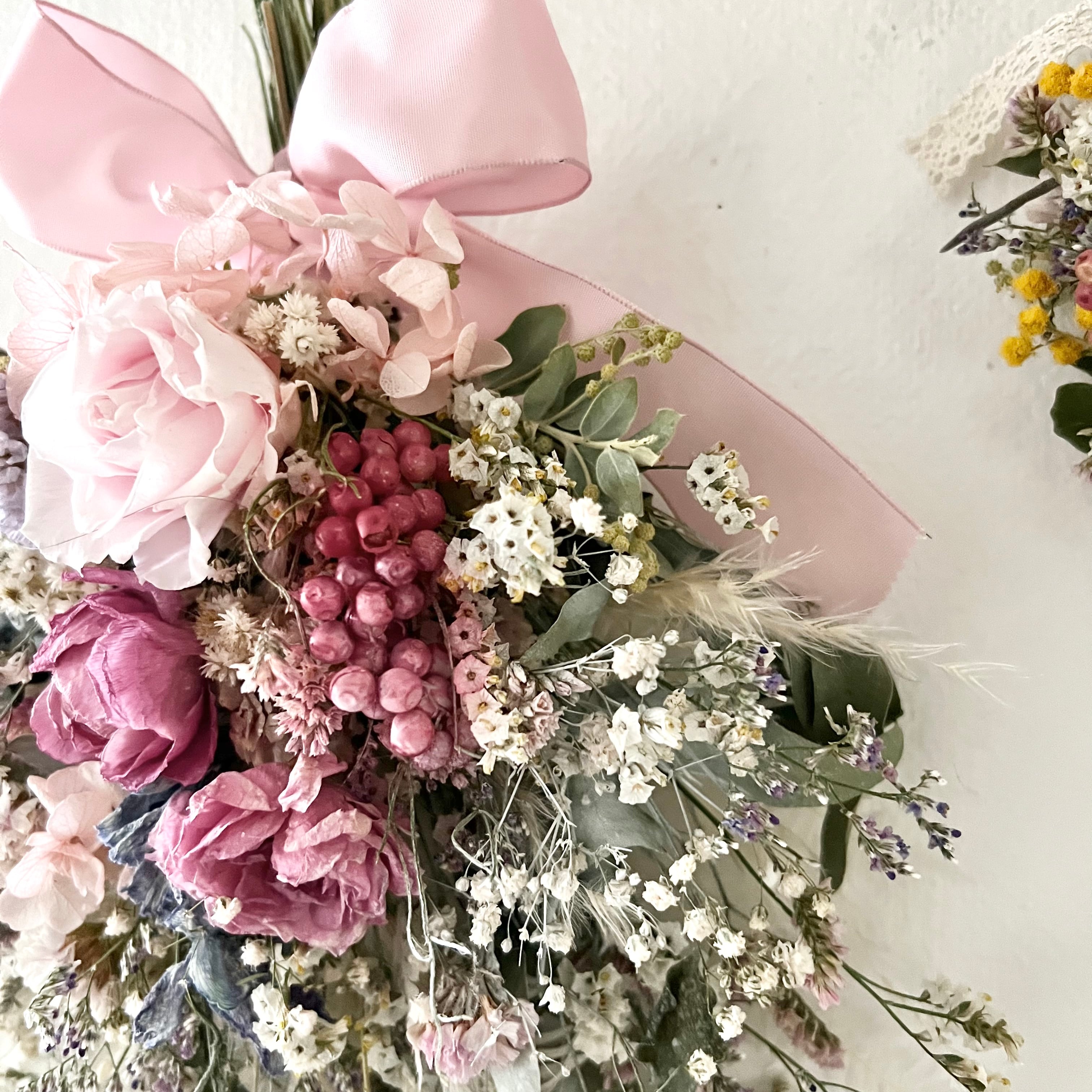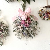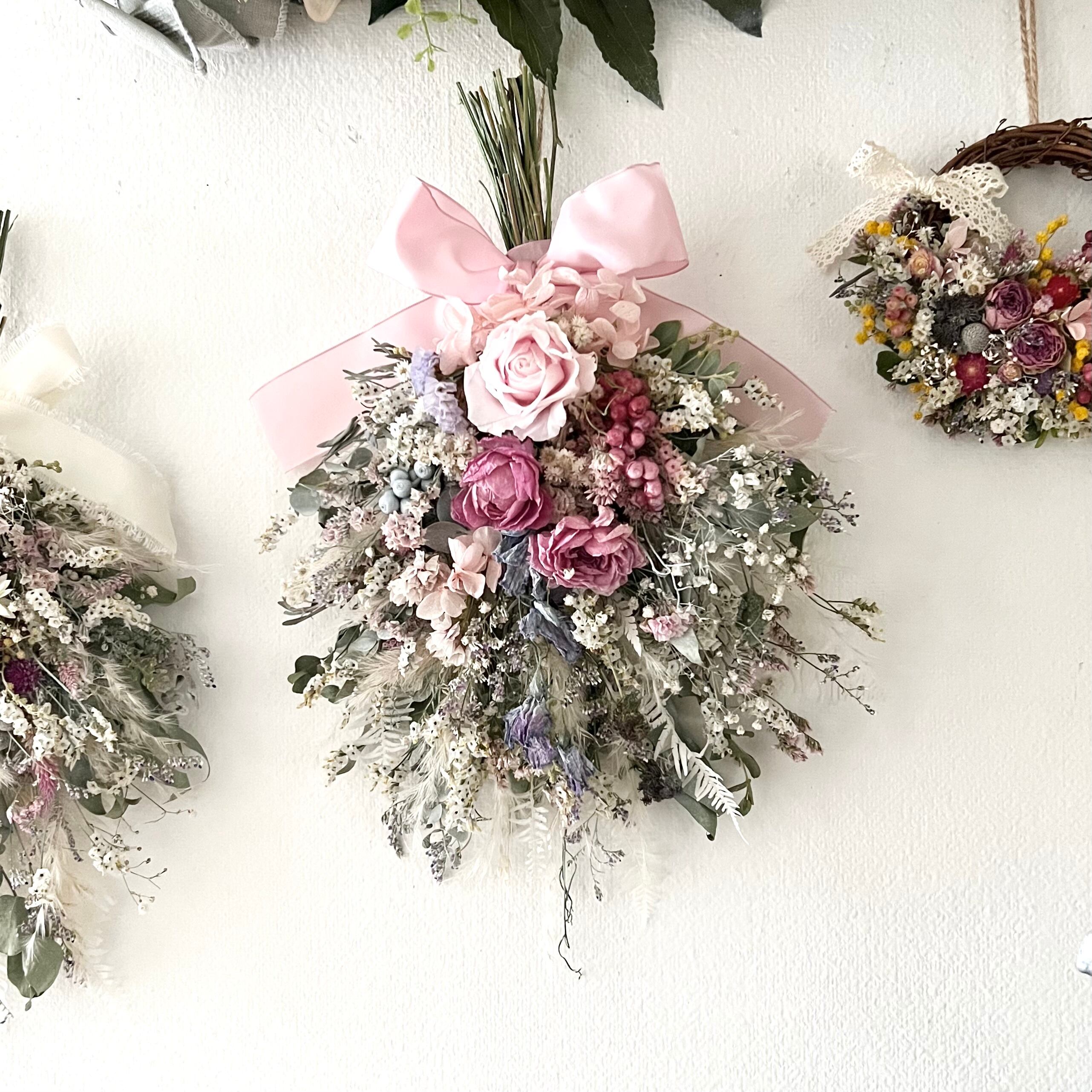 ローズとラナンキュラス 小花の春スワッグ ドライフラワー 誕生日プレゼント 引っ越し祝い 記念日. ギフト