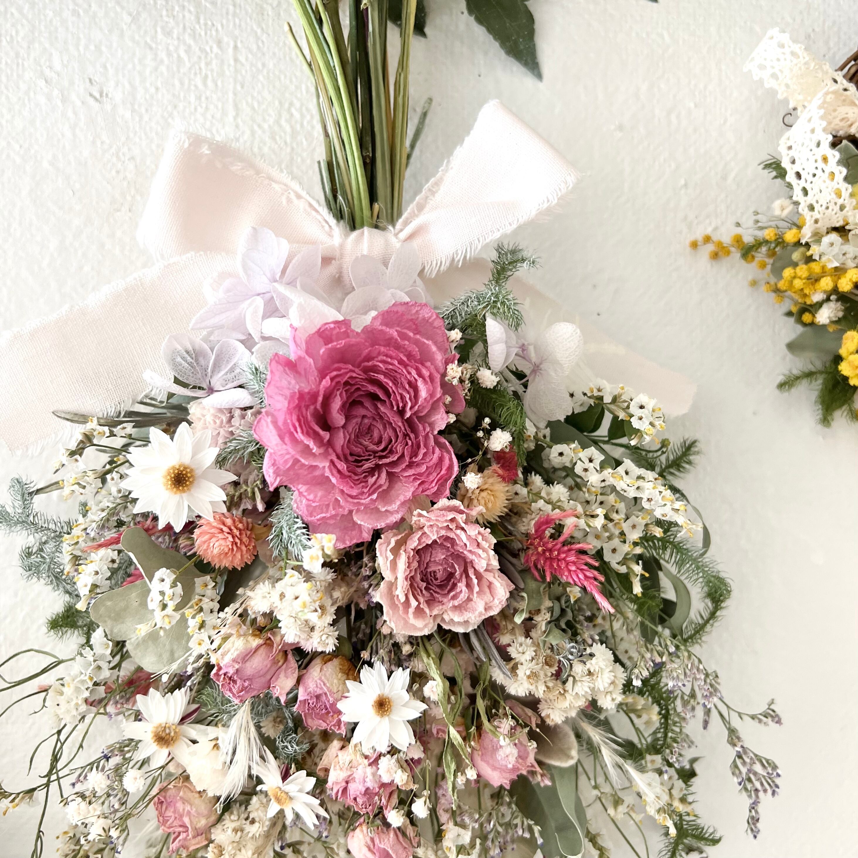 ローズとラナンキュラス 小花の春スワッグ ドライフラワー 誕生日プレゼント 引っ越し祝い 記念日. ギフト