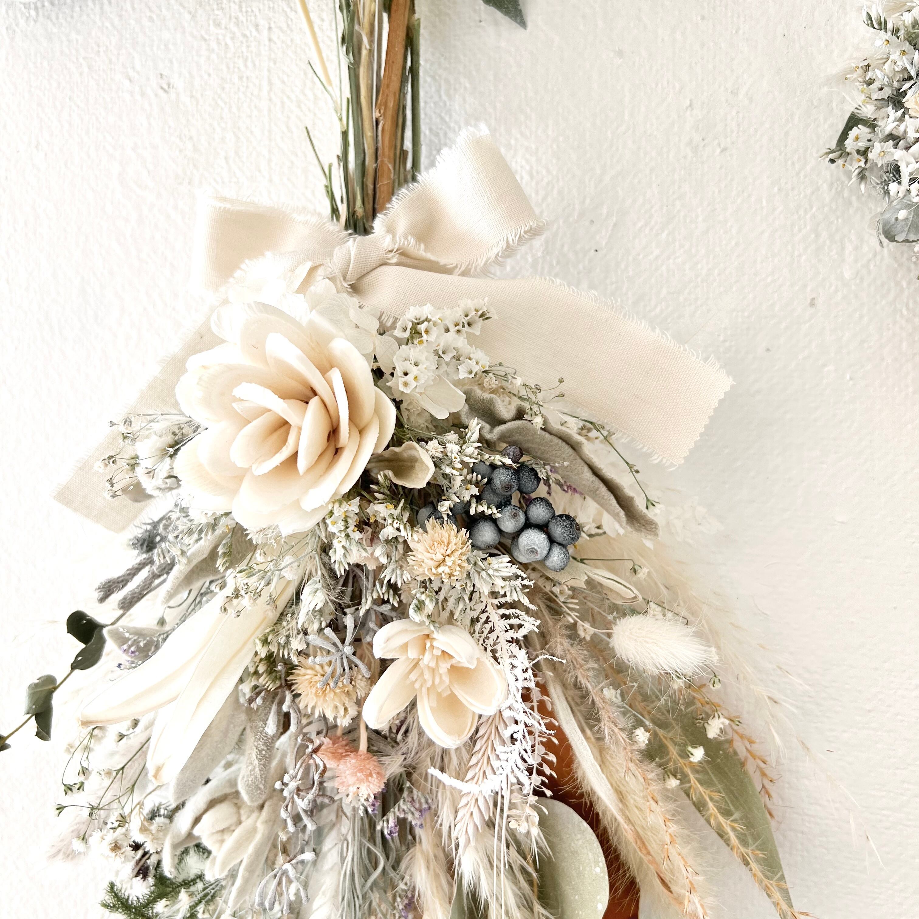 ナチュラルホワイトのソラローズと小花を合わせたナチュラルスワッグです。