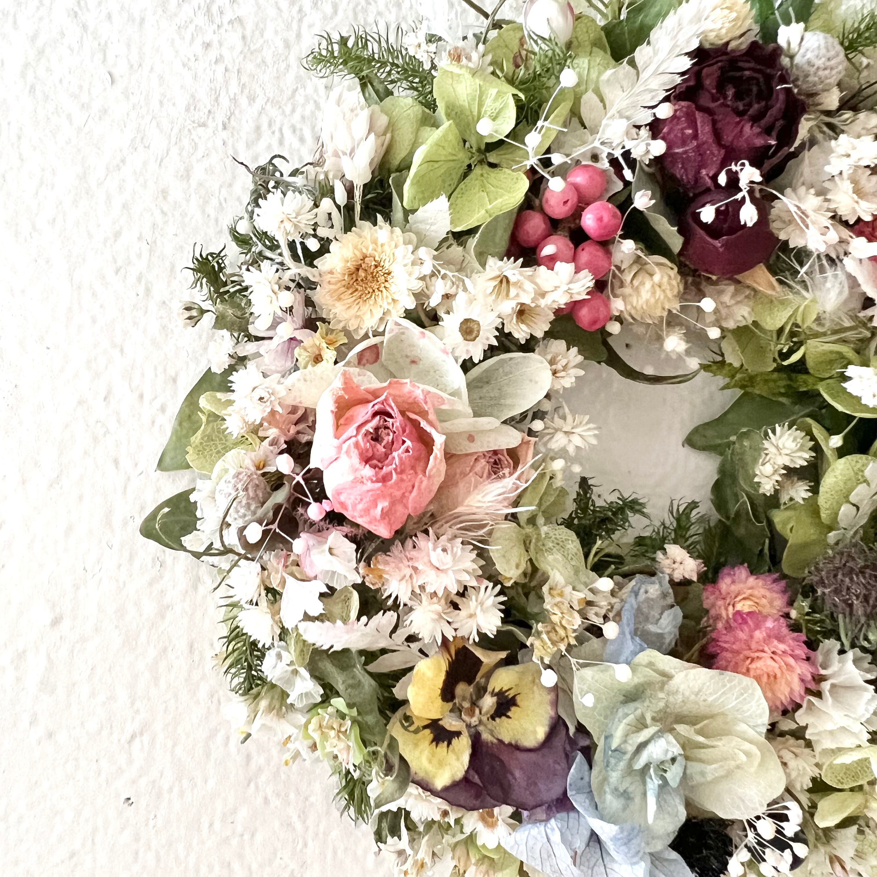 小花の春リース ドライフラワー 誕生日プレゼント 引っ越し祝い 記念日 ギフト