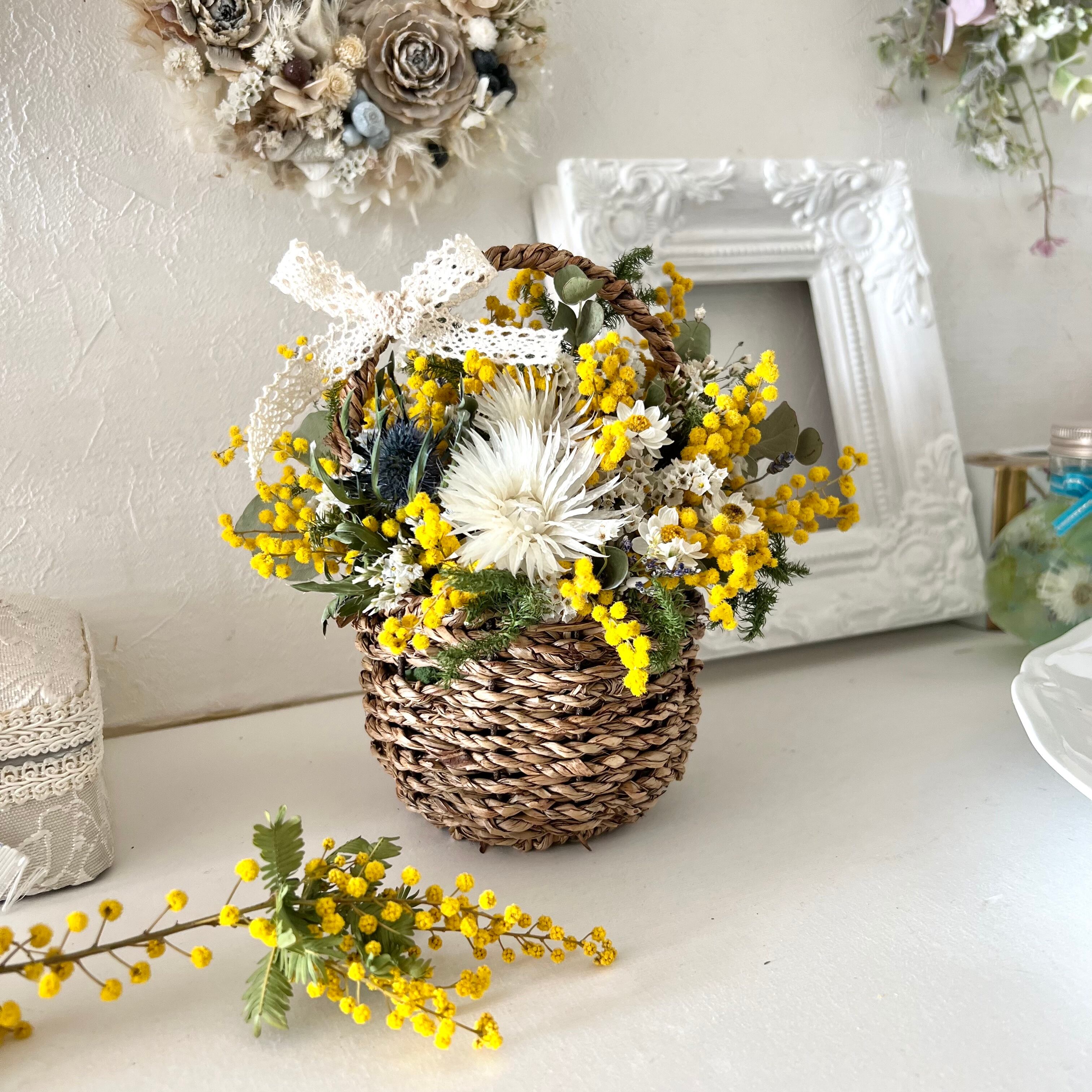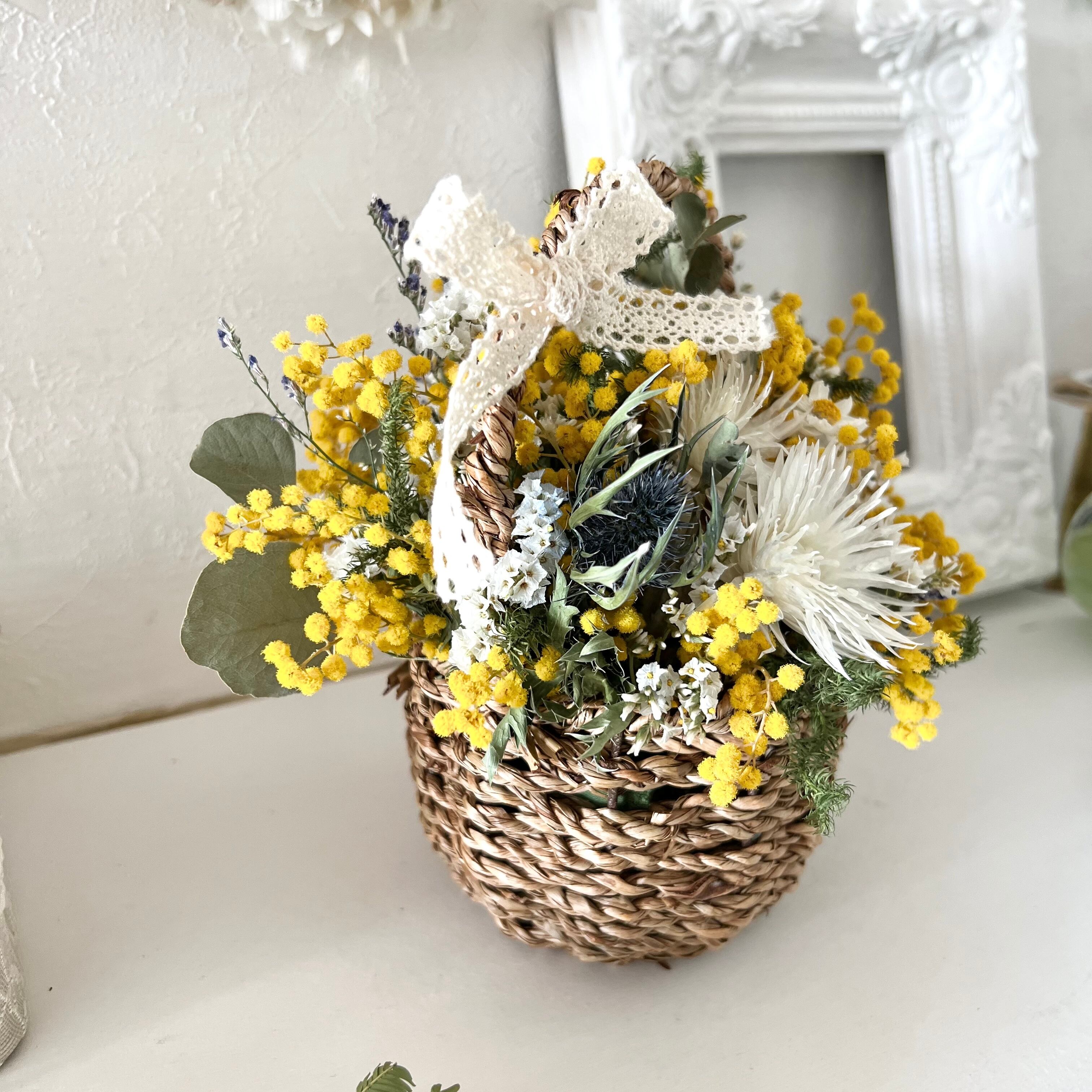 ミモザのバスケットアレンジメント ドライフラワー 誕生日プレゼント 引っ越し祝い 記念日. ギフト