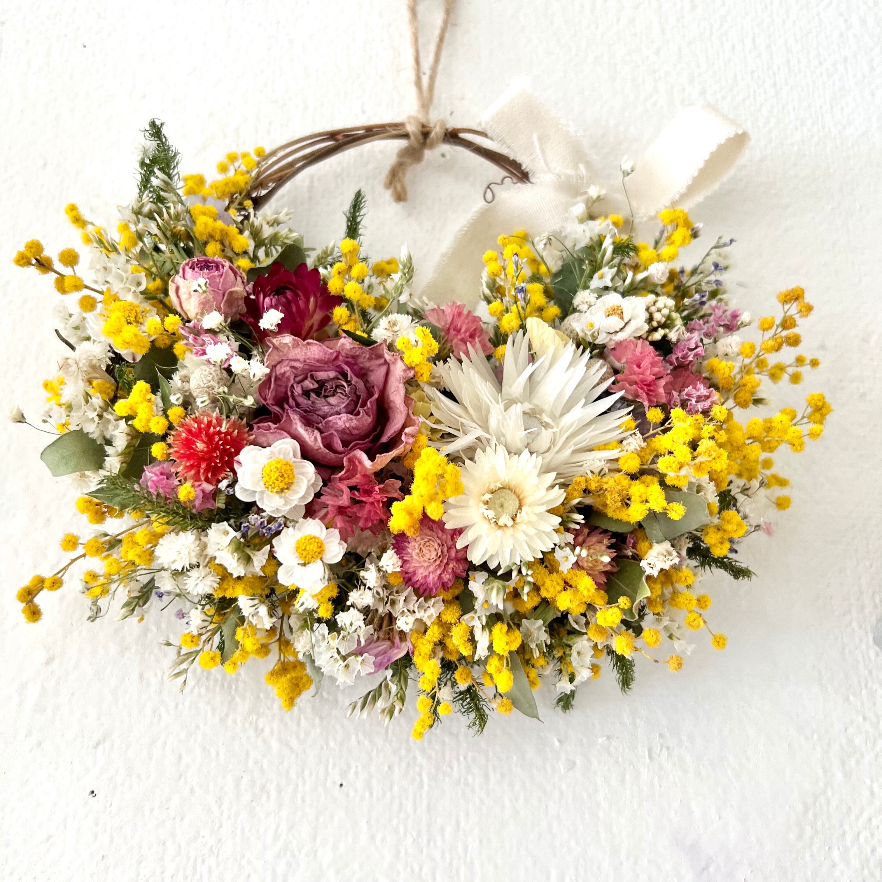 ミモザの春リース ドライフラワー 誕生日プレゼント 引っ越し祝い 記念日 ギフト
