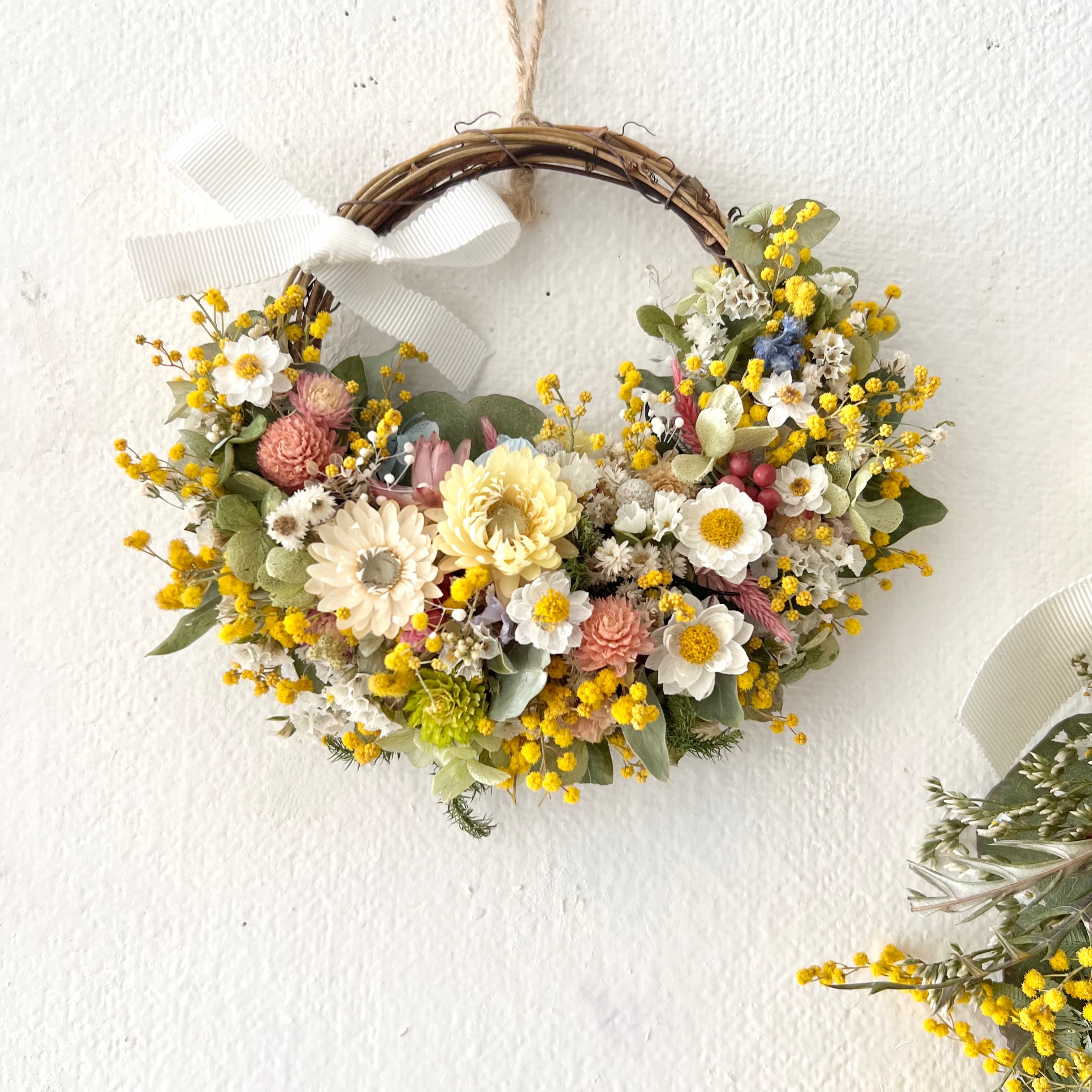 ミモザと小花の春リース ドライフラワー 誕生日プレゼント 引っ越し祝い 記念日 ギフト