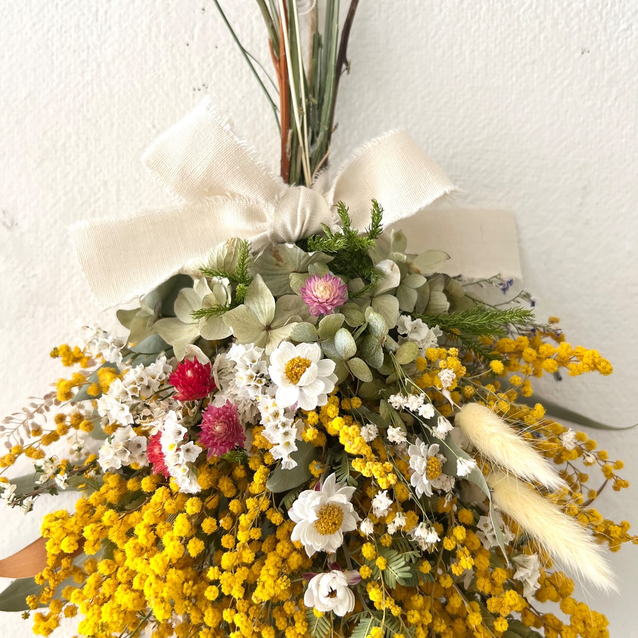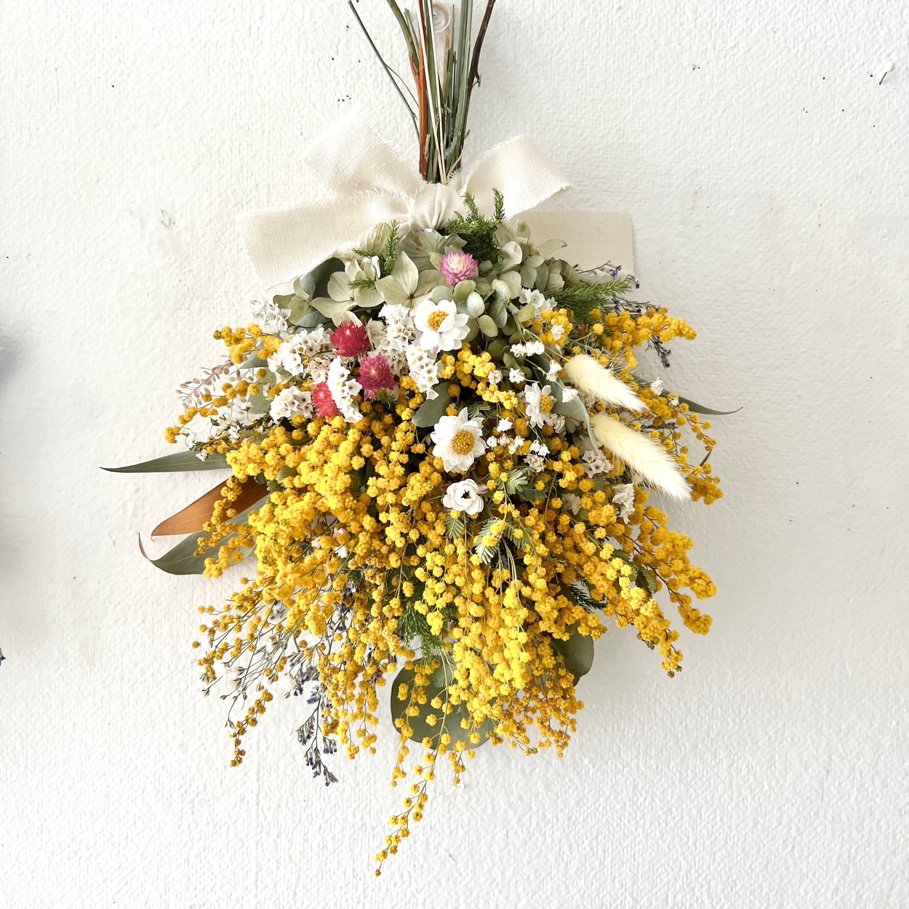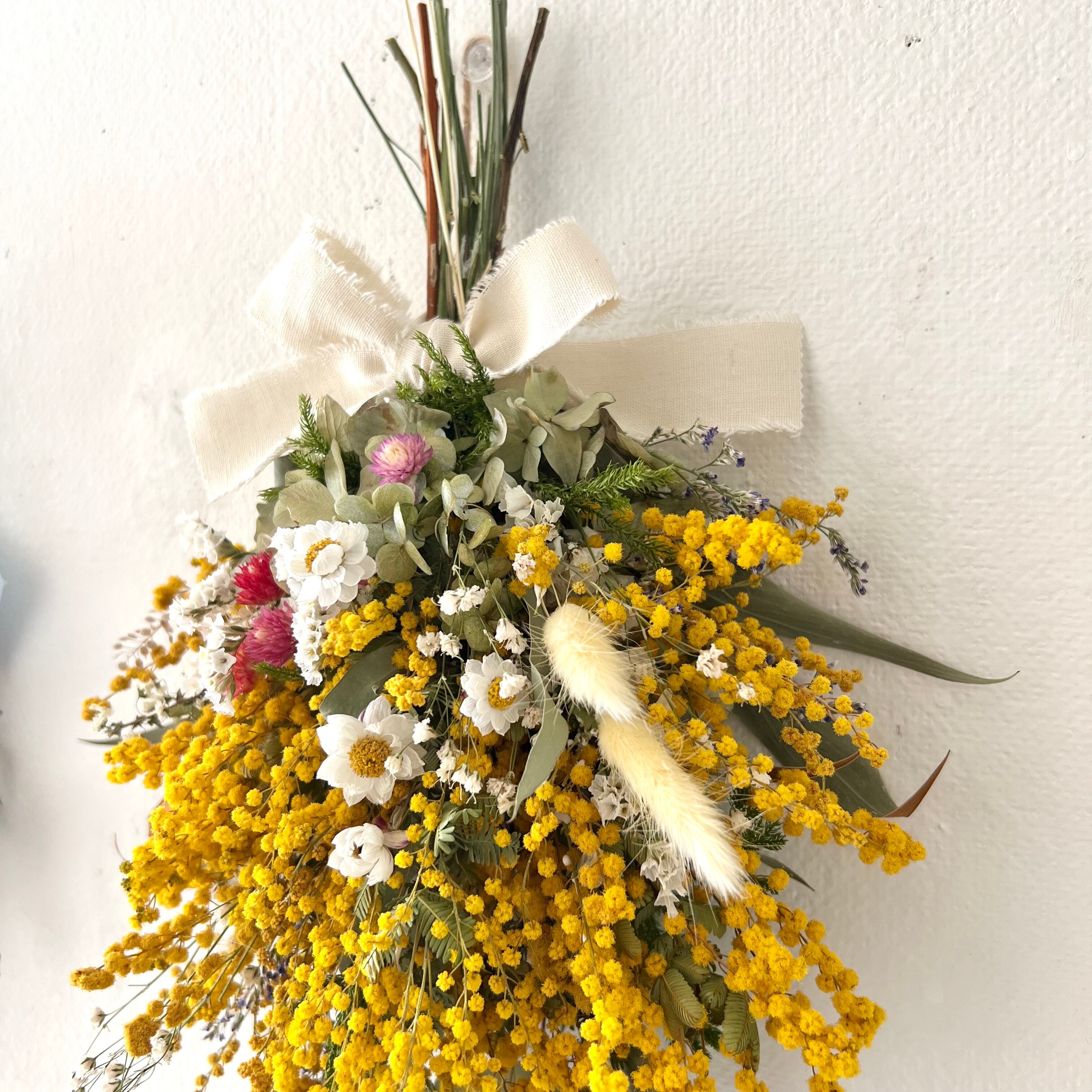 ミモザの春スワッグ ドライフラワー 誕生日プレゼント 引っ越し祝い 記念日 ギフト