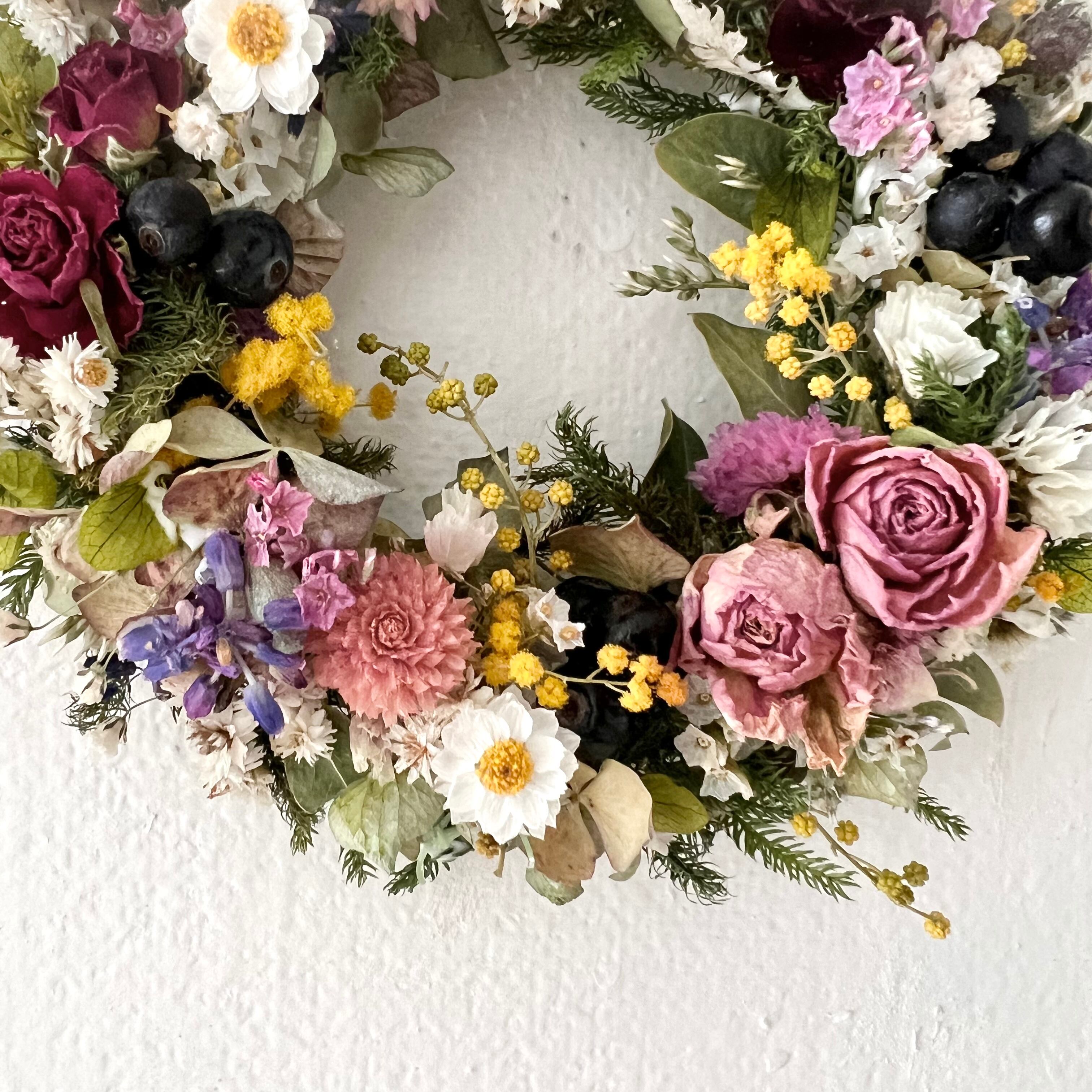 ローズと小花の春リース ドライフラワー 誕生日プレゼント 引っ越し祝い 記念日 ギフト