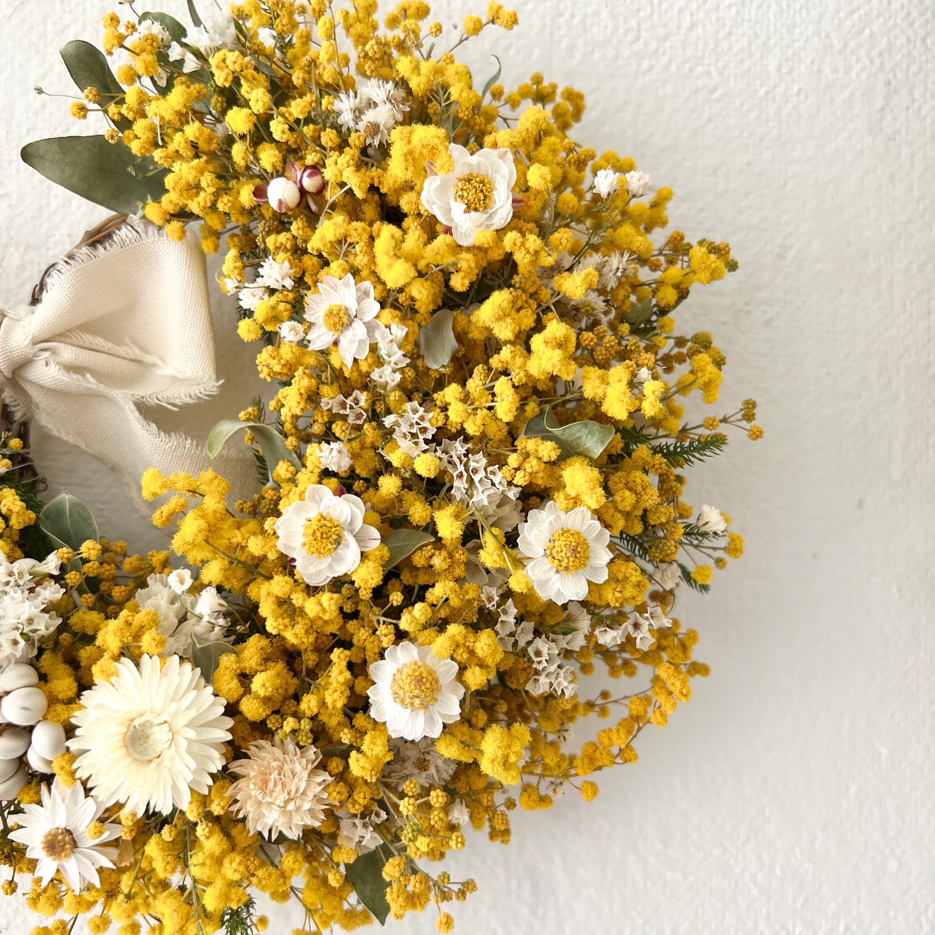 ミモザの春リース ドライフラワー 誕生日プレゼント 引っ越し祝い 記念日 ギフト