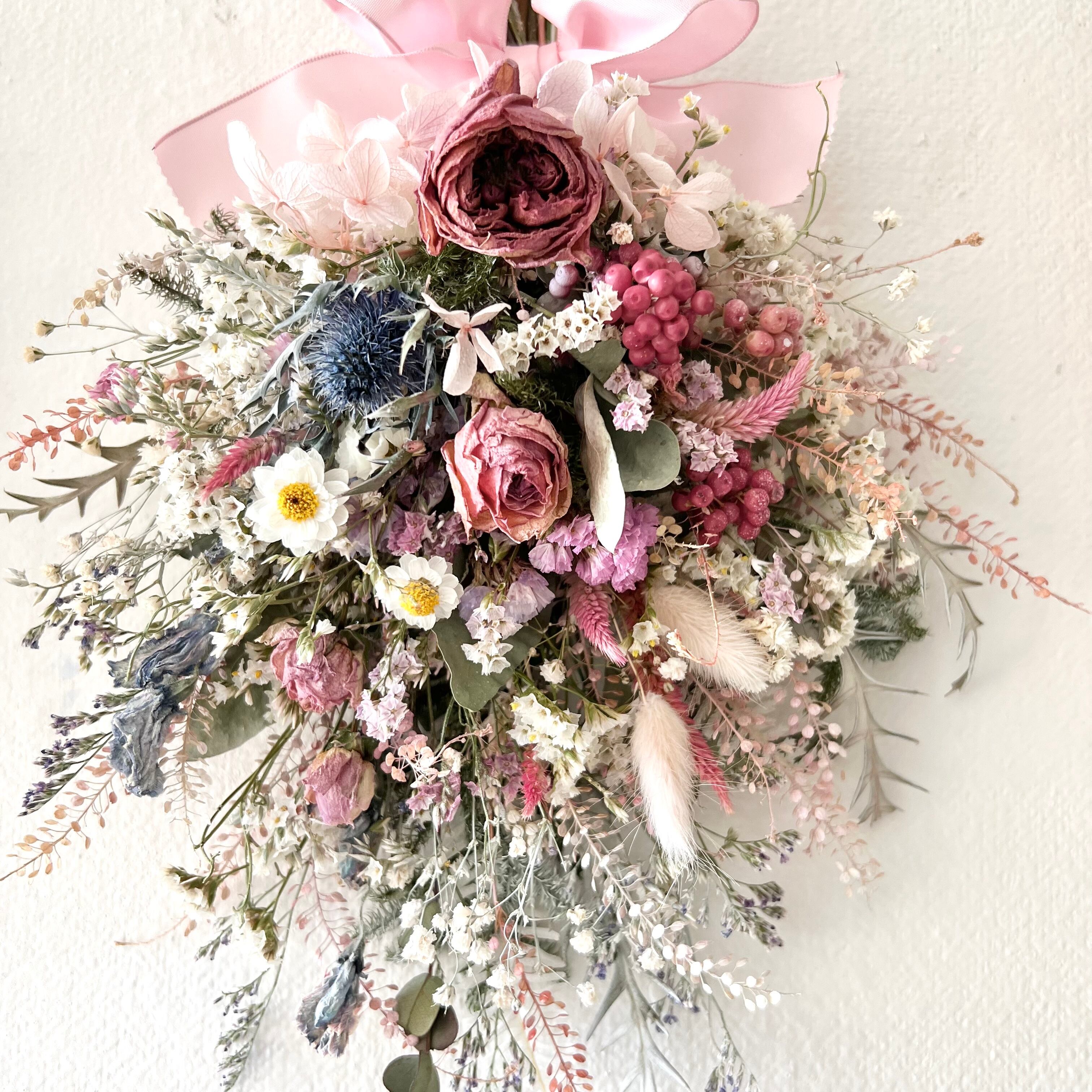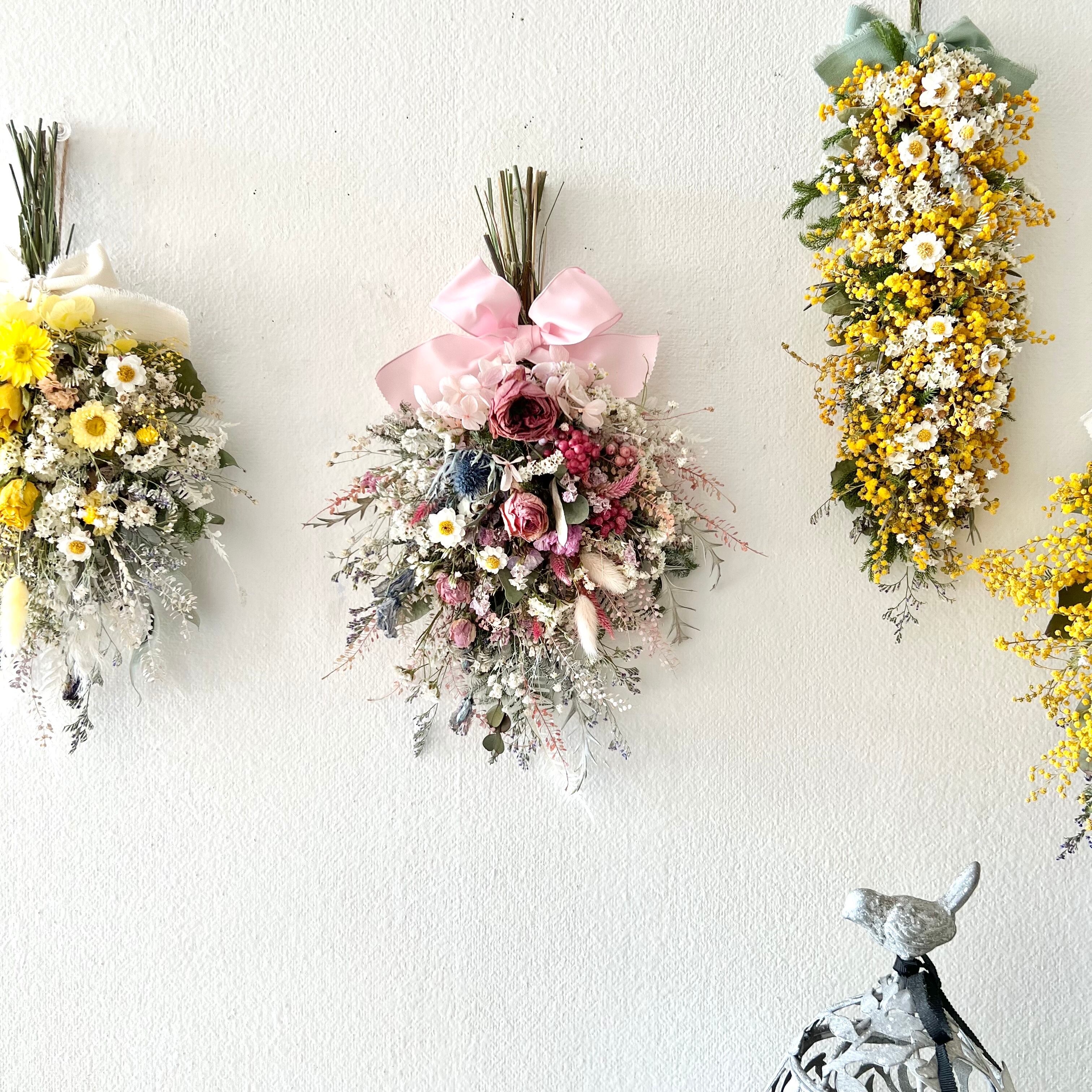 ローズと小花のスワッグ ドライフラワー 誕生日プレゼント 引っ越し祝い 記念日. ギフト
