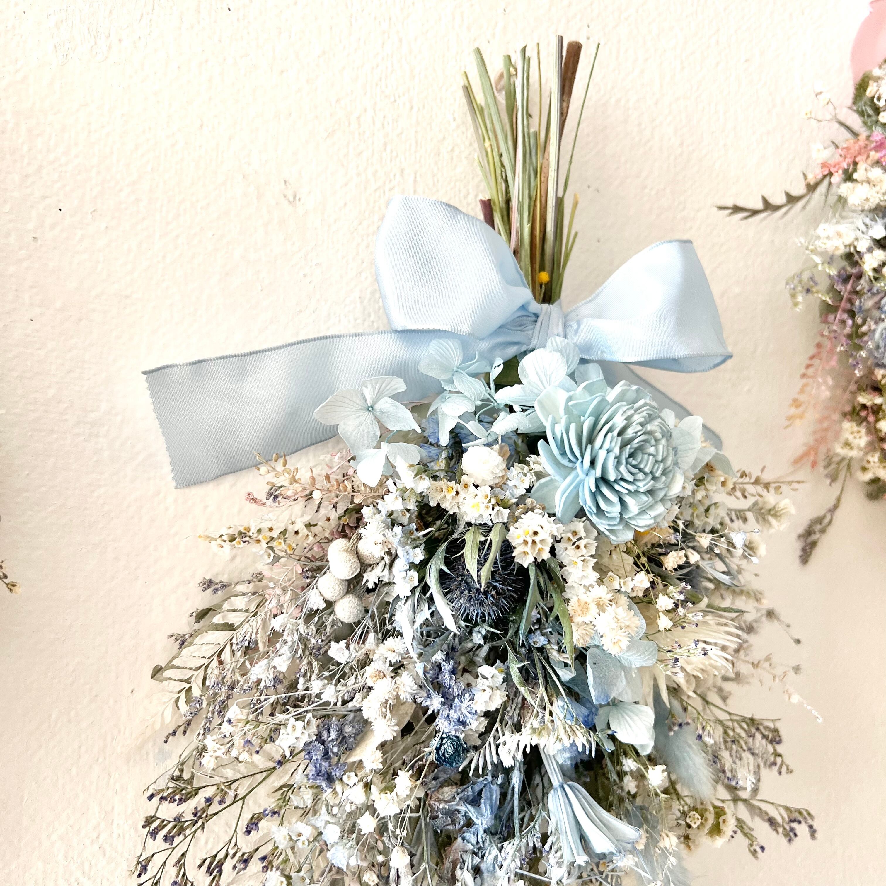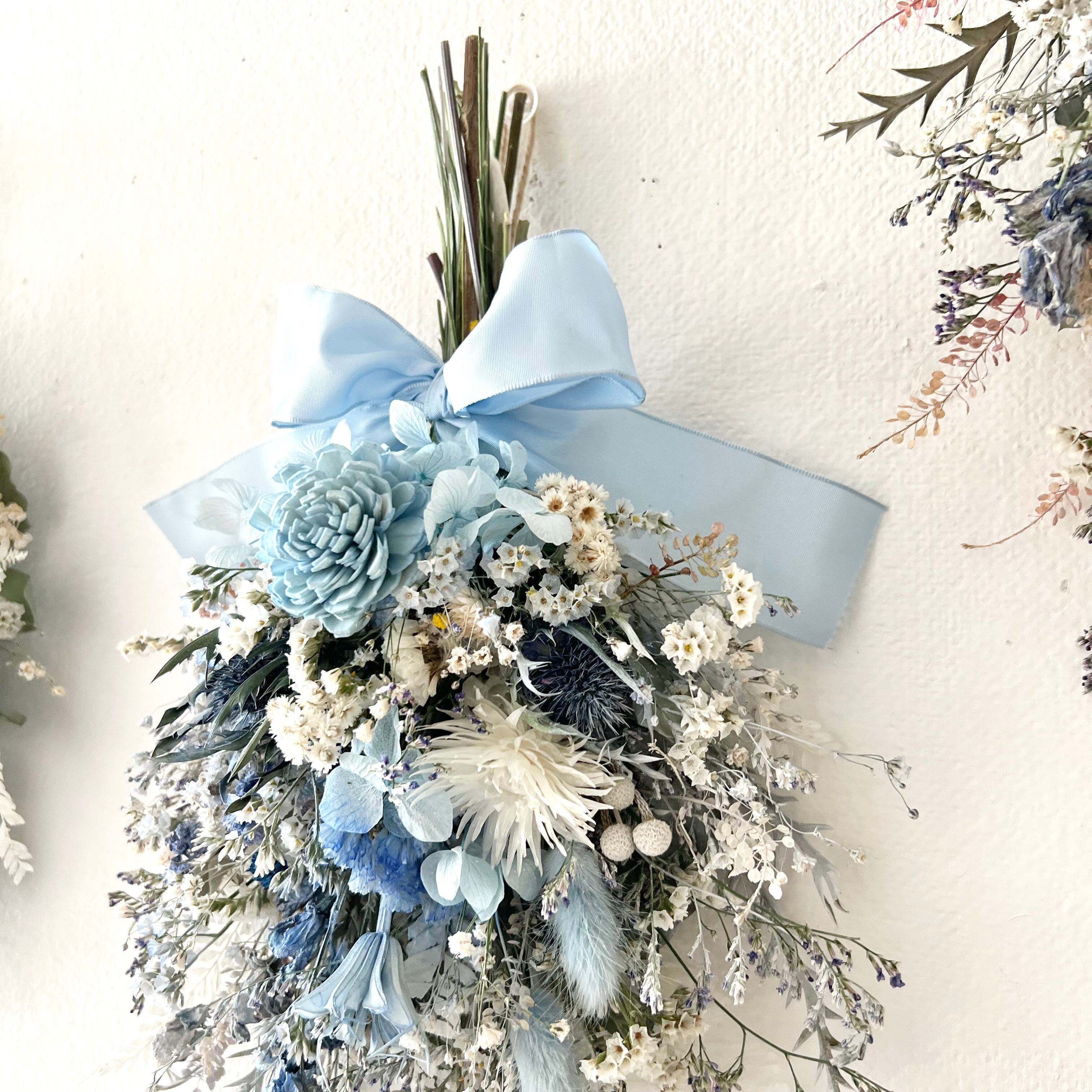 ソラローズと小花のスワッグ ブルー ドライフラワー 誕生日プレゼント 引っ越し祝い 記念日. ギフト