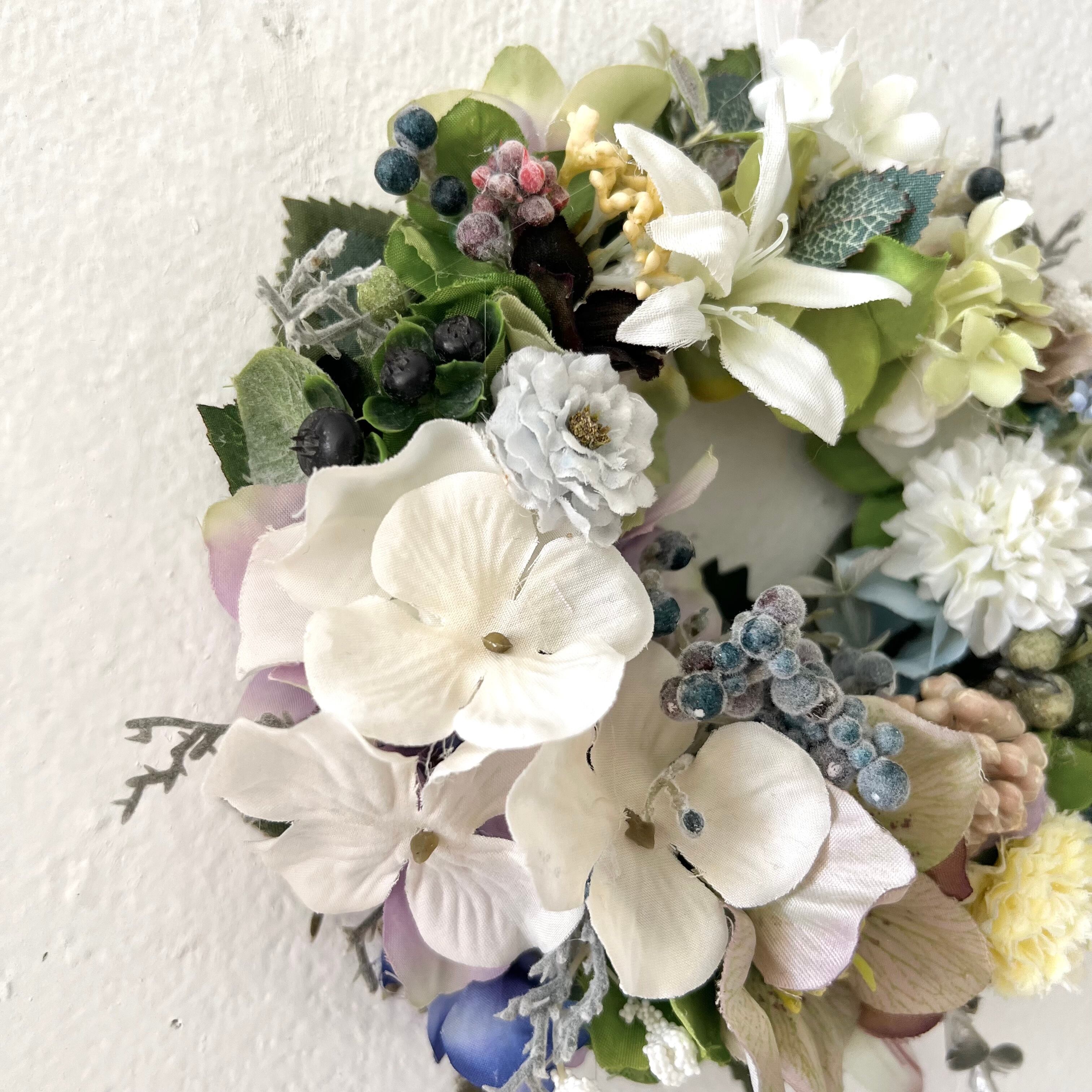 クリスマスローズと小花のリース アーティフィシャルフラワー 誕生日プレゼント 引っ越し祝い 記念日 ギフト