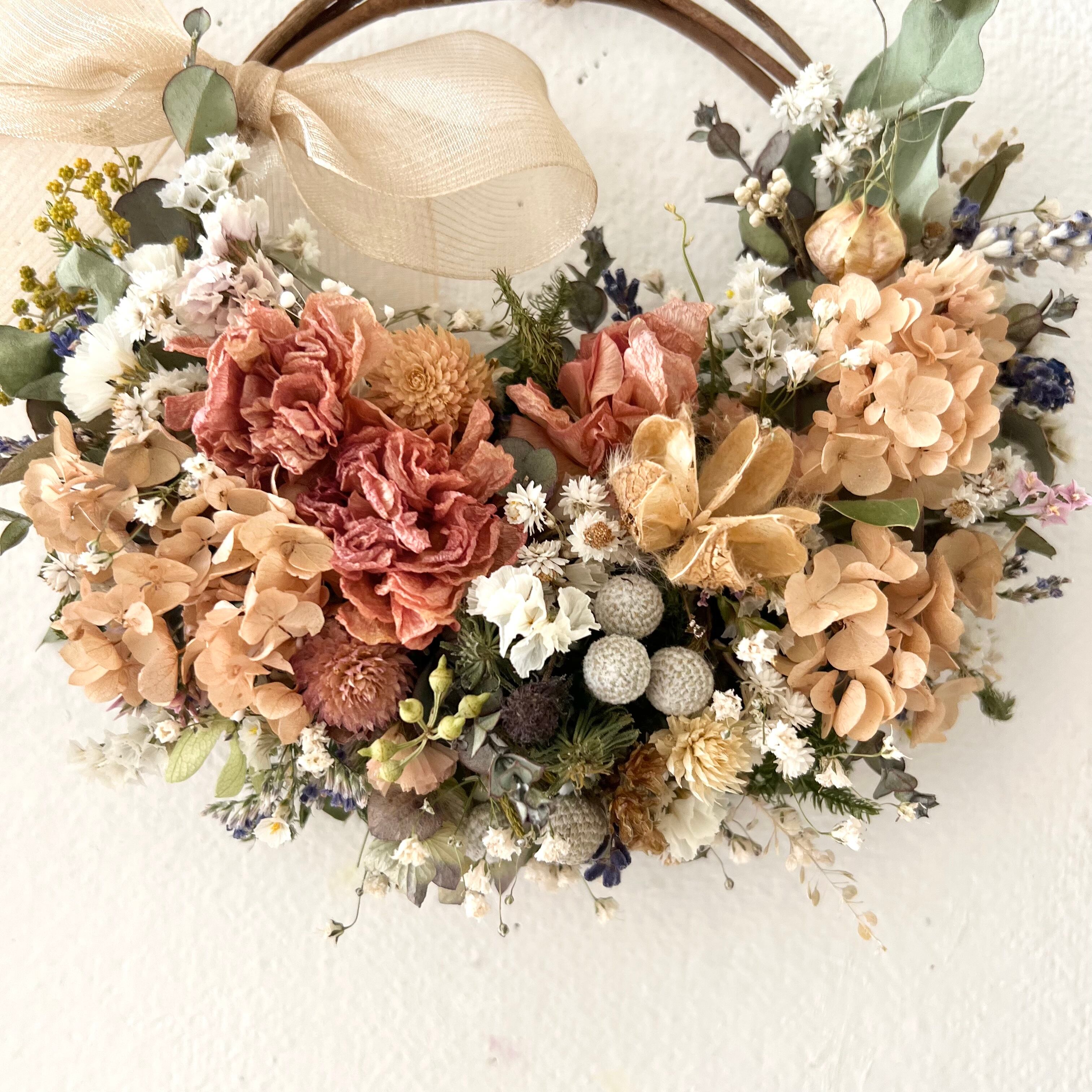 ラナンキュラスと小花の春リース ドライフラワー 誕生日プレゼント 引っ越し祝い 記念日 ギフト