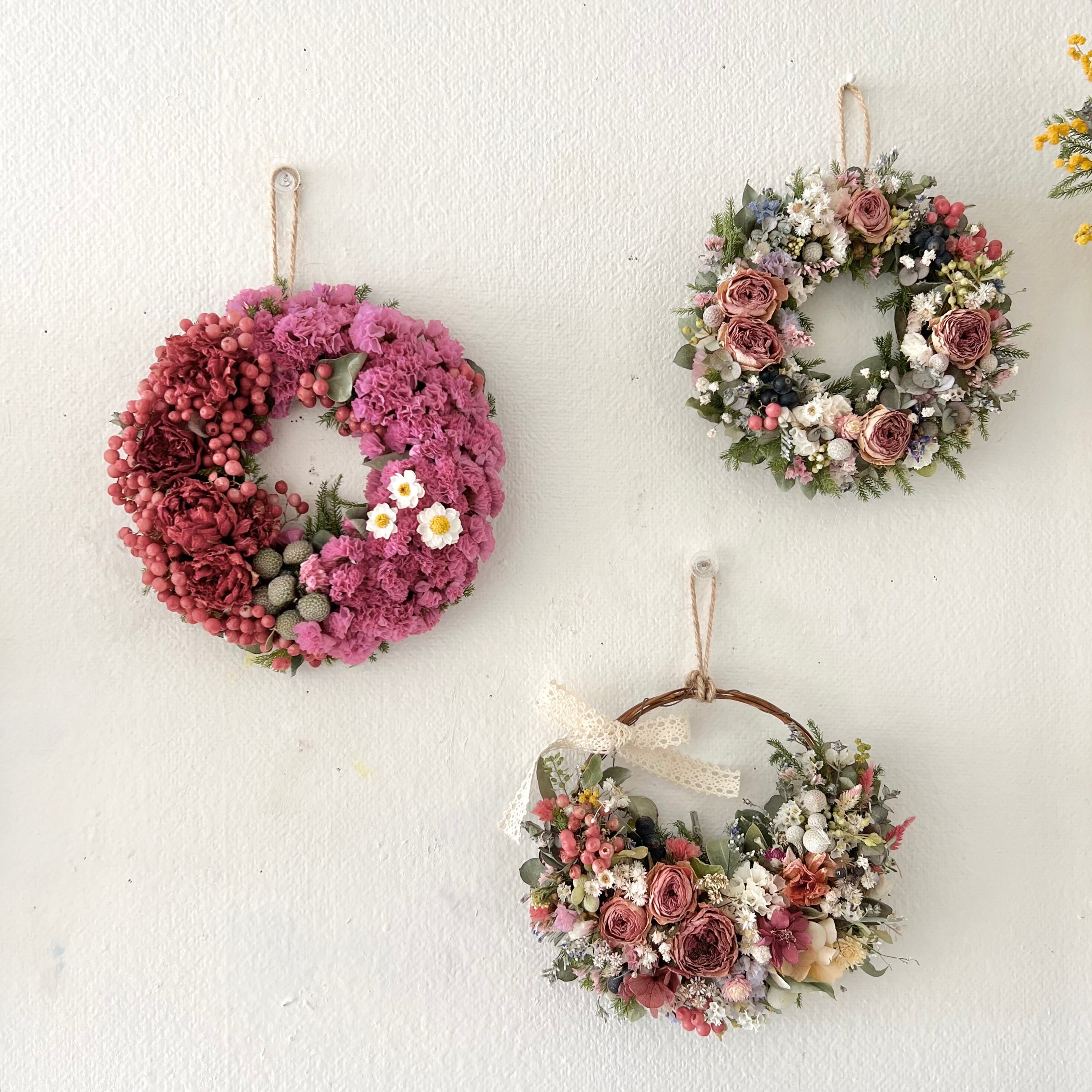 鮮やかなピンクのリースです。
