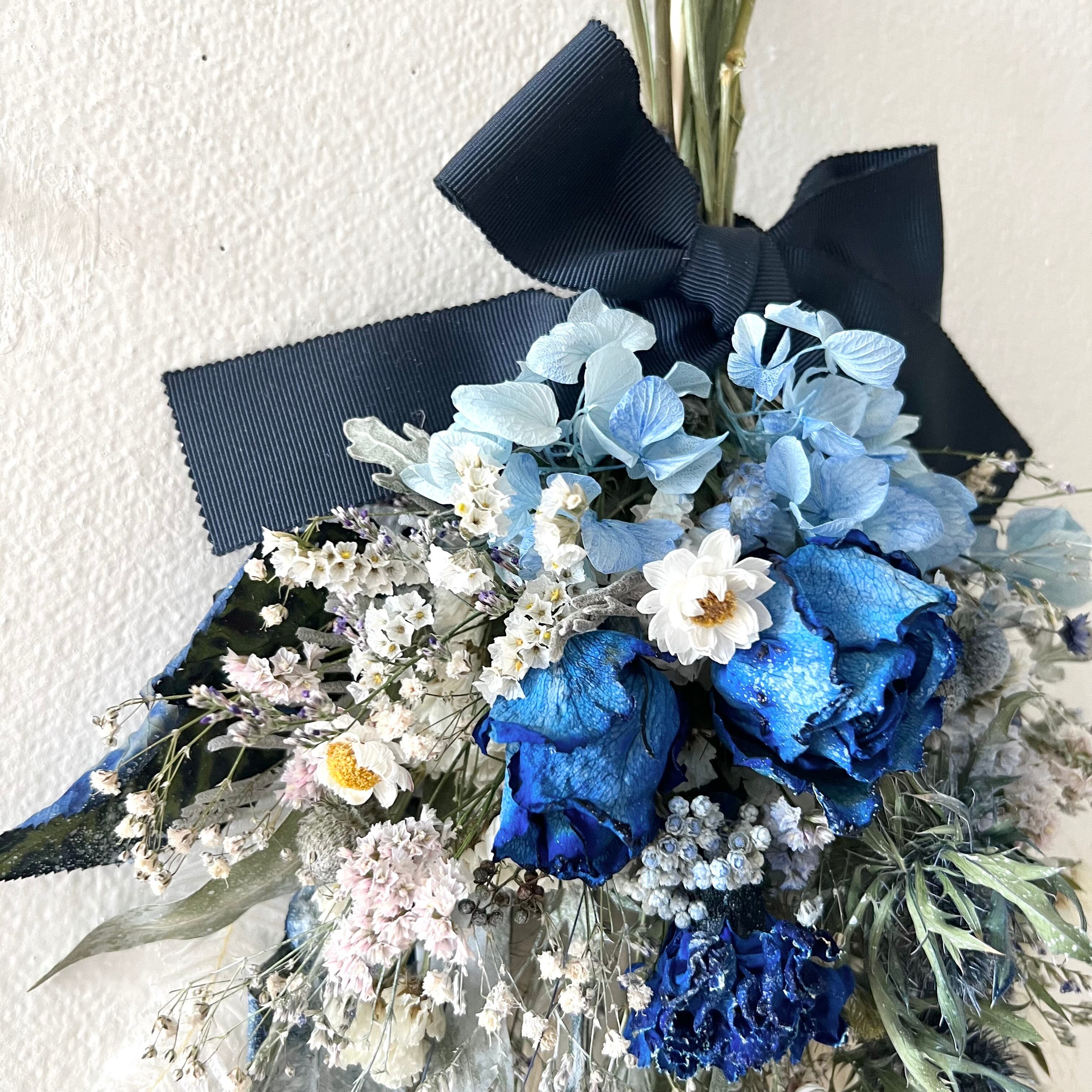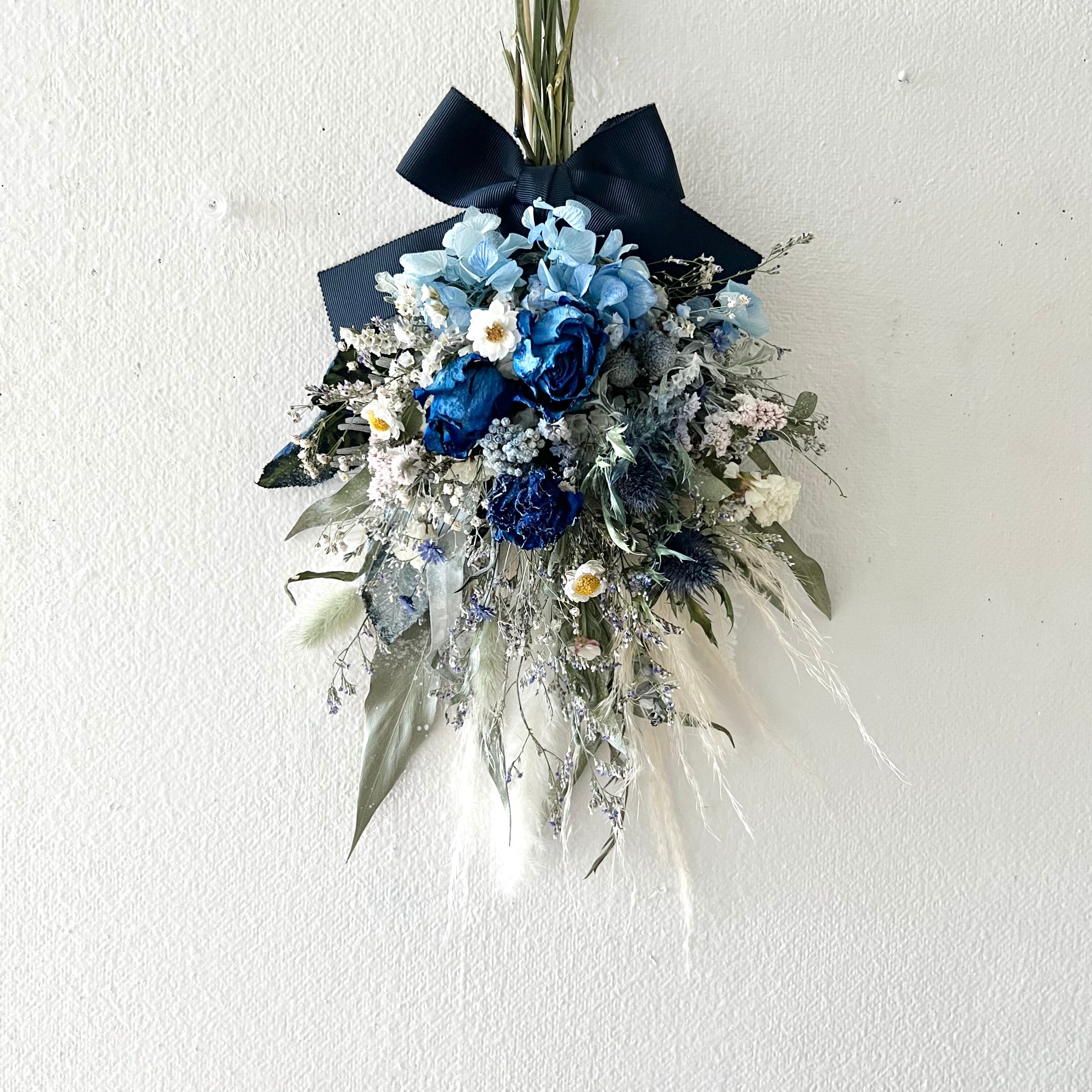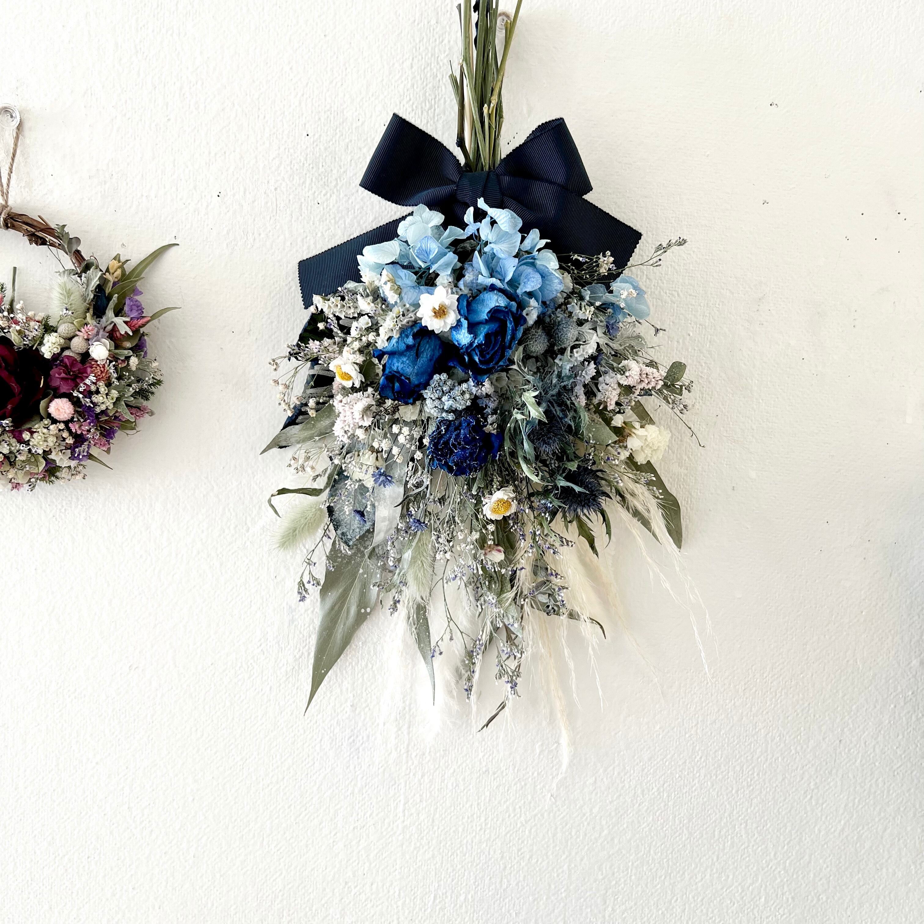 ブルーローズと小花のスワッグ ドライフラワー 誕生日プレゼント 引っ越し祝い 記念日. 母の日ギフト