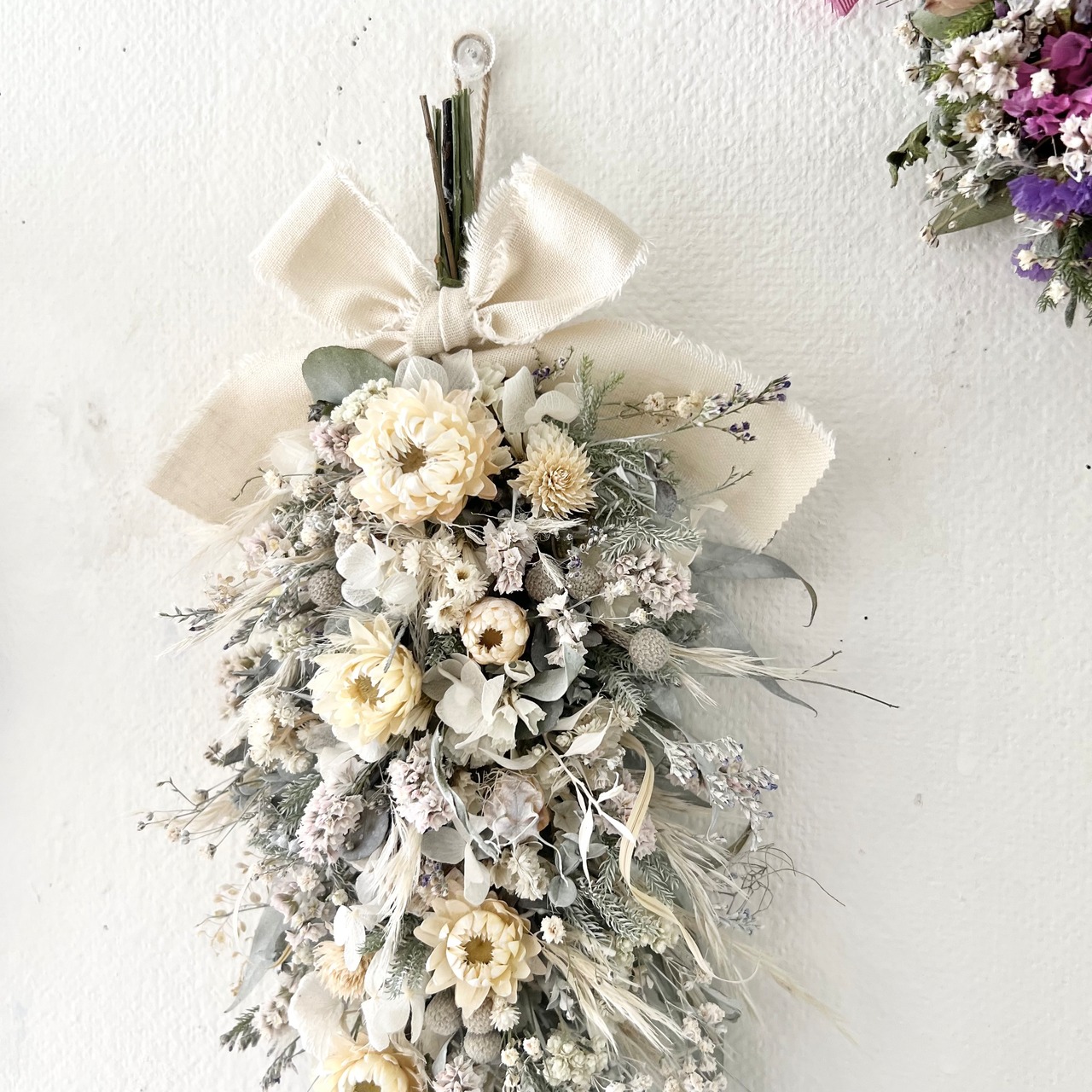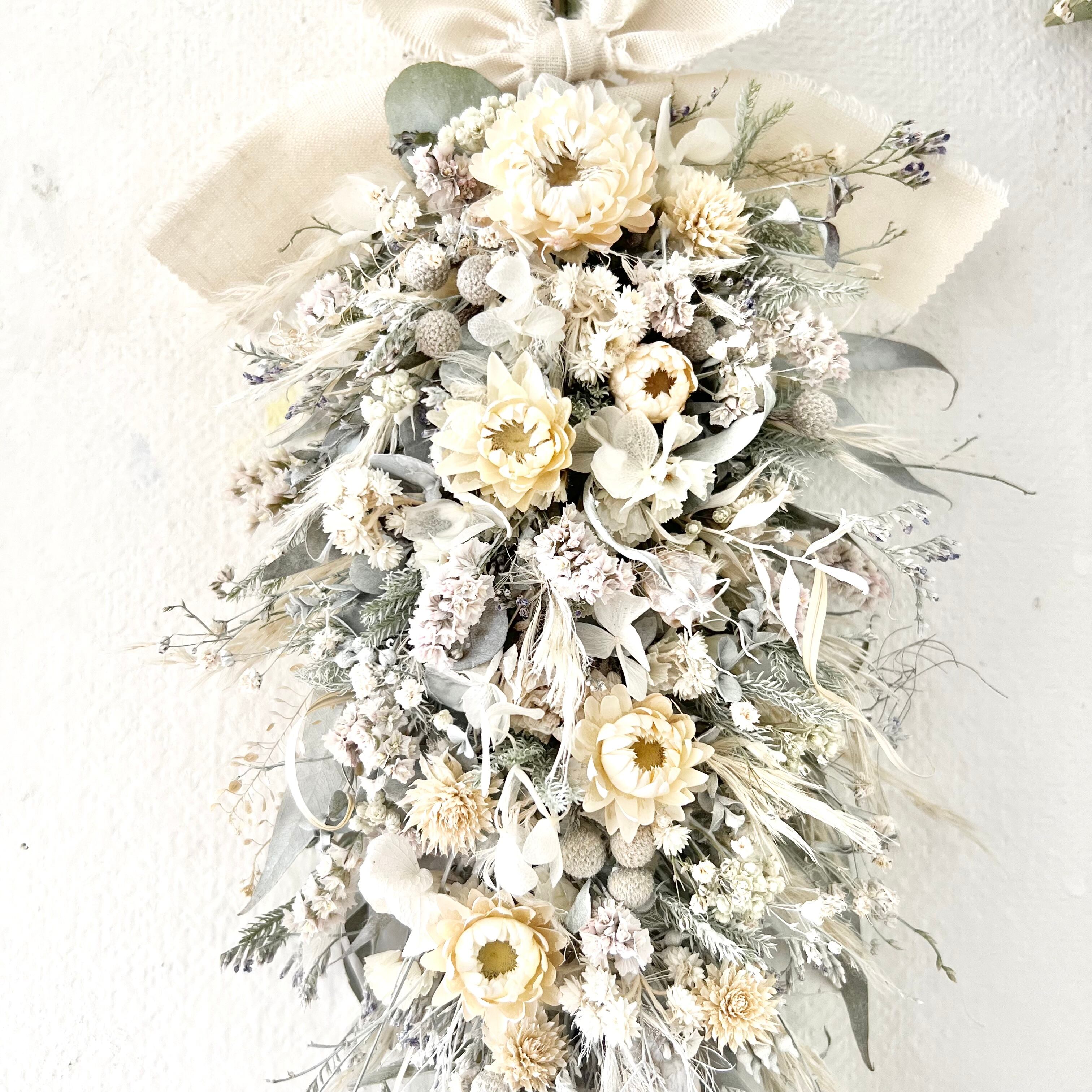 ヘリクリサムと小花のスワッグ ナチュラルホワイト ドライフラワー 誕生日プレゼント 引っ越し祝い 記念日. ギフト