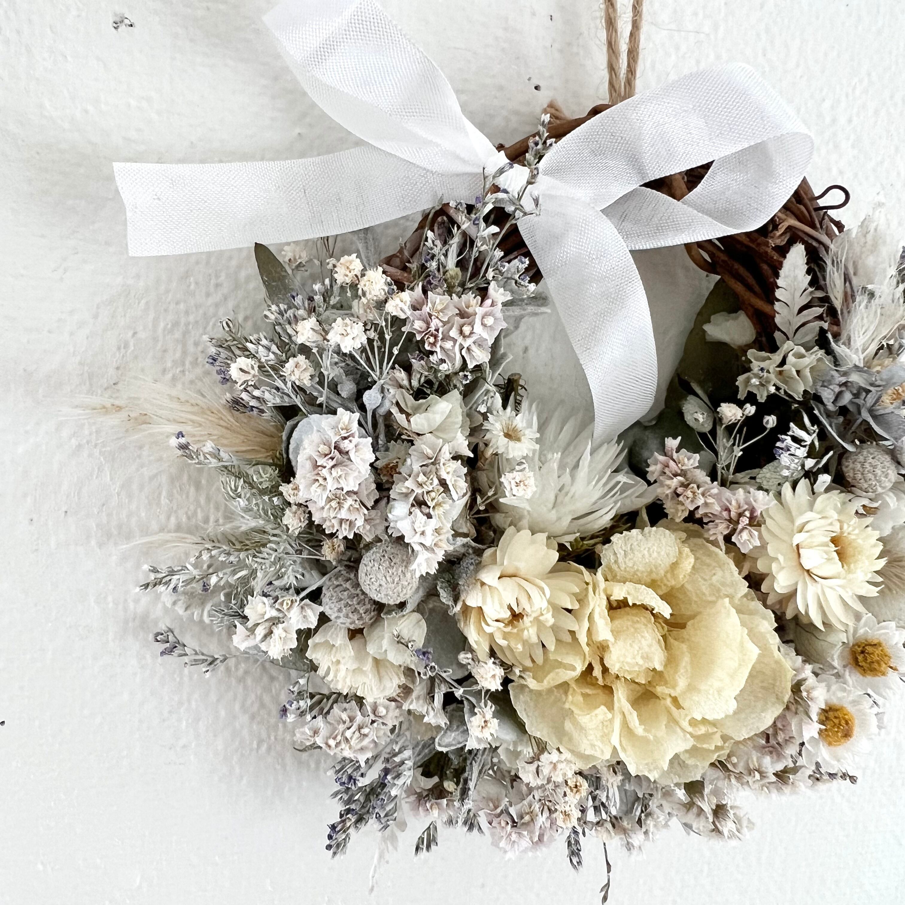 ラナンキュラスと小花のミニリース ドライフラワー 誕生日プレゼント 引っ越し祝い 記念日 ギフト