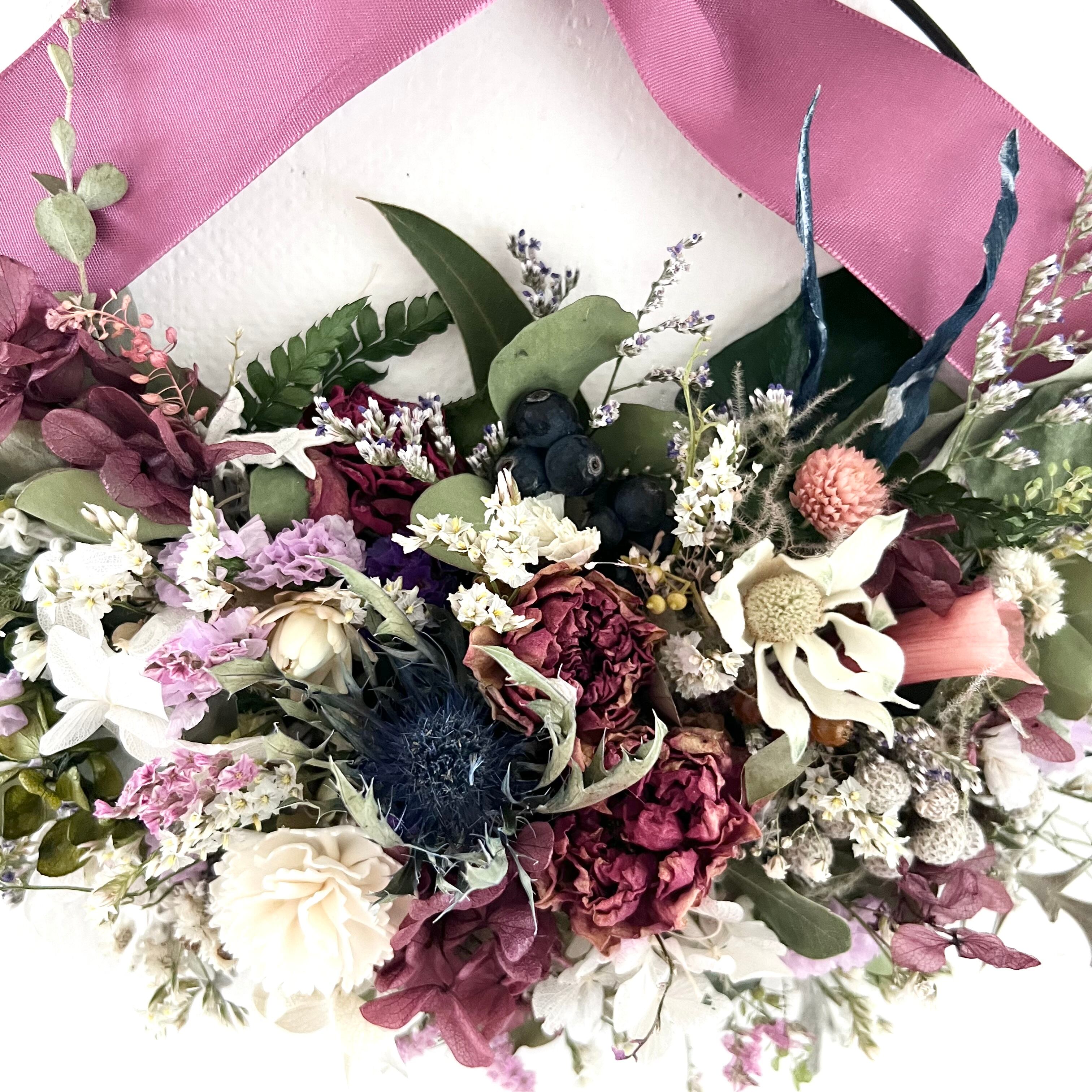 ローズと小花のリース ドライフラワー 誕生日プレゼント 引っ越し祝い 記念日 ギフト
