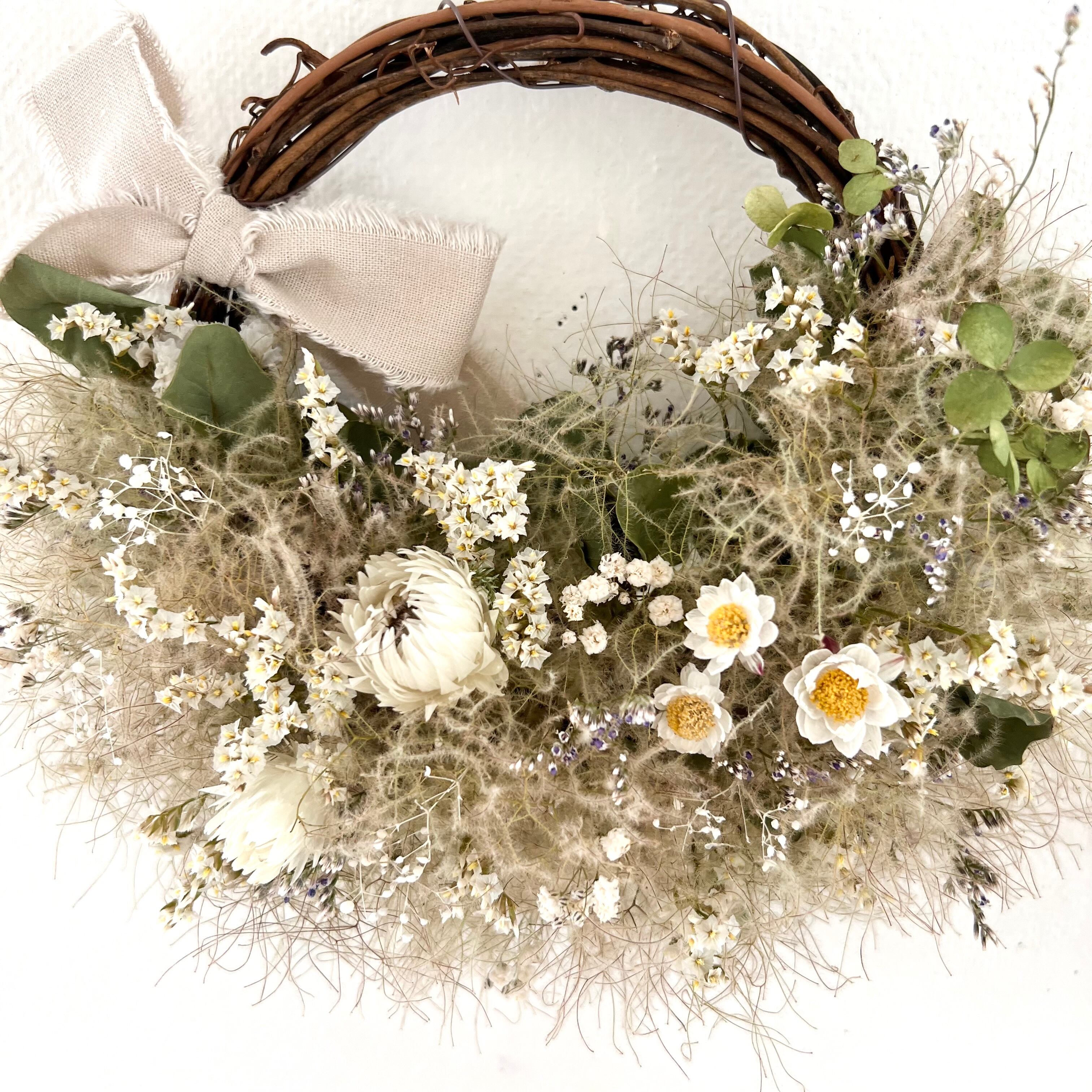 スモークツリーと小花のリース ドライフラワー 誕生日プレゼント 引っ越し祝い 記念日. ギフト