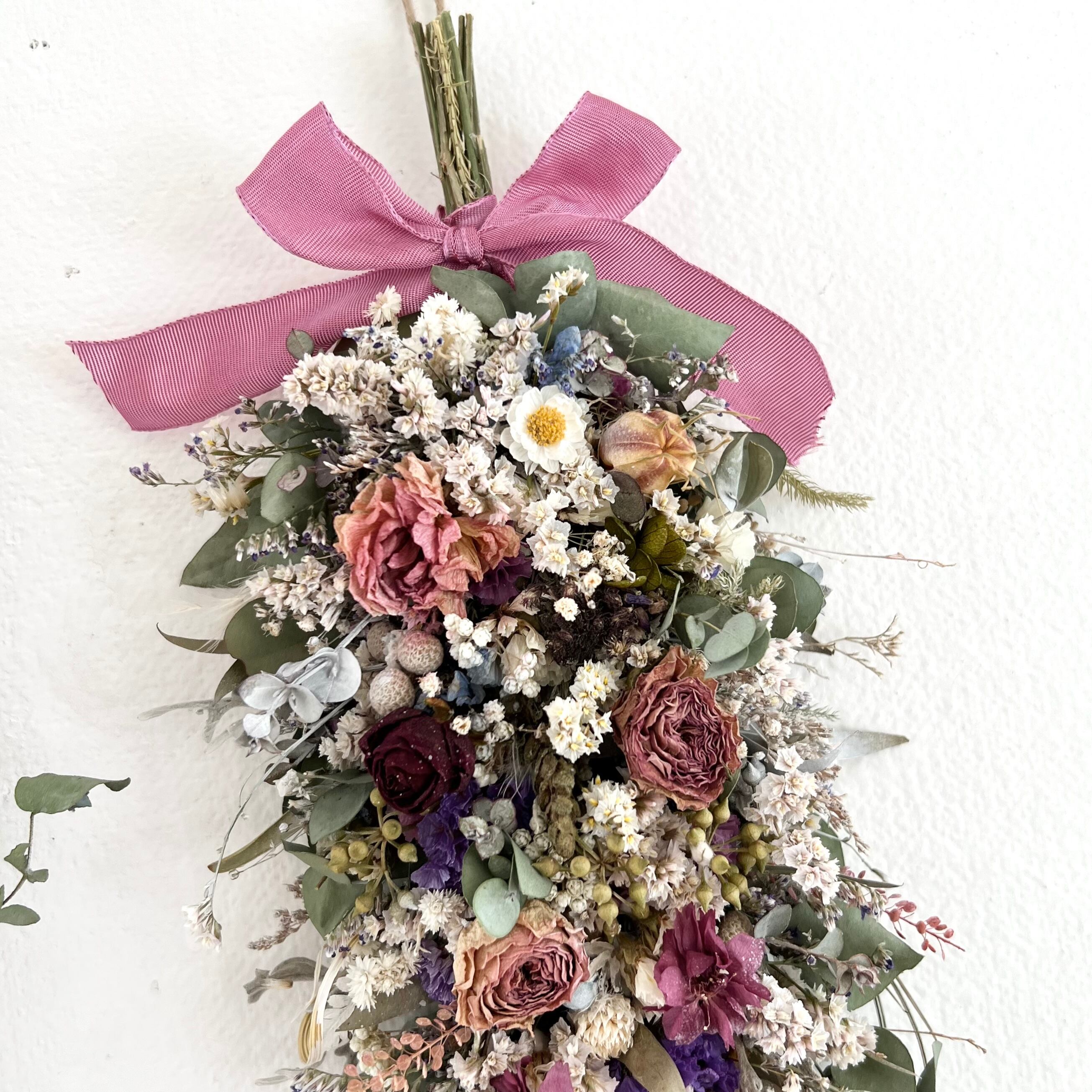 ローズと小花の縦型スワッグ ドライフラワー 誕生日プレゼント 引っ越し祝い 記念日. ギフト