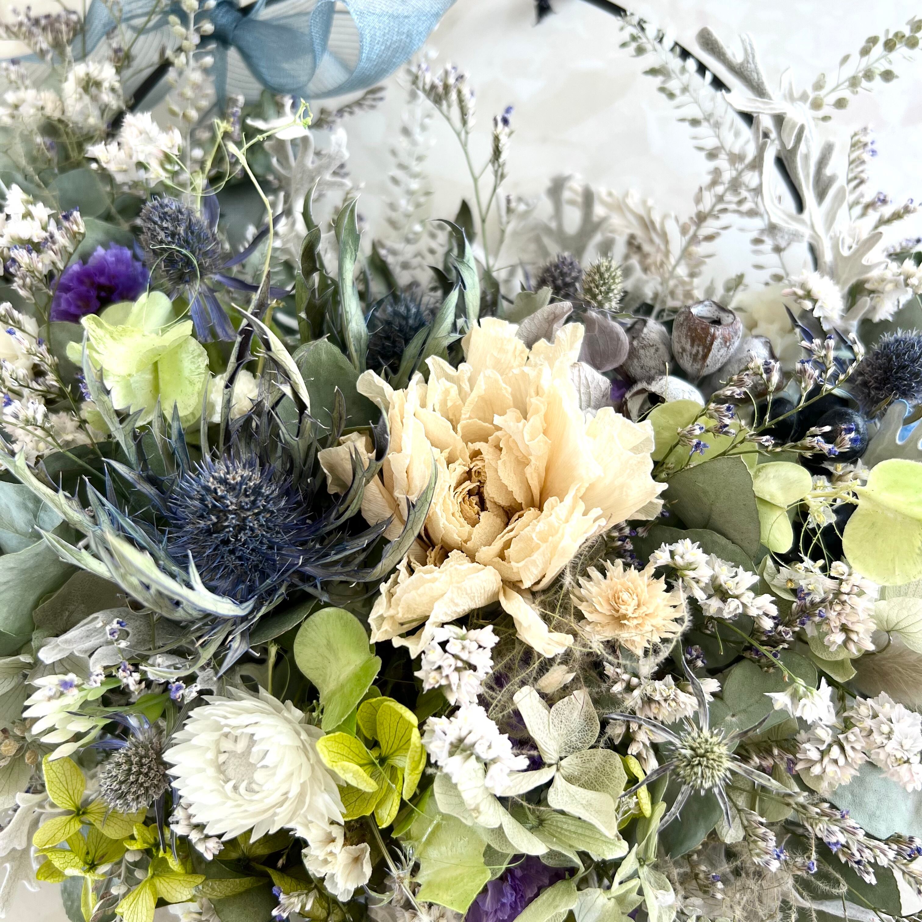 ラナンキュラスとエリンジュームの夏リース ドライフラワー 誕生日プレゼント 引っ越し祝い 記念日. ギフト