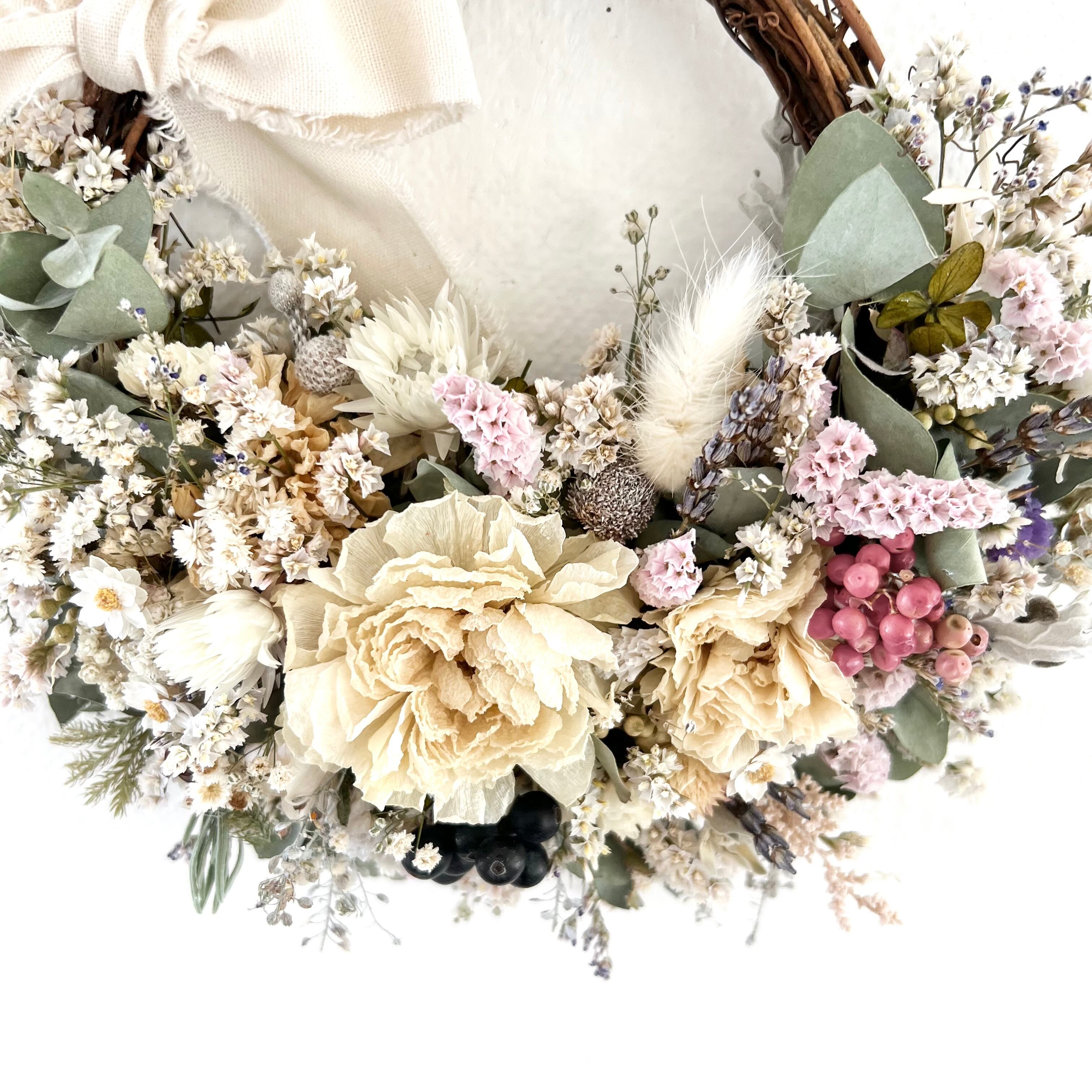 ラナンキュラスと小花のリース ドライフラワー 誕生日プレゼント 引っ越し祝い 記念日. ギフト
