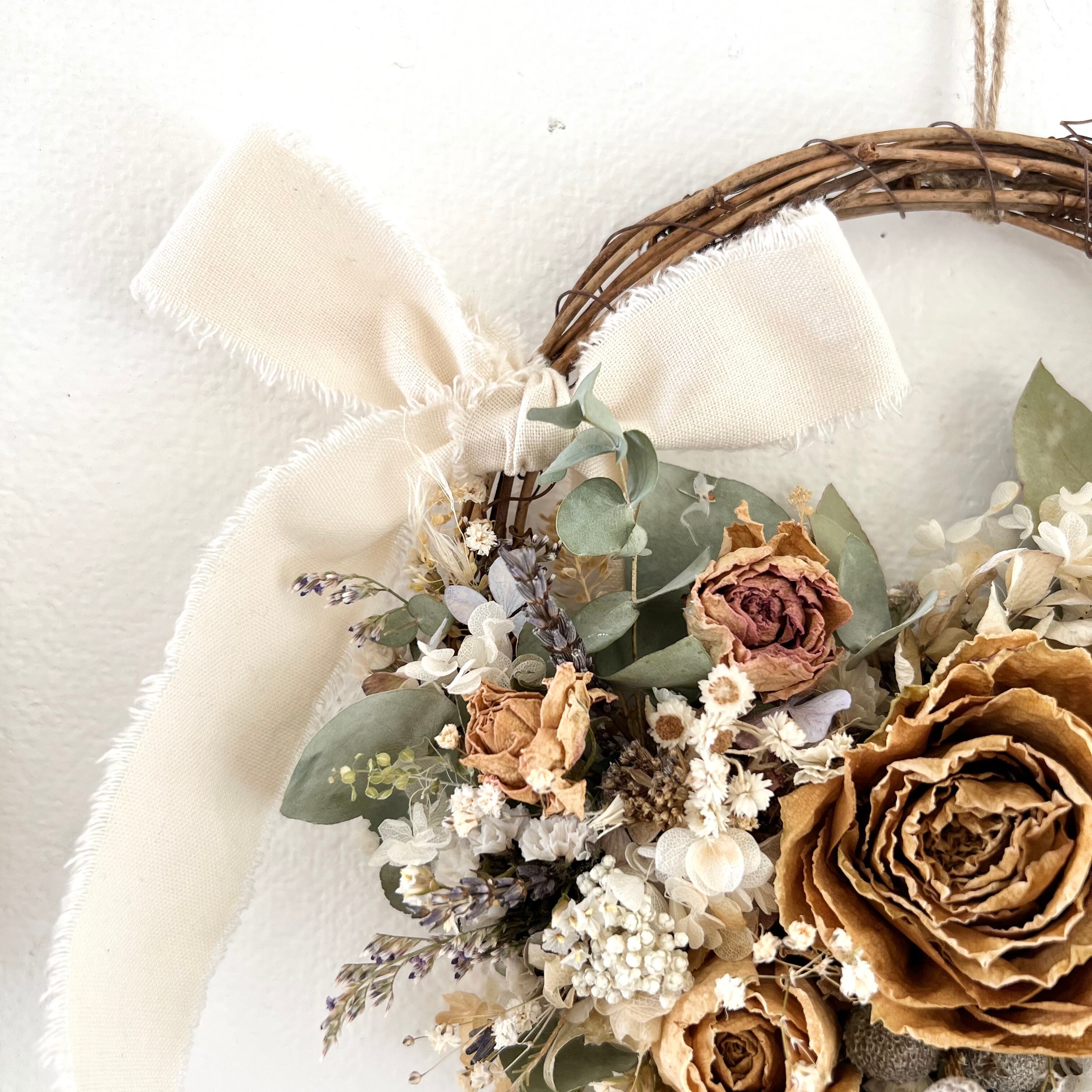 アンティークカラー ローズと小花のリース ドライフラワー 誕生日プレゼント 引っ越し祝い 記念日. ギフト