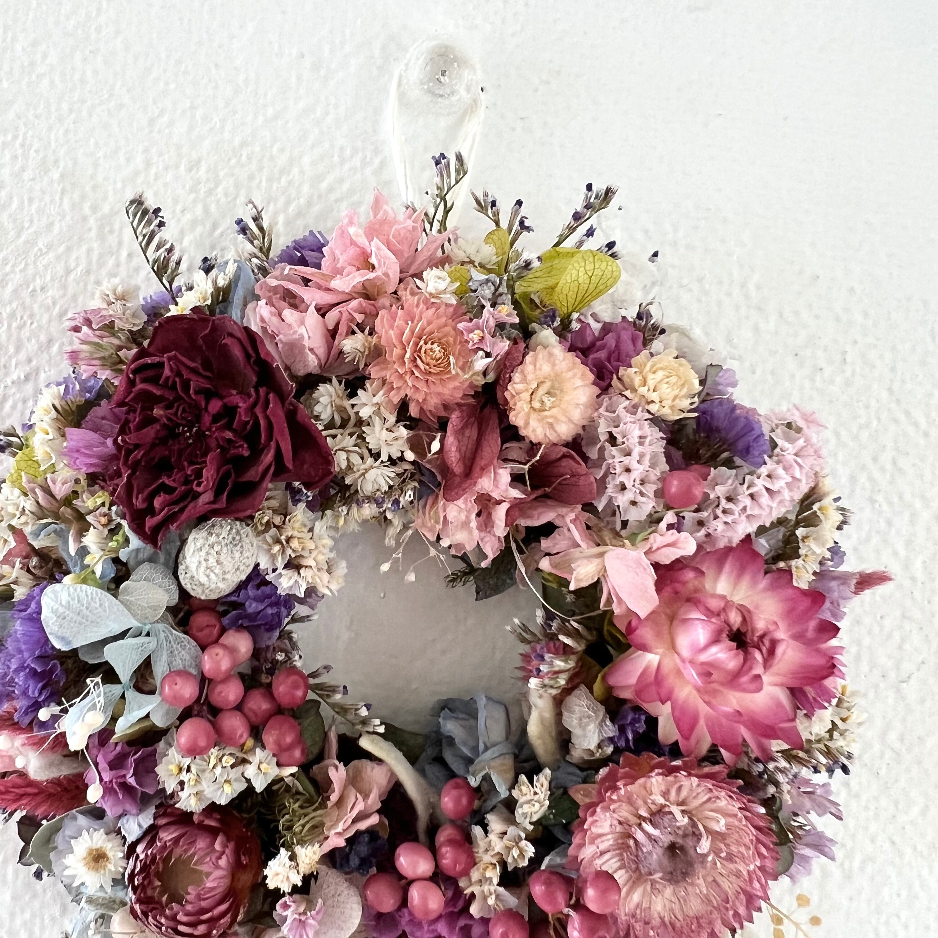 ローズと小花のミニリース ドライフラワー 誕生日プレゼント 引っ越し祝い 記念日 ギフト