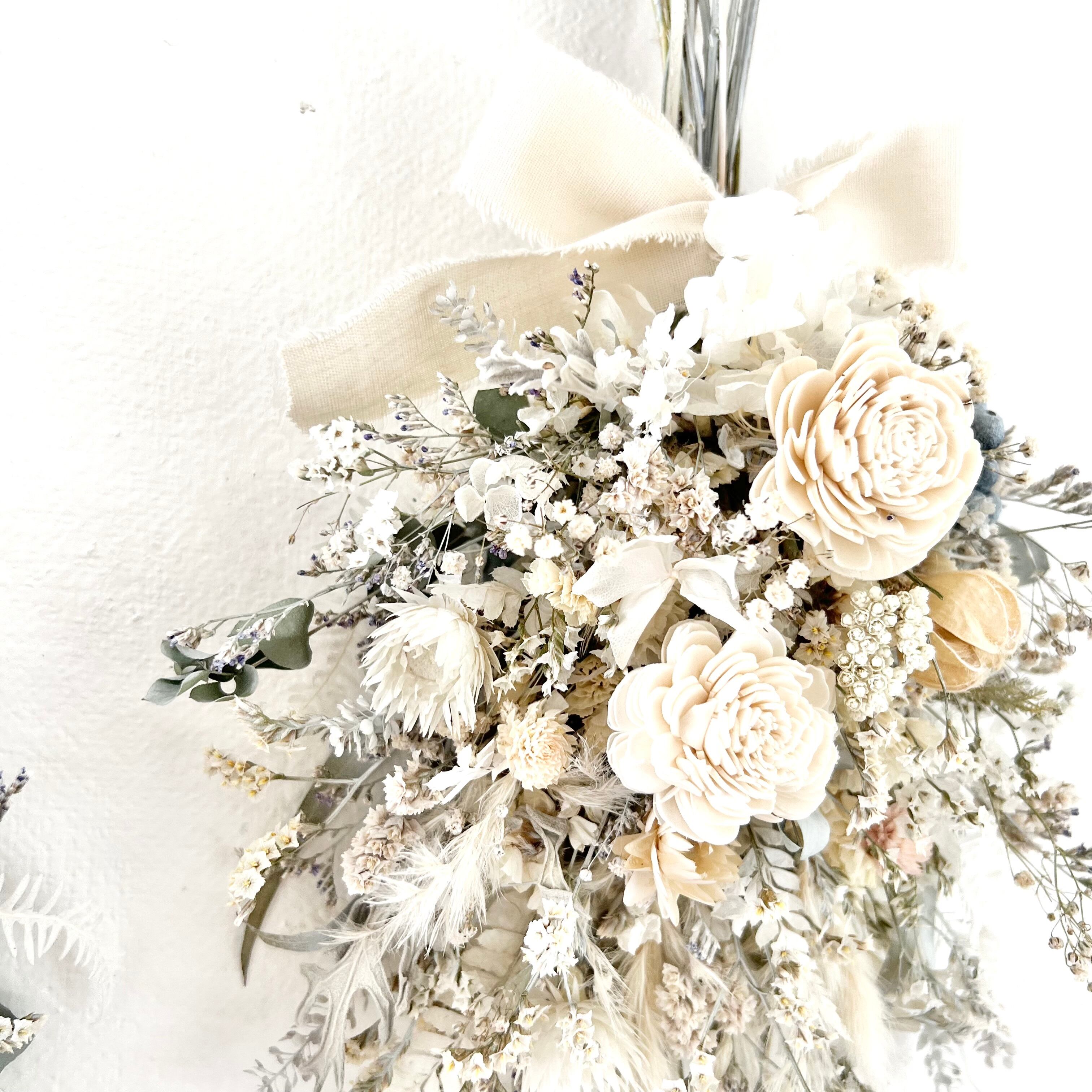ナチュラルホワイト ソラローズと小花のスワッグ ドライフラワー 誕生日プレゼント 引っ越し祝い 記念日. ギフト