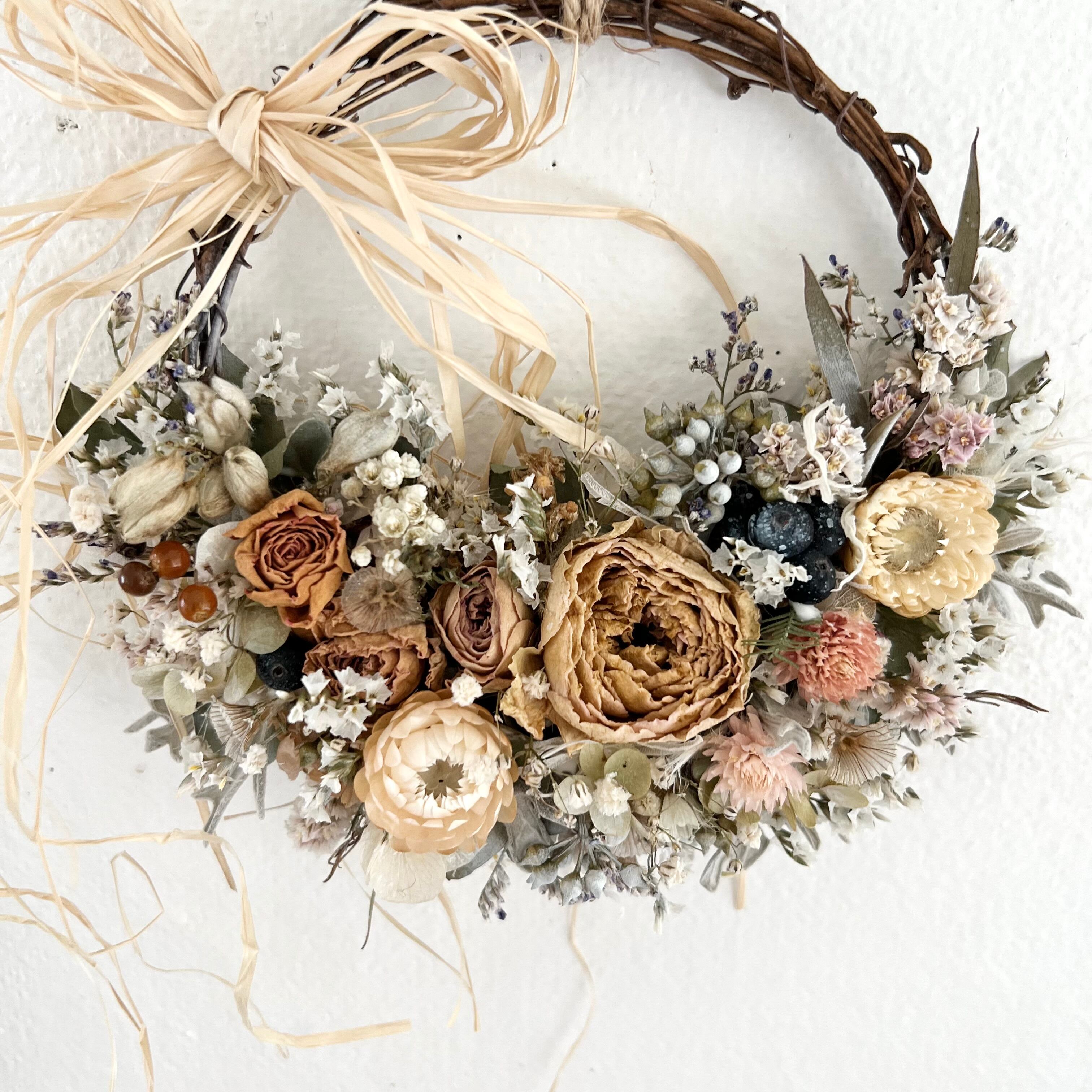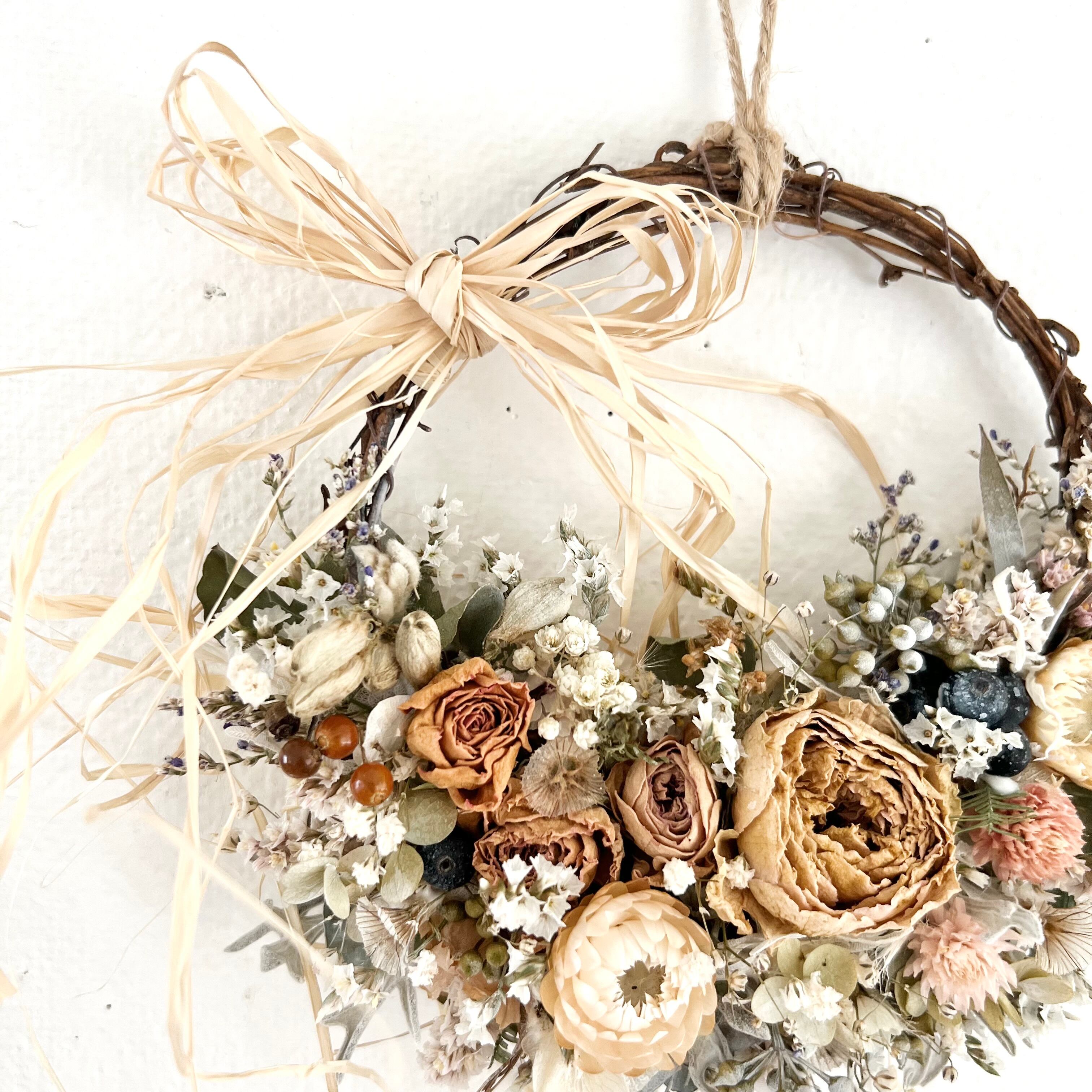 ローズと小花のミニリース ドライフラワー 誕生日プレゼント 引っ越し祝い 記念日 ギフト